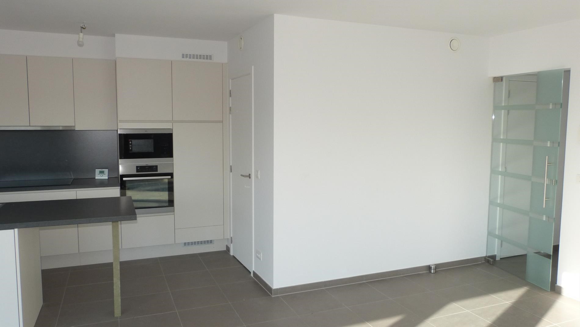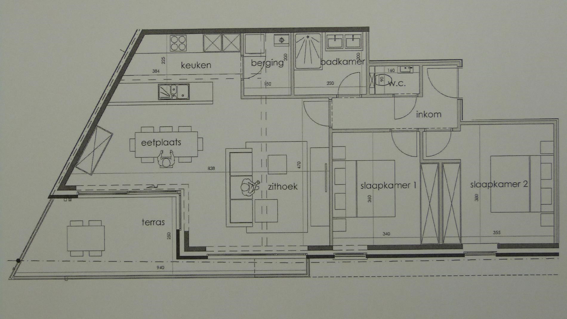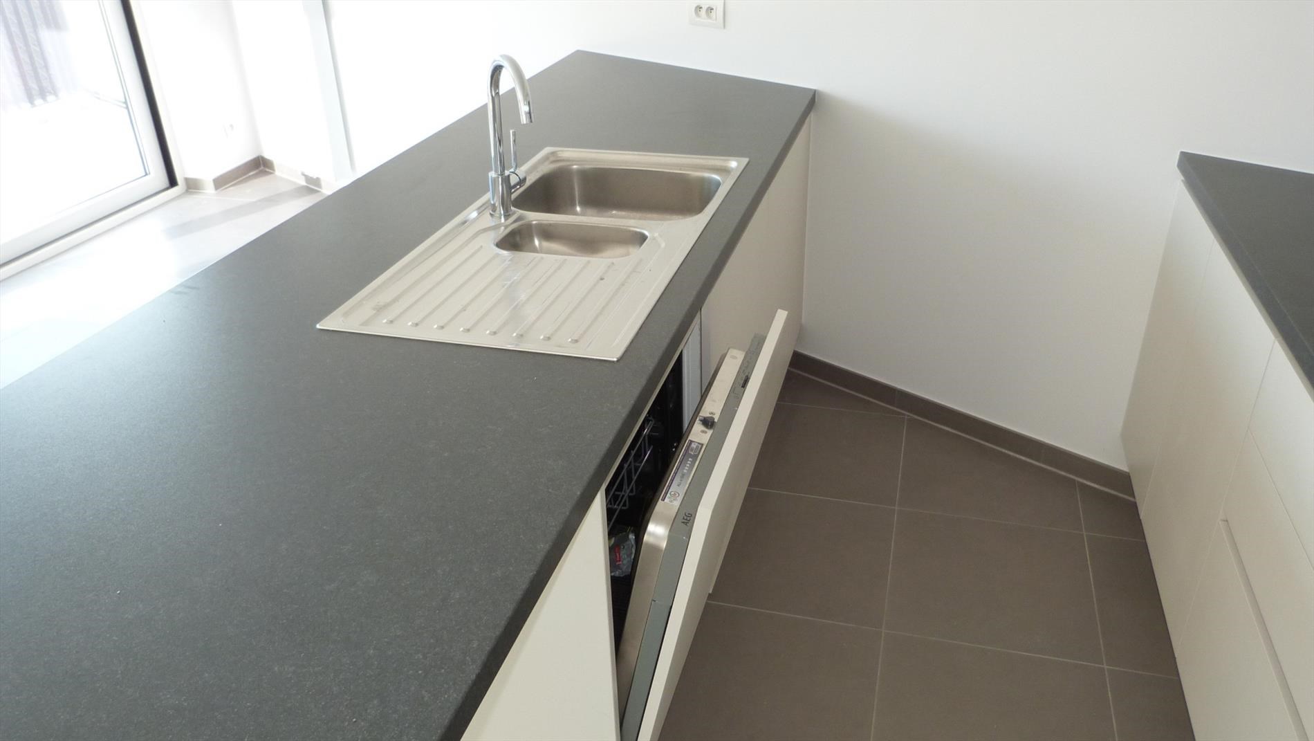 Indeling: inkom, via de glazen deur komt men in de living met open keuken en ruim aanpalend terras (zuidgericht). Mooie ingerichte keuken voorzien van alle toestellen (merk: AEG), apart toilet met lavabo, badkamer met inloopdouche, badkamermeubel met ingebouwde lavabo, spiegelkast en handdoekdroger, 2 slaapkamers, berging met CV, ventilatiesysteem, aansluiting voor wasmachine. Het appartement is zeer degelijk en stijlvol afgewerkt en instapklaar. De ramen werden voorzien van zonwering.