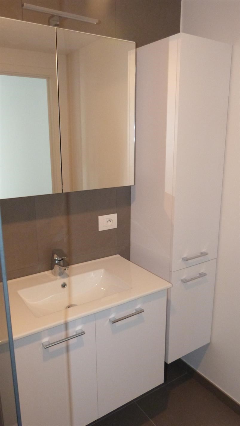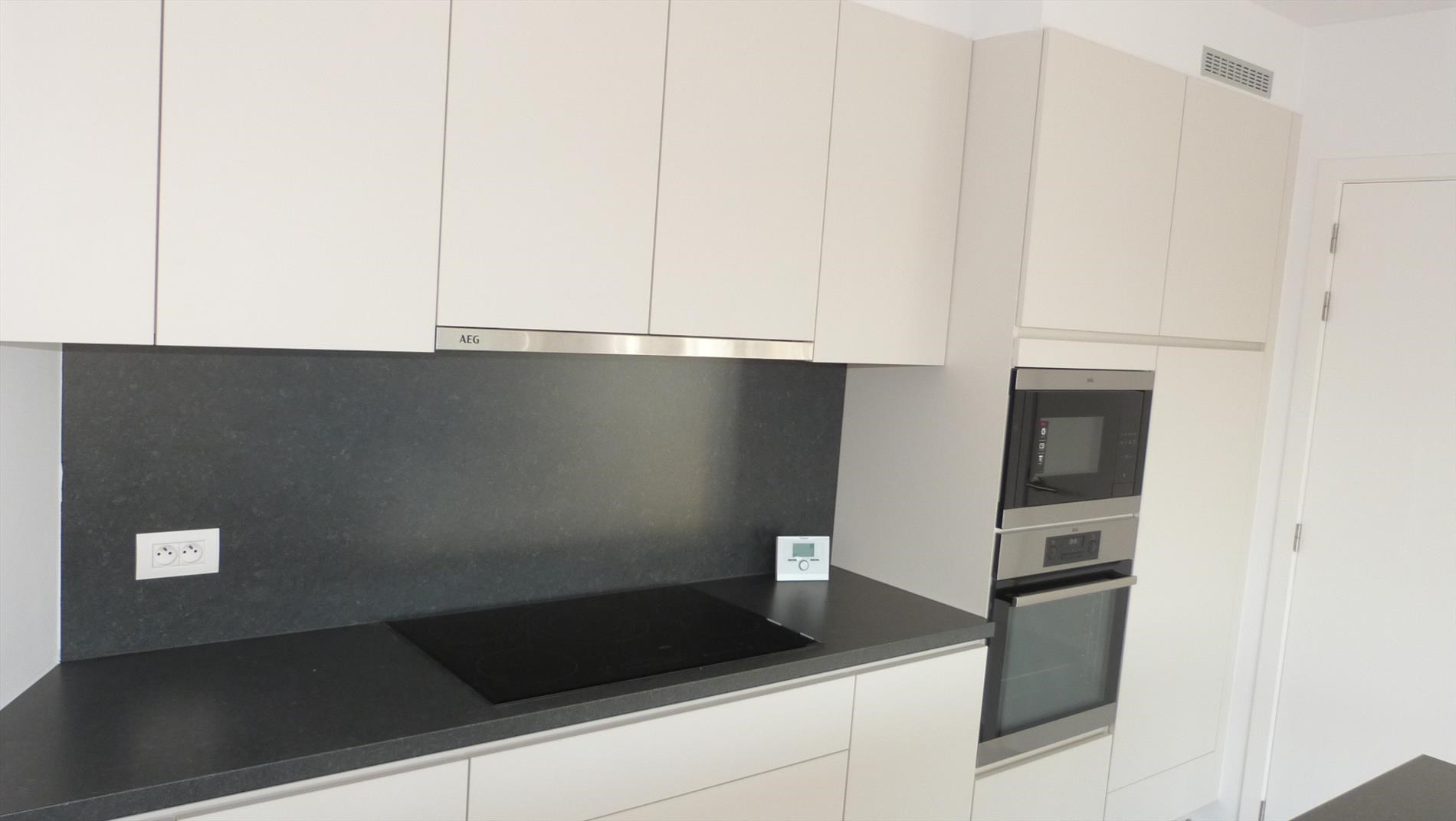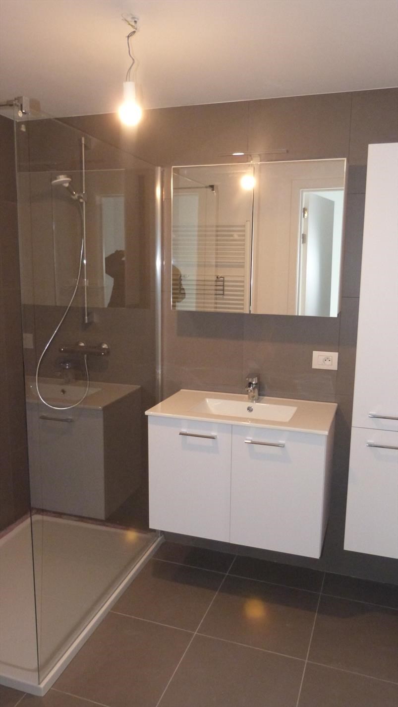 Indeling: inkom, via de glazen deur komt men in de living met open keuken en ruim aanpalend terras (zuidgericht). Mooie ingerichte keuken voorzien van alle toestellen (merk: AEG), apart toilet met lavabo, badkamer met inloopdouche, badkamermeubel met ingebouwde lavabo, spiegelkast en handdoekdroger, 2 slaapkamers, berging met CV, ventilatiesysteem, aansluiting voor wasmachine. Het appartement is zeer degelijk en stijlvol afgewerkt en instapklaar. De ramen werden voorzien van zonwering.