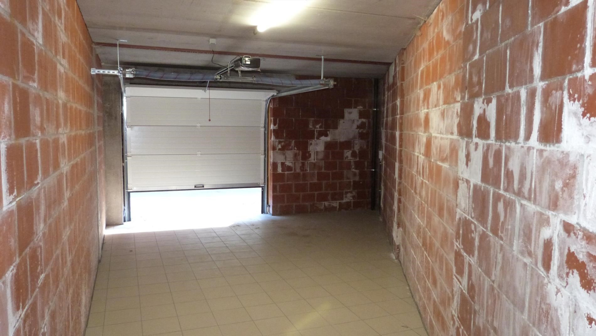 Op het gelijkvloers is er een afgesloten garage met elektrische poort (met voorziening van water en elektriciteit).