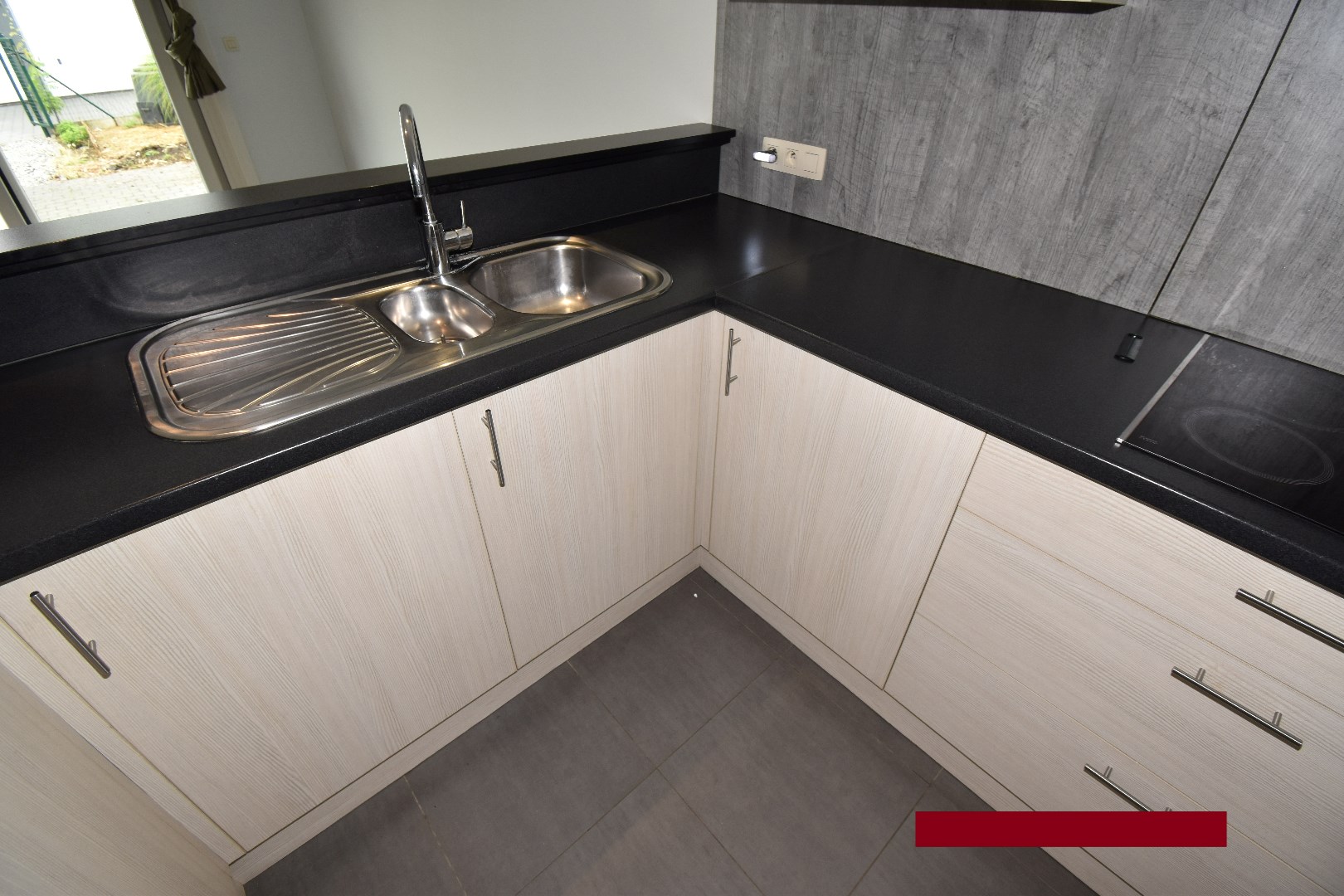 Indeling: inkom, apart toilet, living met open keuken, badkamer met dubbele lavabo en douche, berging, 2 slaapkamers, terras, tuintje en aparte garage.