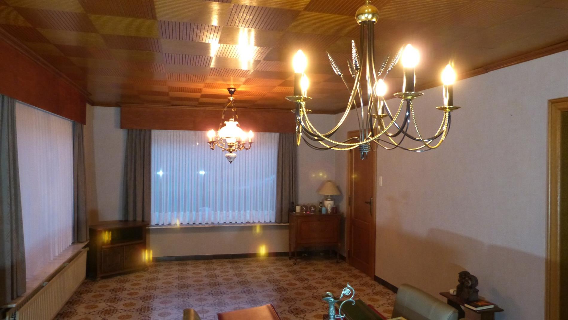 Indeling: inkom, living & salon, ingerichte keuken met toestellen, berging/kelder, garage met ingebouwde kasten en Cv-ketel, apart toilet, badkamer met douche en badkamermeubel met ingewerkte lavabo, 3 slaapkamers. Achteraan is er een ruime garage met 2 kantelpoorten, mooi terras en tuin. De ramen zijn voorzien van rolluiken.