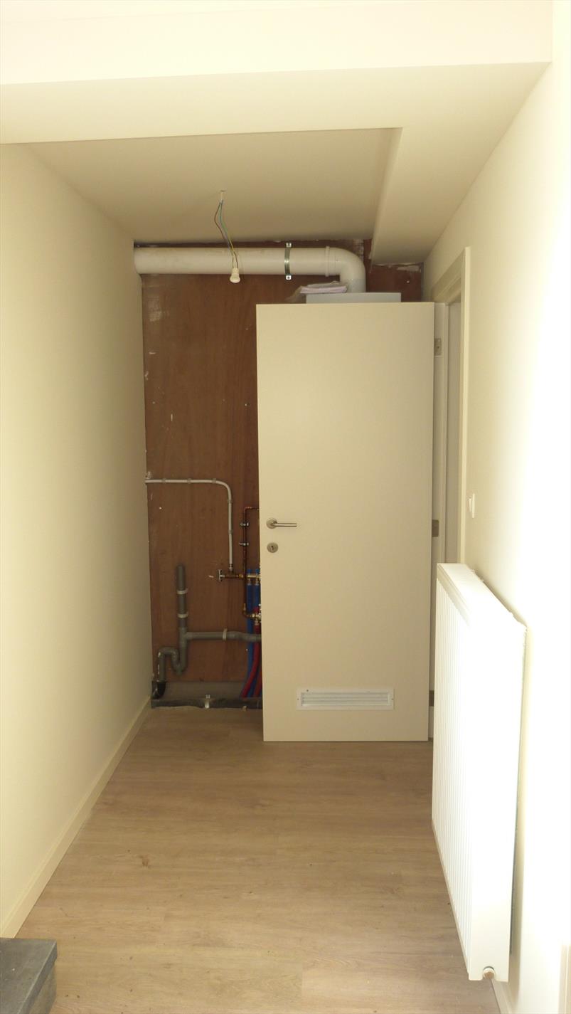 De vloeroppervlakte is +/- 50 m². Indeling: Ruime kamer met open keuken en aparte badkamer met ligbad, lavabo en toilet. Aan de straatzijde bevindt zich de slaapruimte, aan de achterzijde is de leefruimte met open keuken. Via de keuken komt met op een groot terras met buitenberging en aanpalende tuin.