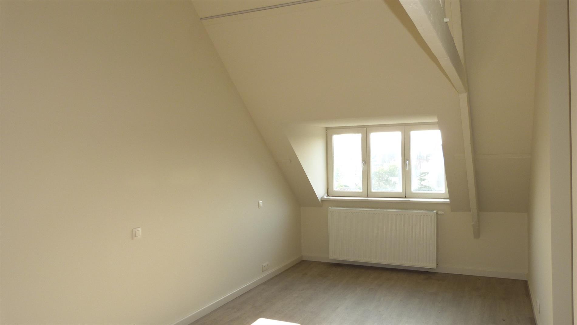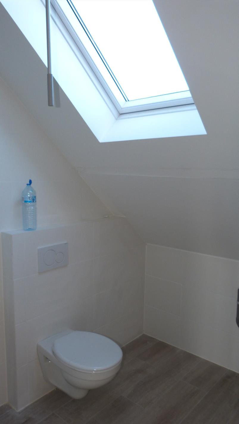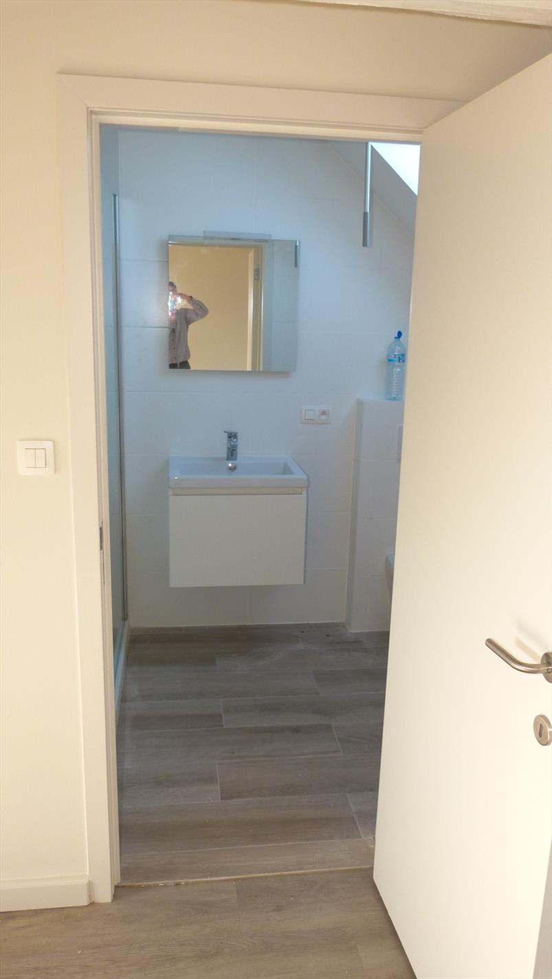 3de verdiep: zeer ruime (slaap) kamer met aparte badkamer. Badkamer met inloopdouche, lavabo, toilet en aansluiting voor wasmachine.