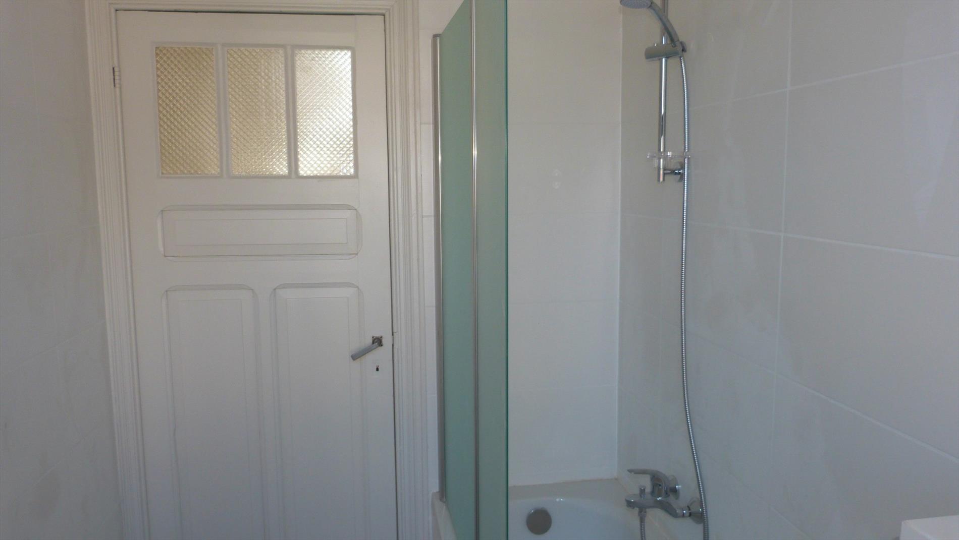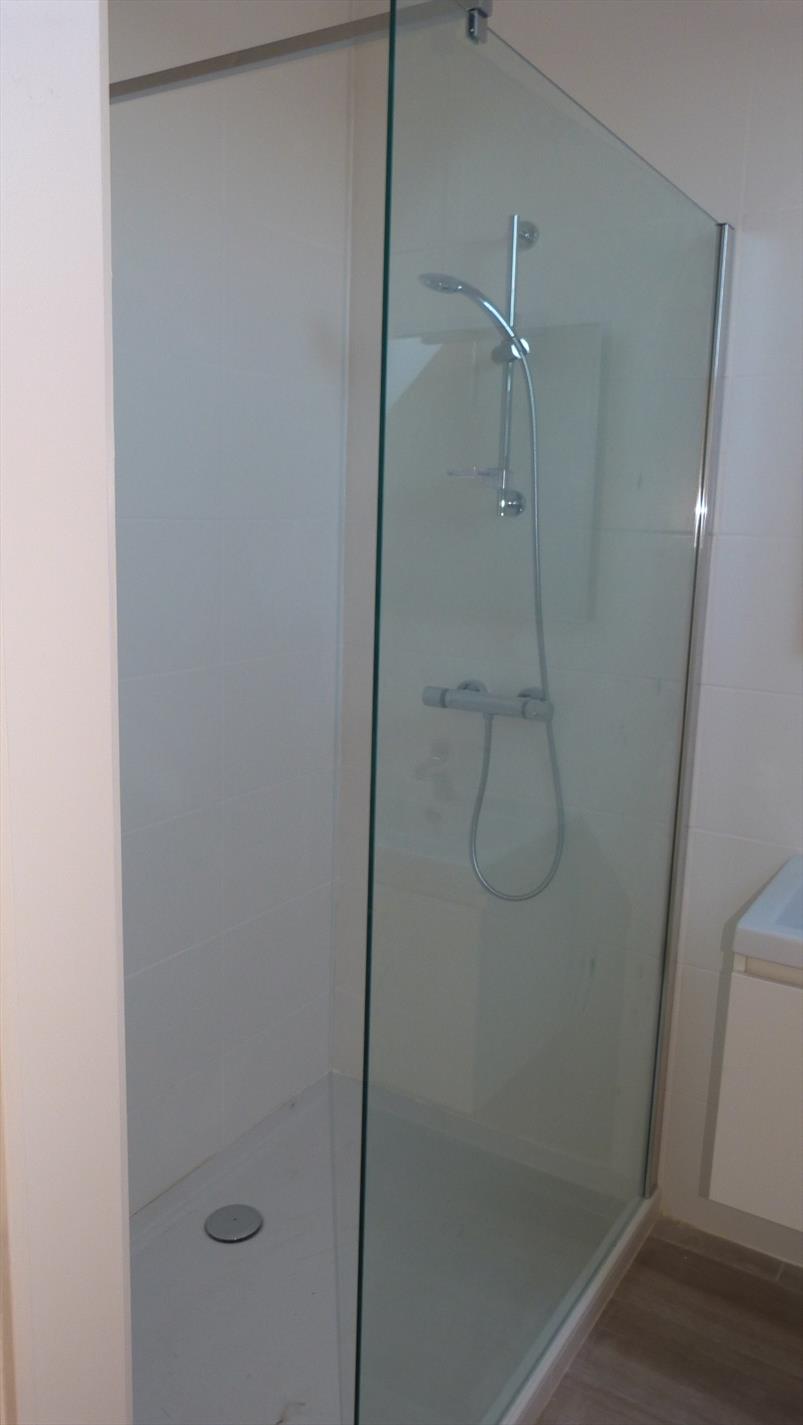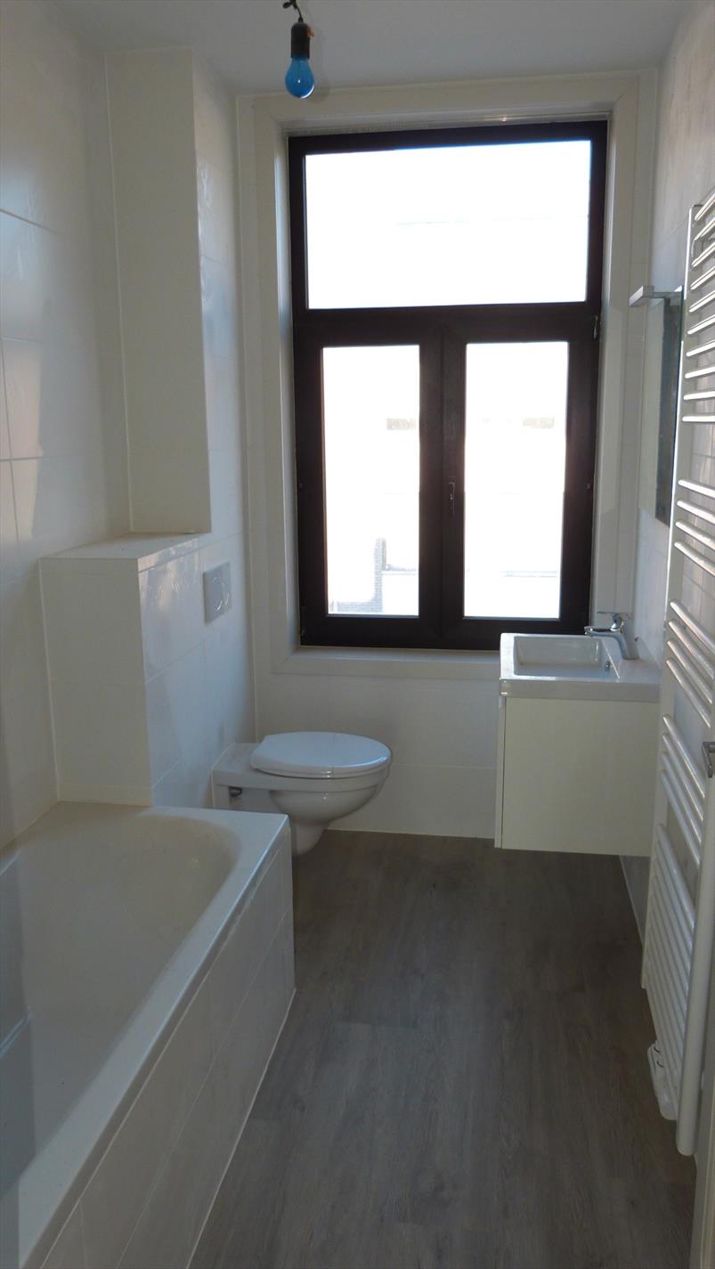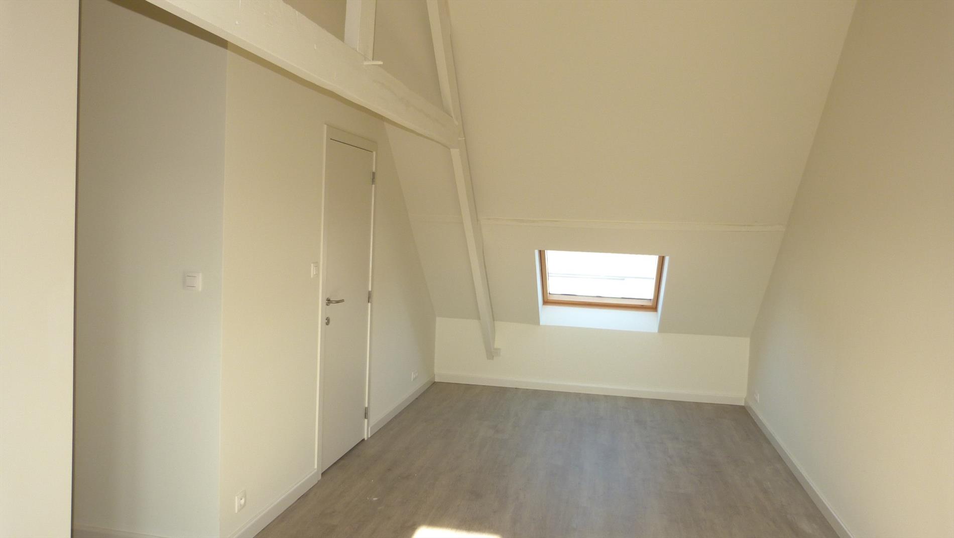 3de verdiep: zeer ruime (slaap) kamer met aparte badkamer. Badkamer met inloopdouche, lavabo, toilet en aansluiting voor wasmachine.
