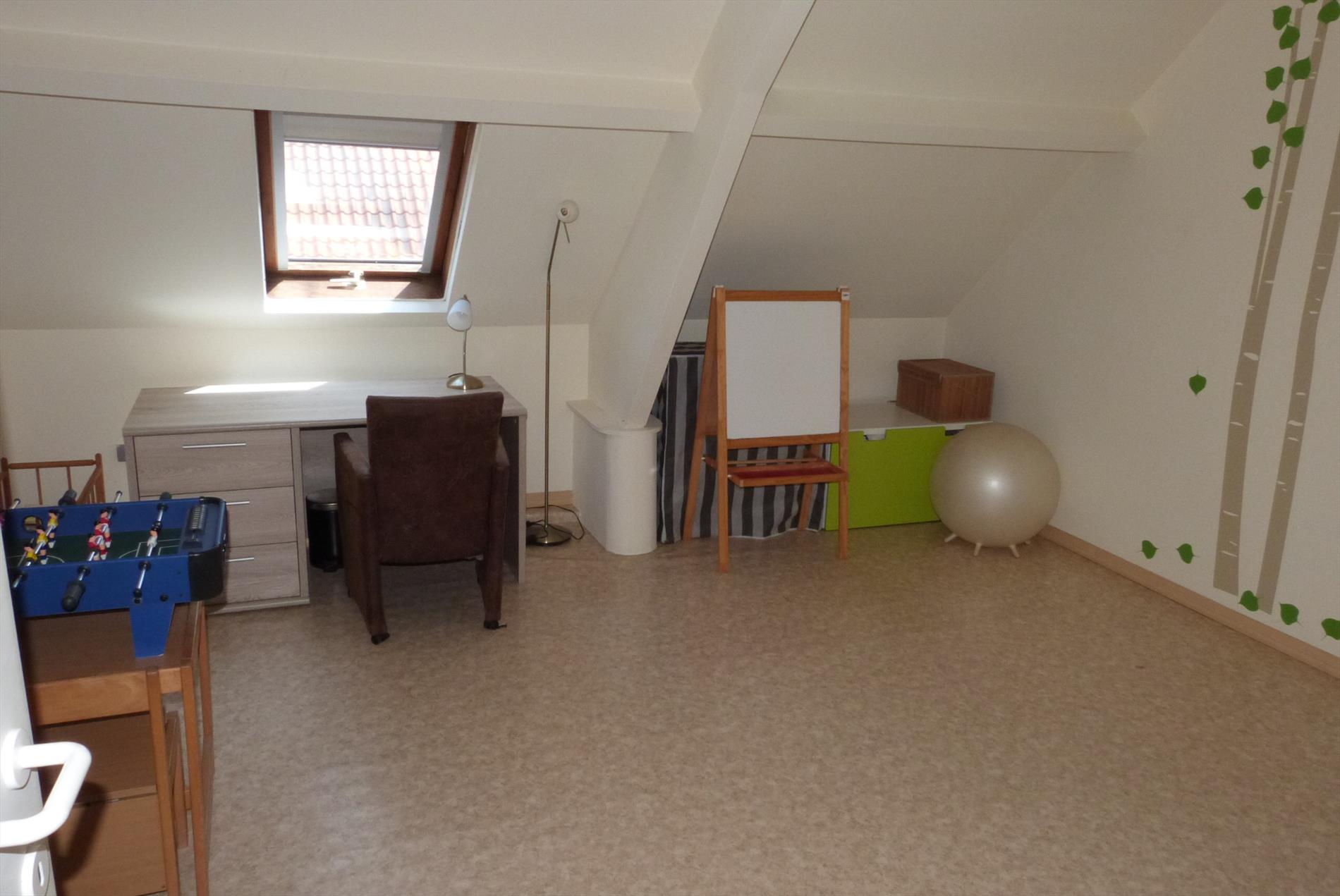 Eerste verdiep: 2 slaapkamers. Tweede verdiep: 1 slaapkamer en 1 zolderkamer.