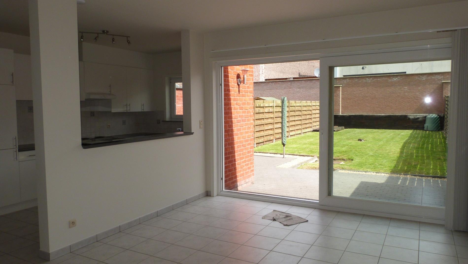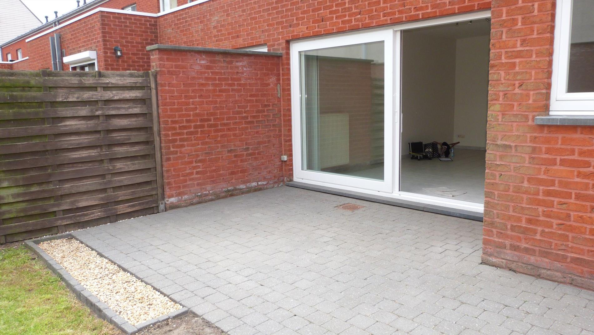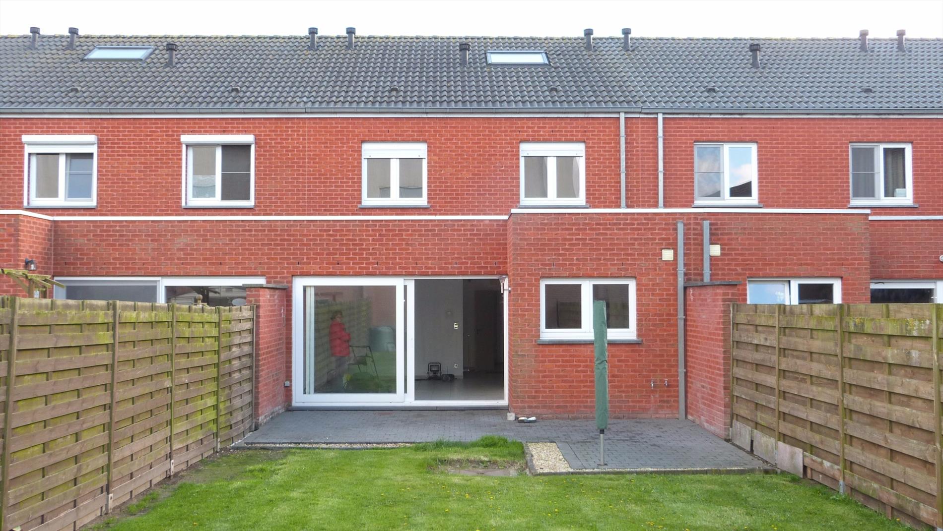 Recente rijwoning met garage, terras en tuintje.