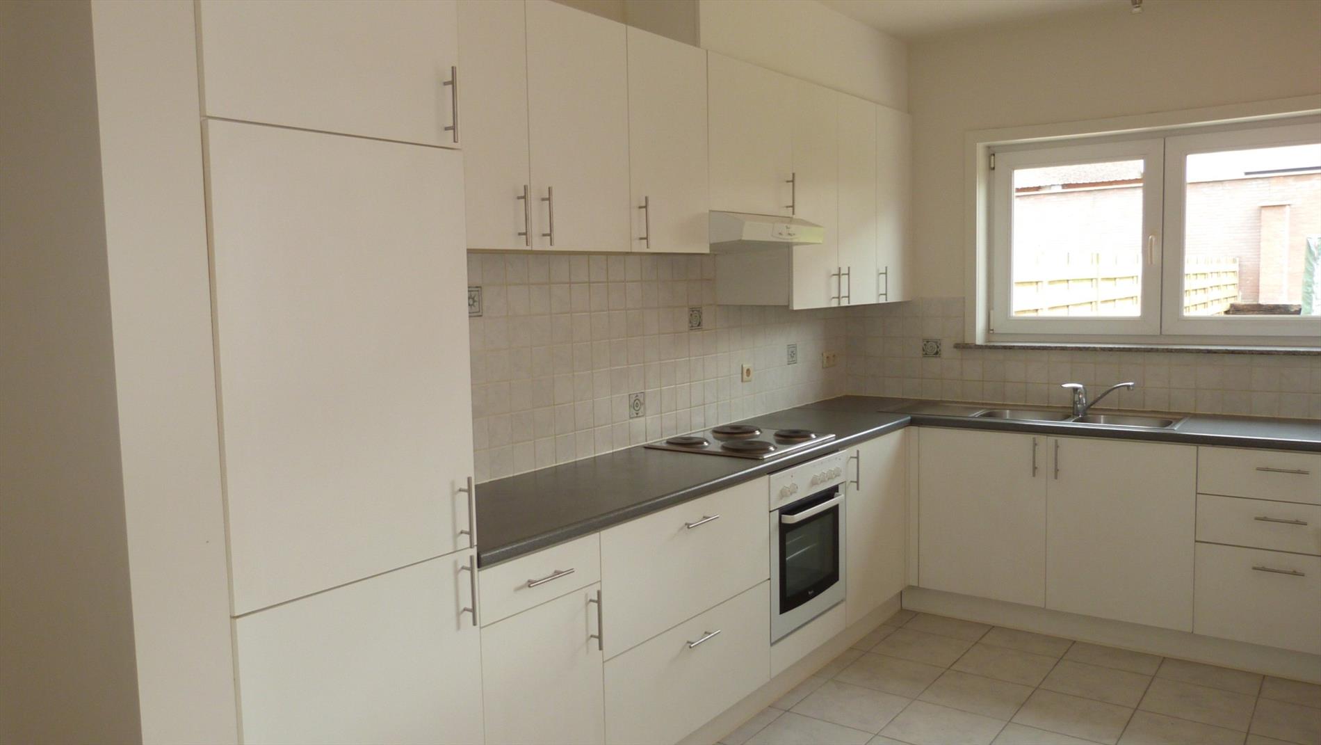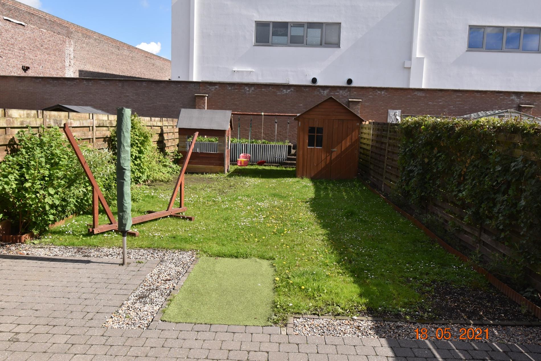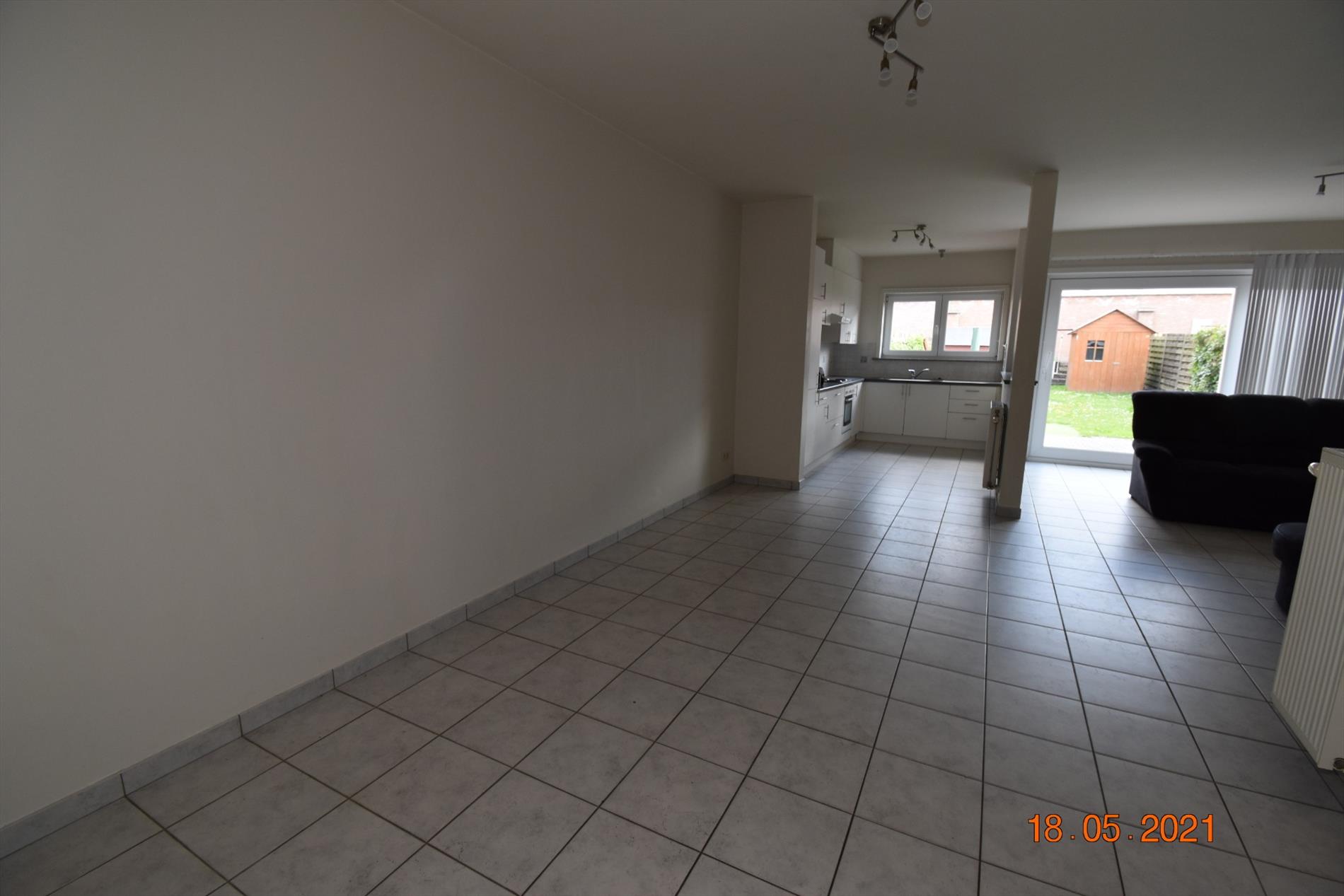 Recente rijwoning met garage, terras en tuintje.