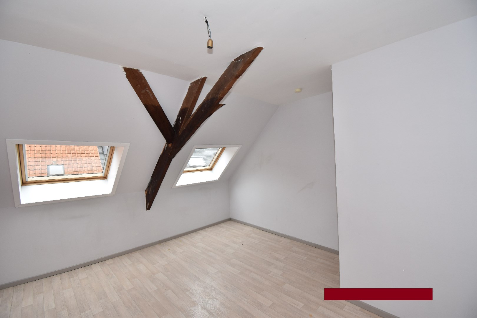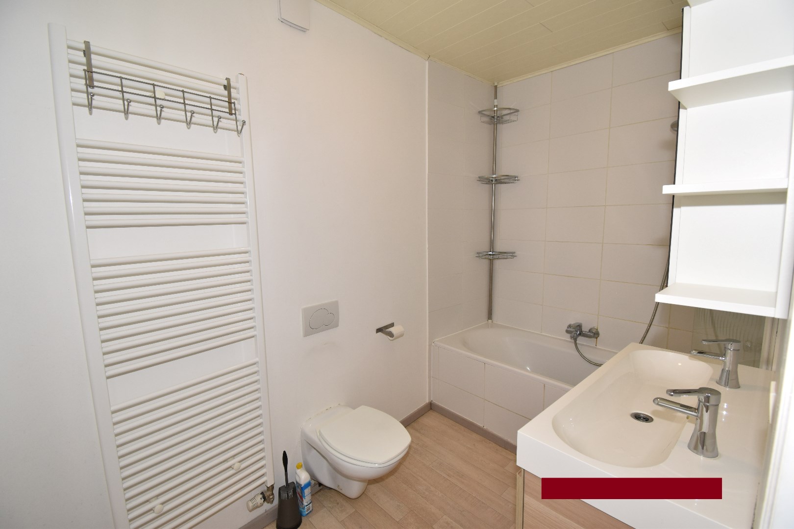 1ste verdiep: overloop, 2 slaapkamers, badkamer met ligbad, badkamermeubel en toilet. 2de verdiep: 3de slaapkamer en zolder.
