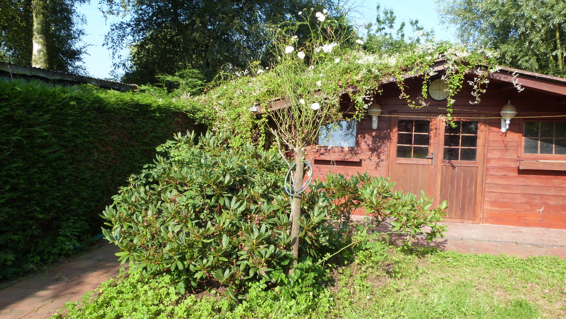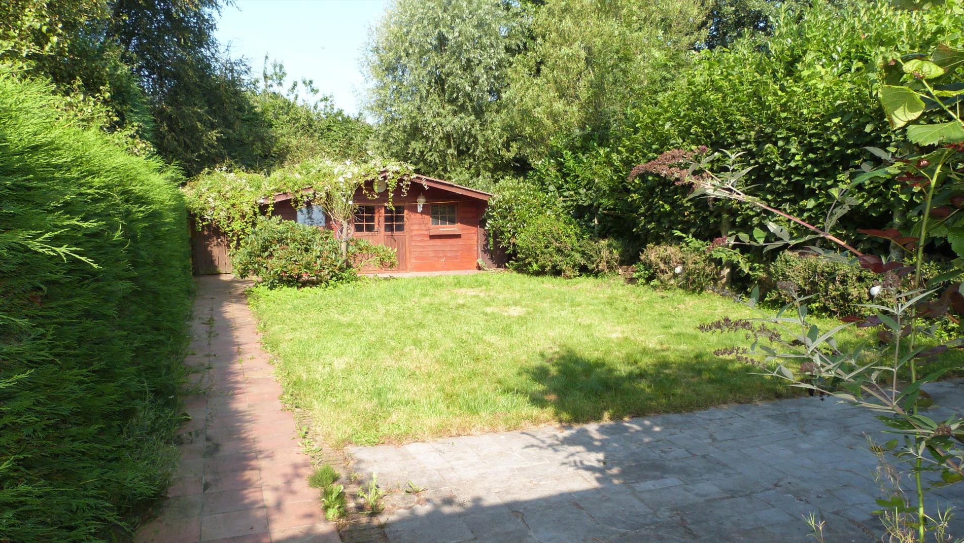 Garage, tuinhuis en gezellige tuin.