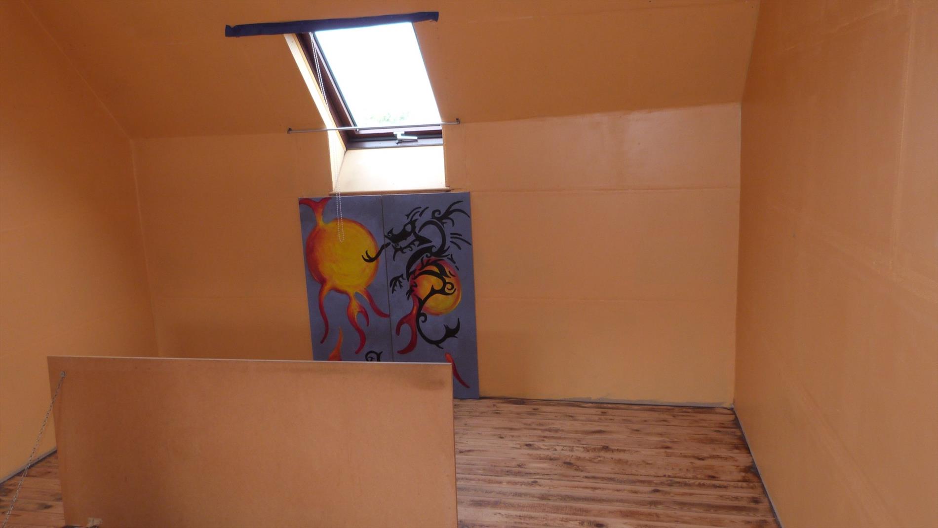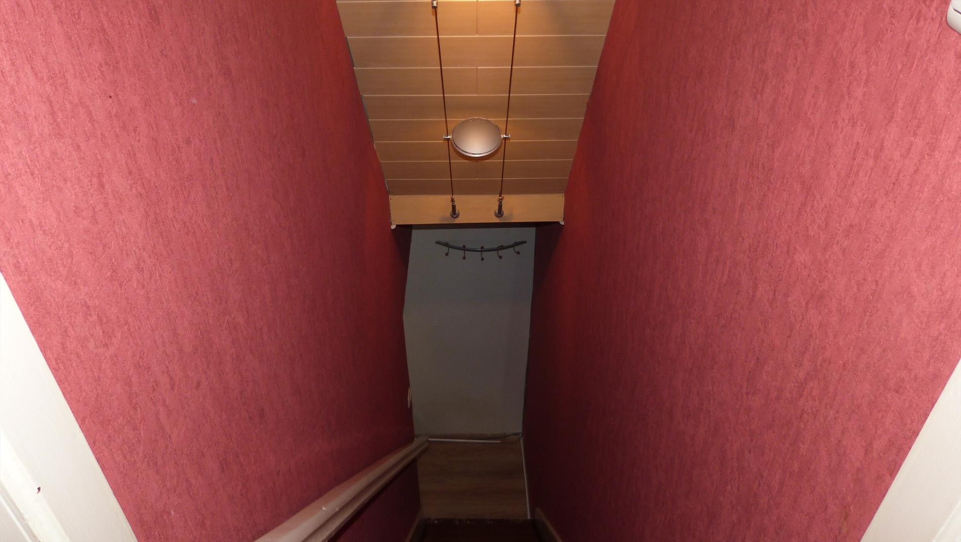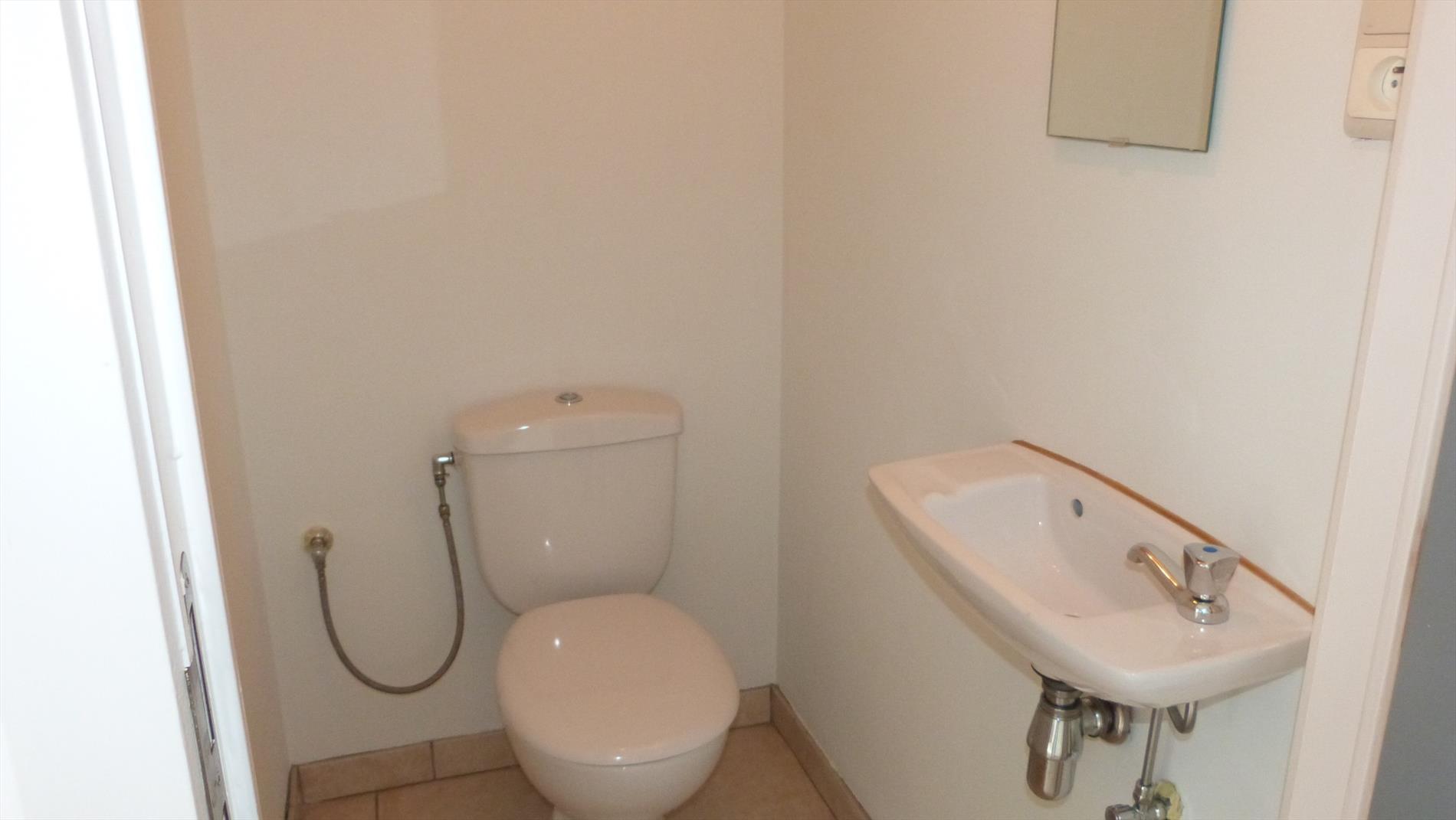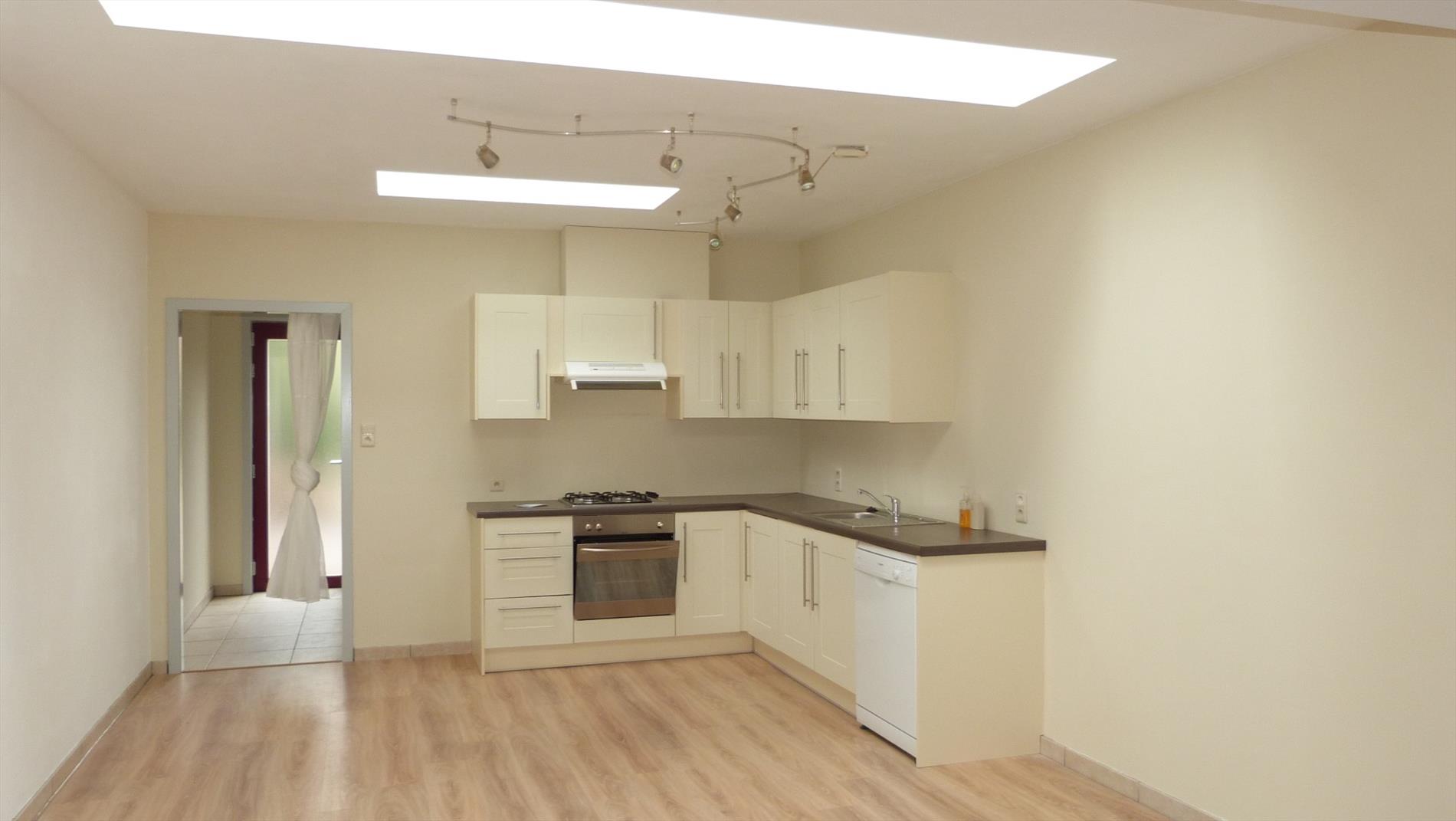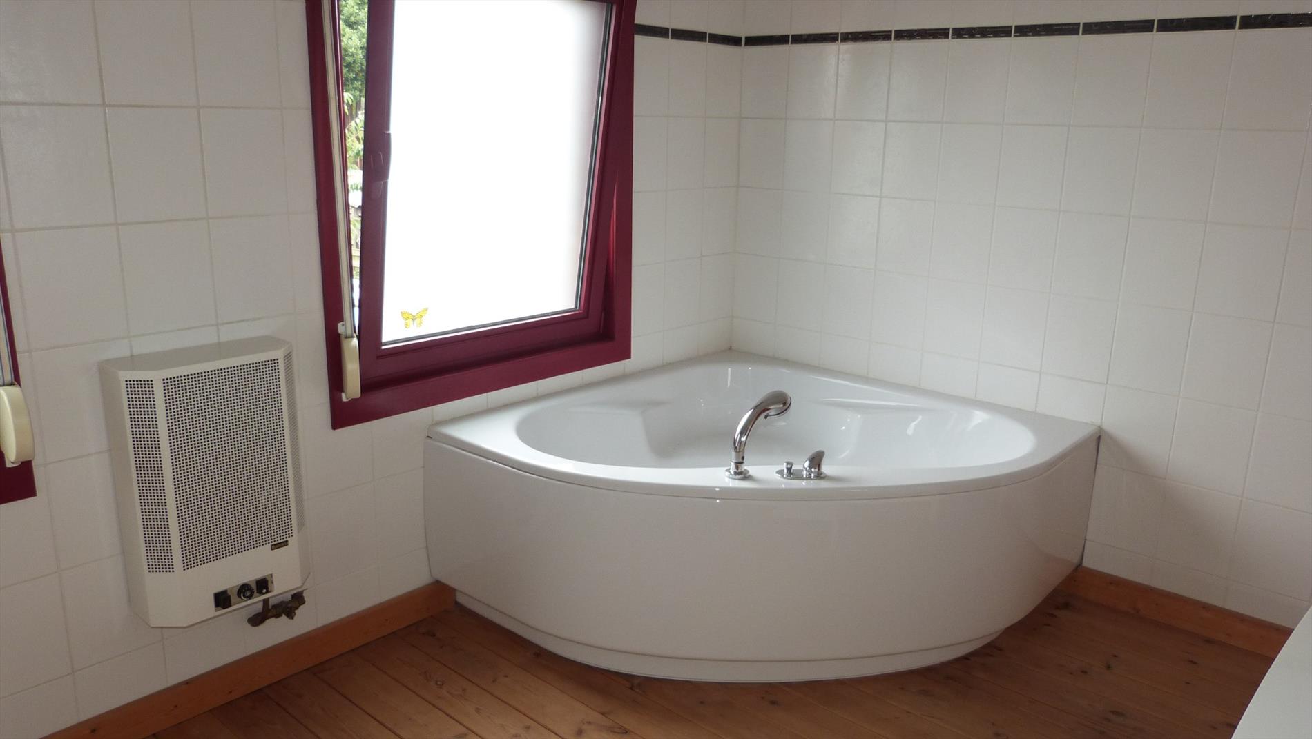 Verdiep: 1 slaapkamer en ruime badkamer: hoekbad, badkamermeubel met lavabo en toilet. Ruime zolderkamer = 2de slaapkamer. Tuin met overdekt terras,/veranda en aparte garage, inrit via Molenberg.
