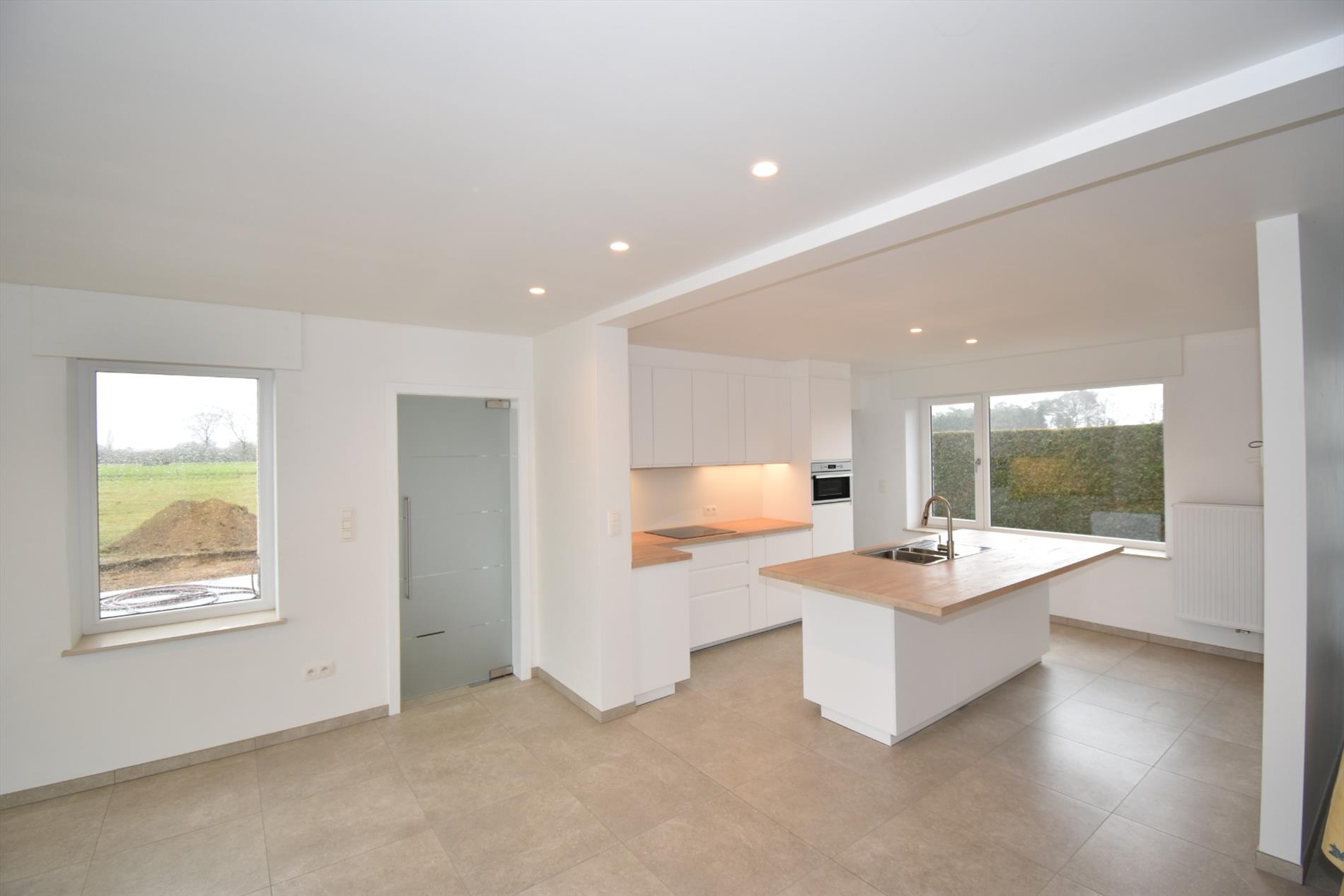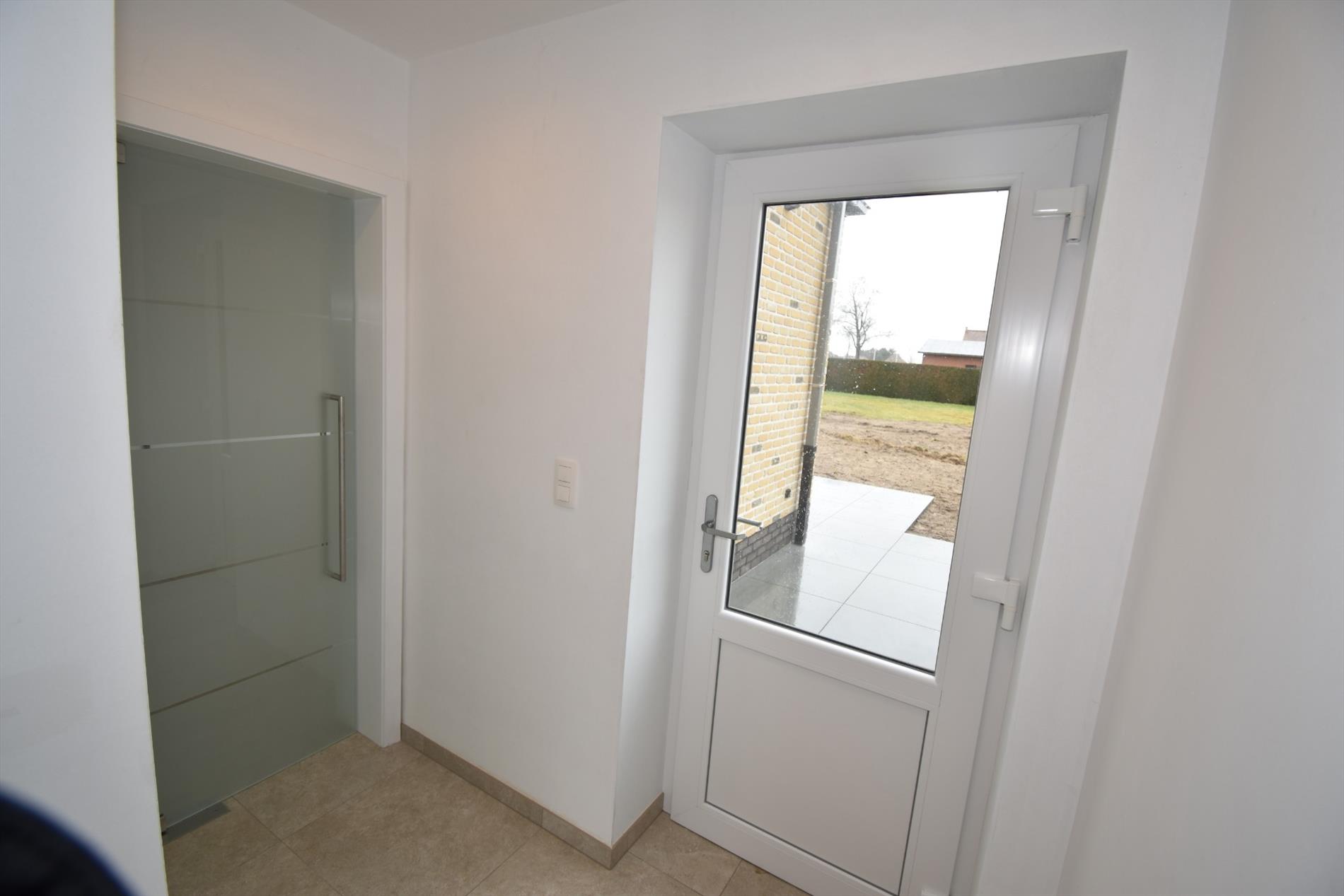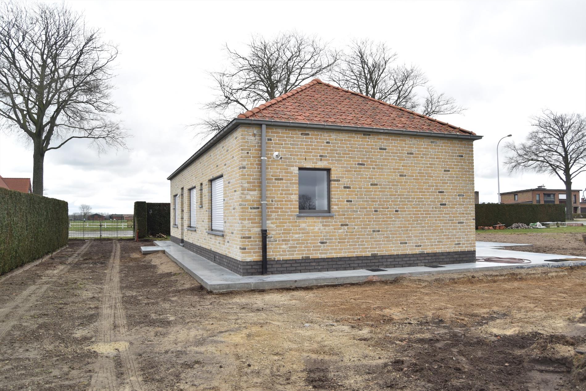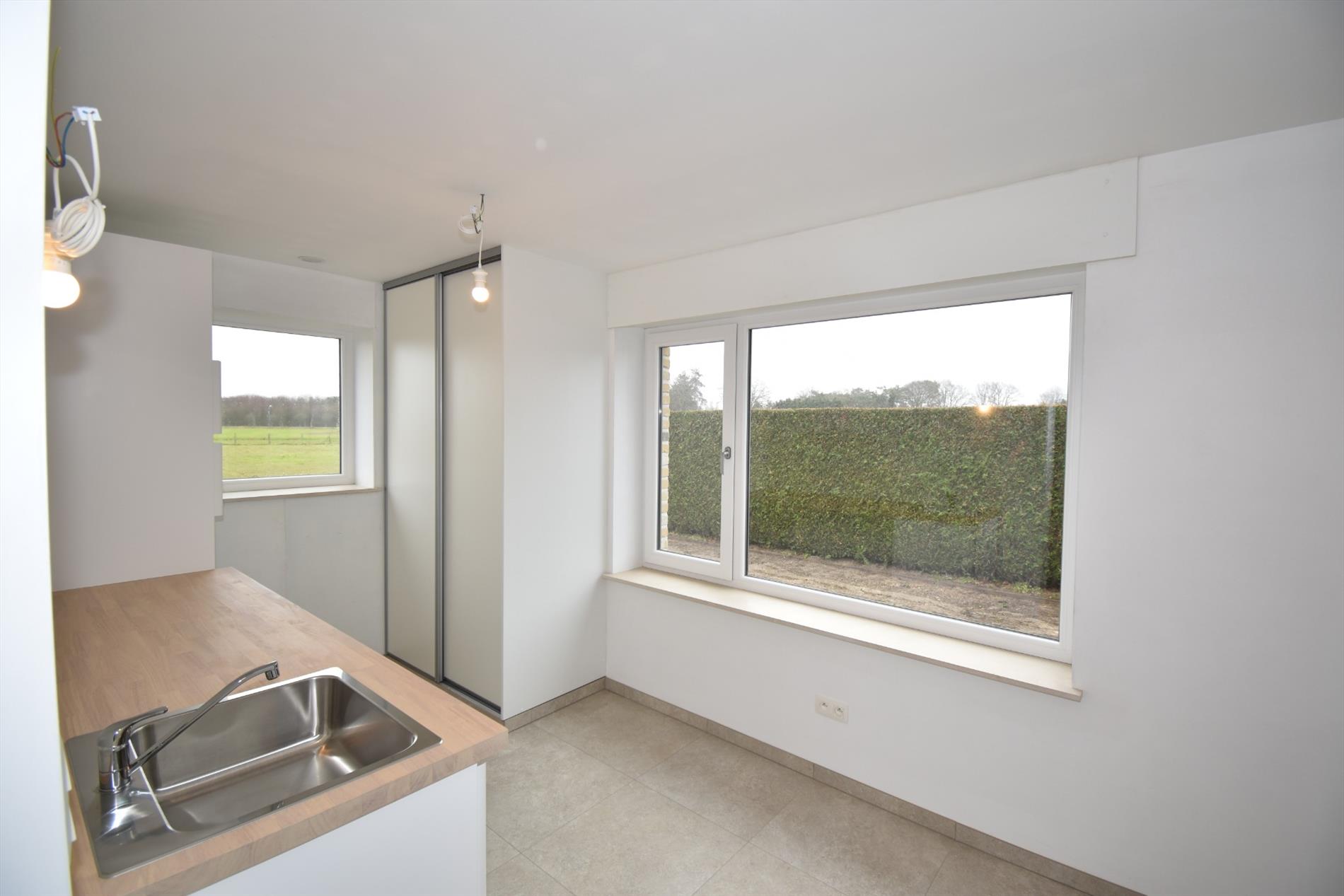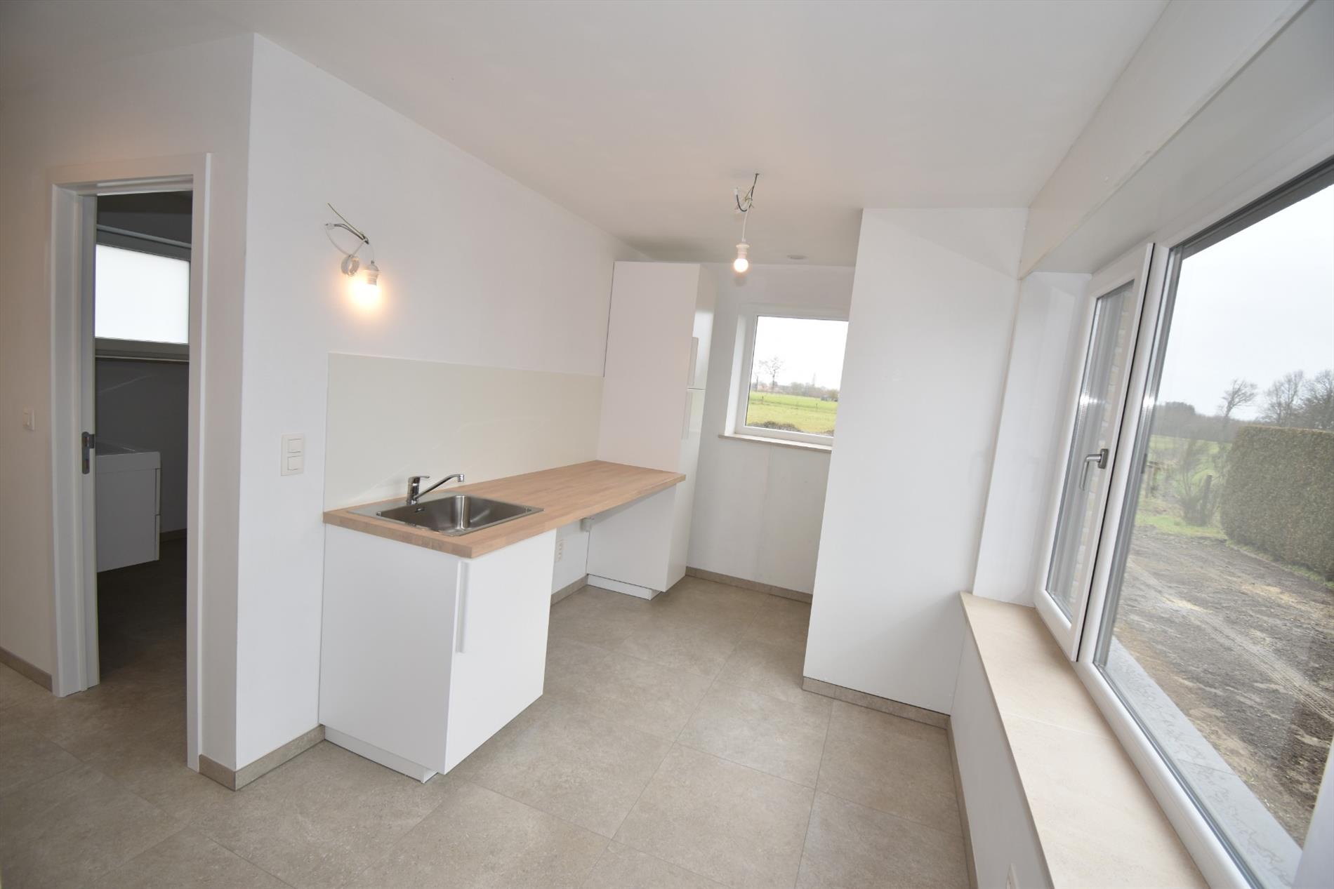 Buiten werd er rondom een nieuw pad en een mooi zonnig terras gelegd. Achteraan heeft men zicht over de velden.