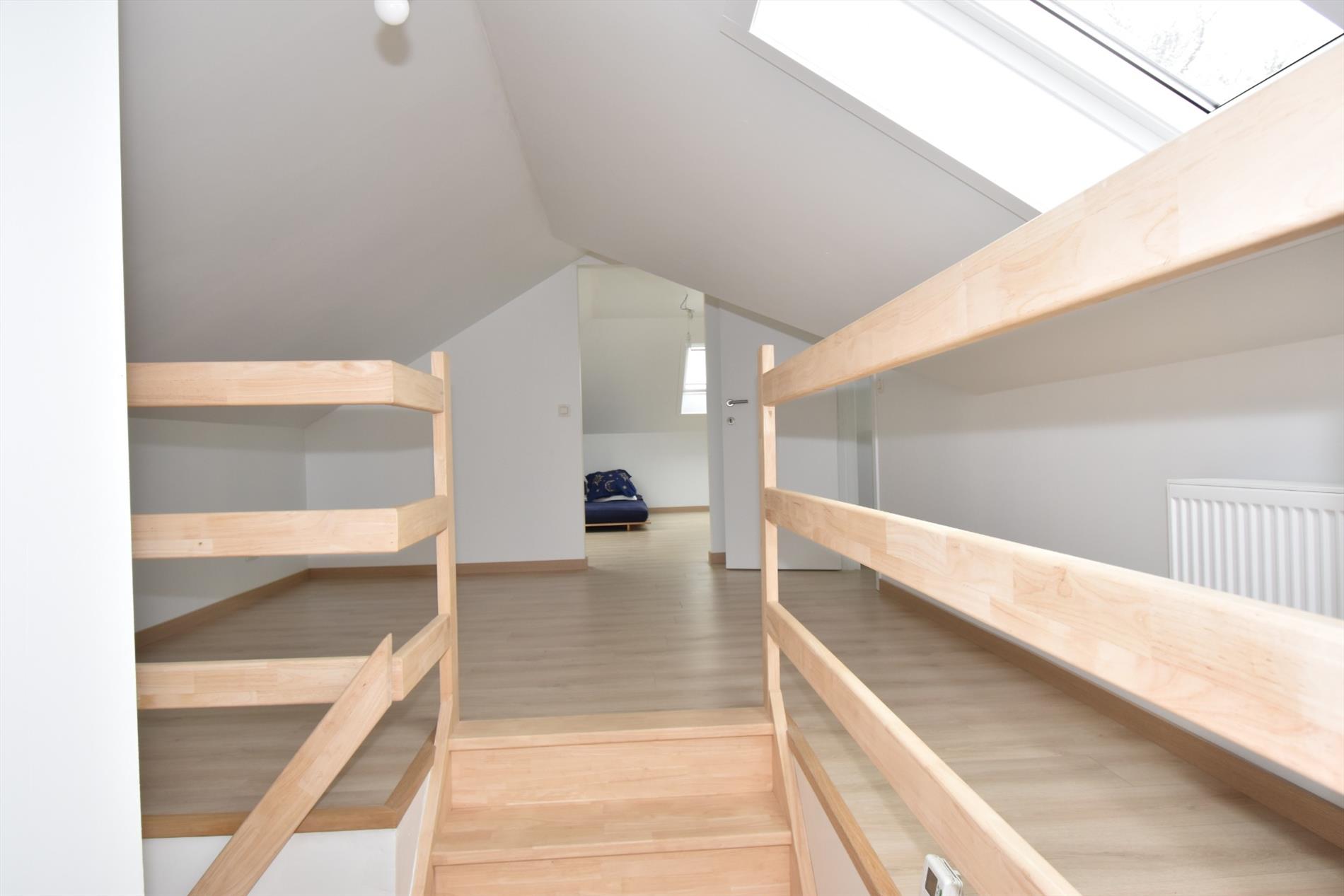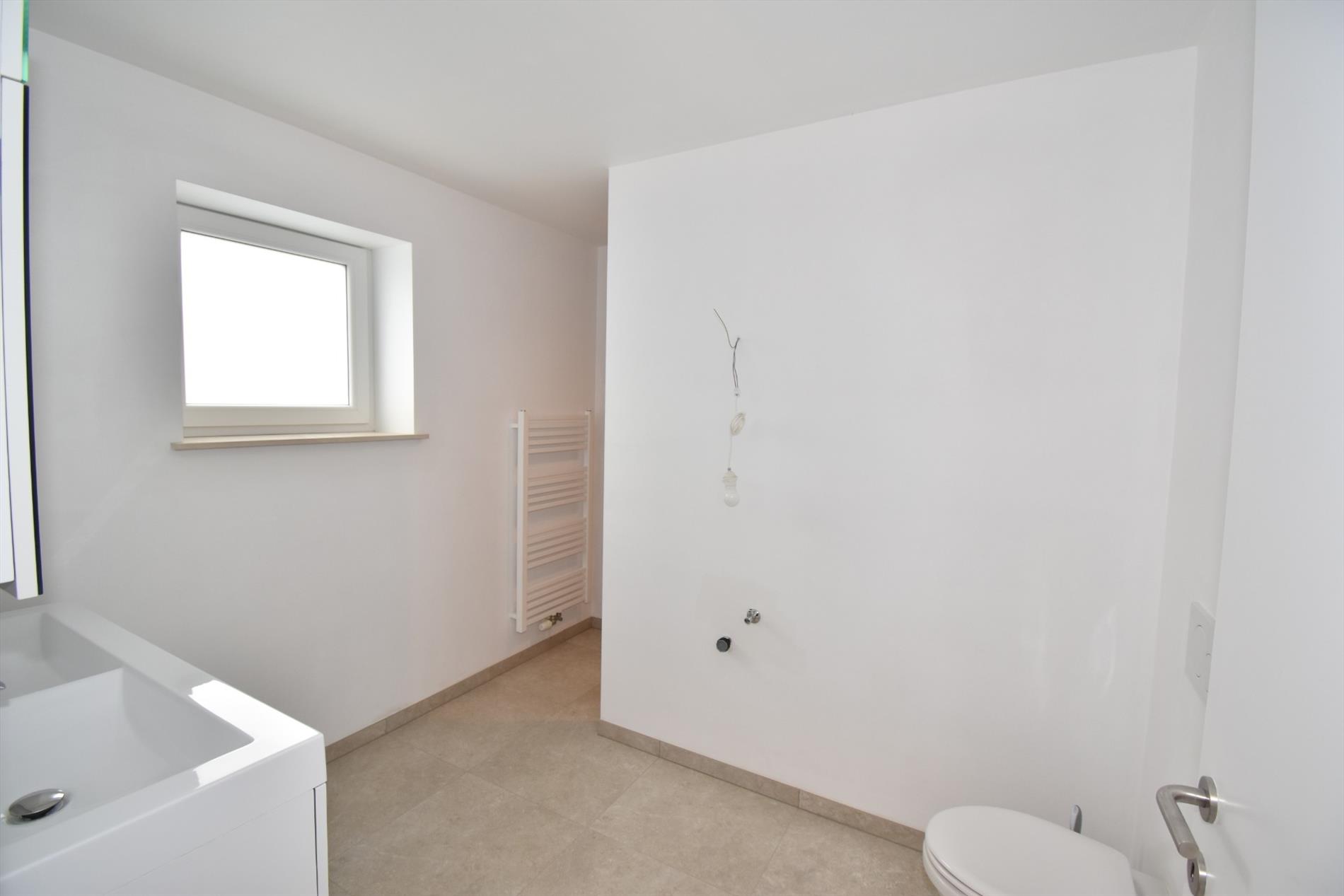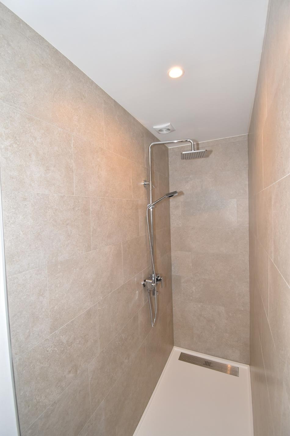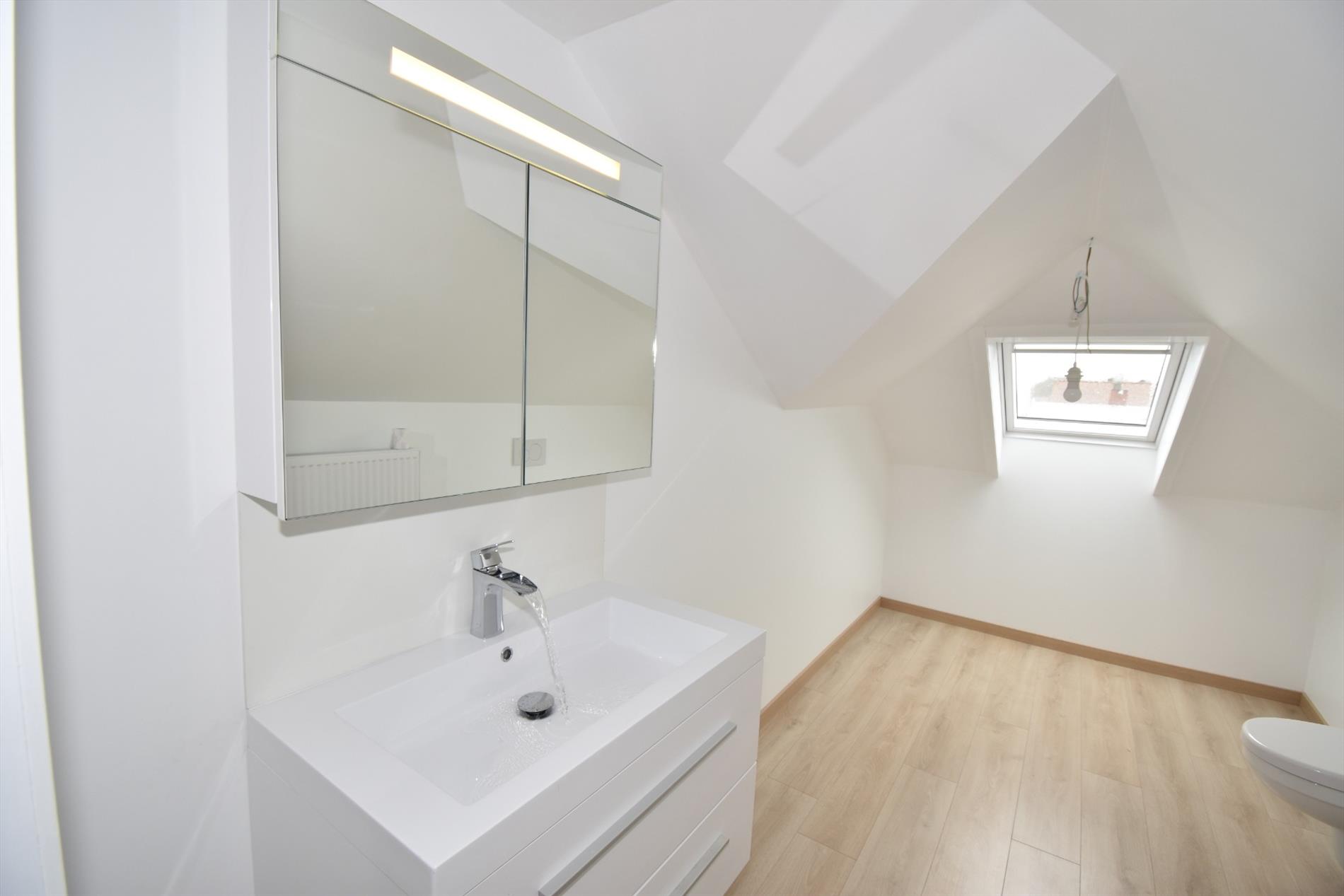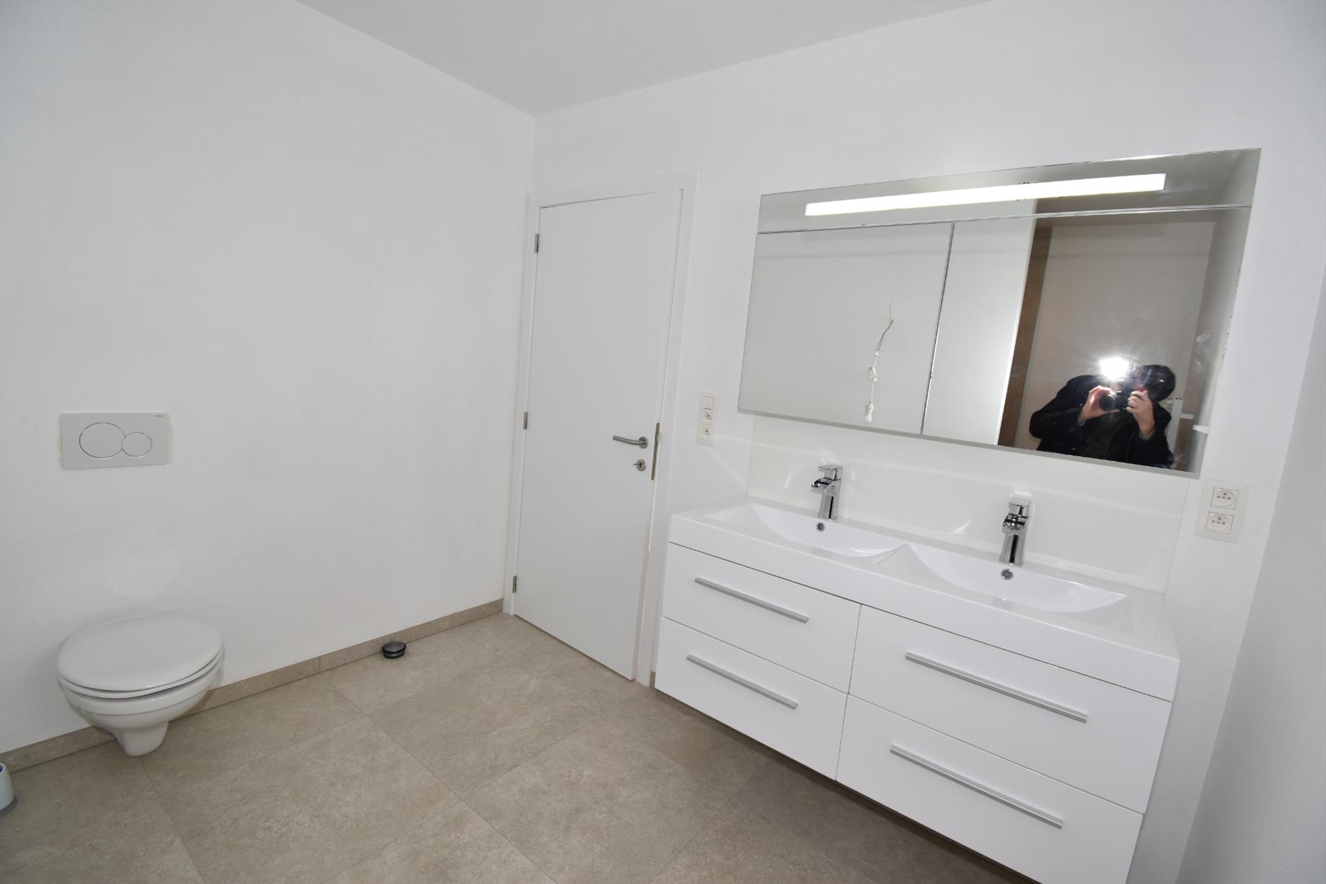 Beneden hebben we de inkom, living met open keuken, wasplaats/berging, badkamer met inloopdouche, lavabomeubel met dubbele lavabo en toilet, 2 slaapkamers; Boven is er een grote overloop, 2 slaapkamers waarvan 1 met aanpalende dressing,, kamer met apart toilet en lavabomeubel met 1 ingebouwde lavabo. Onder de woning is een ruime kelder.