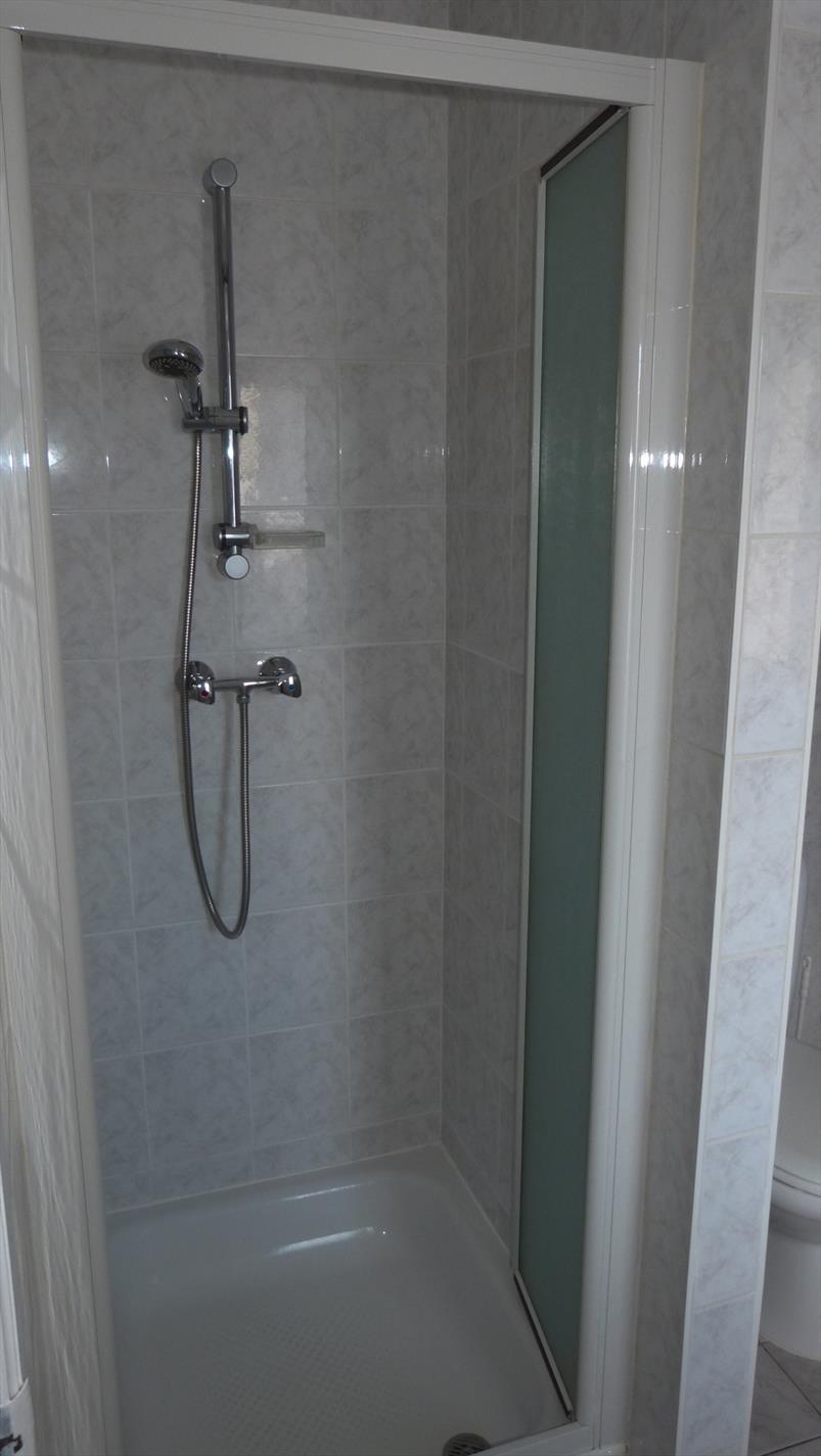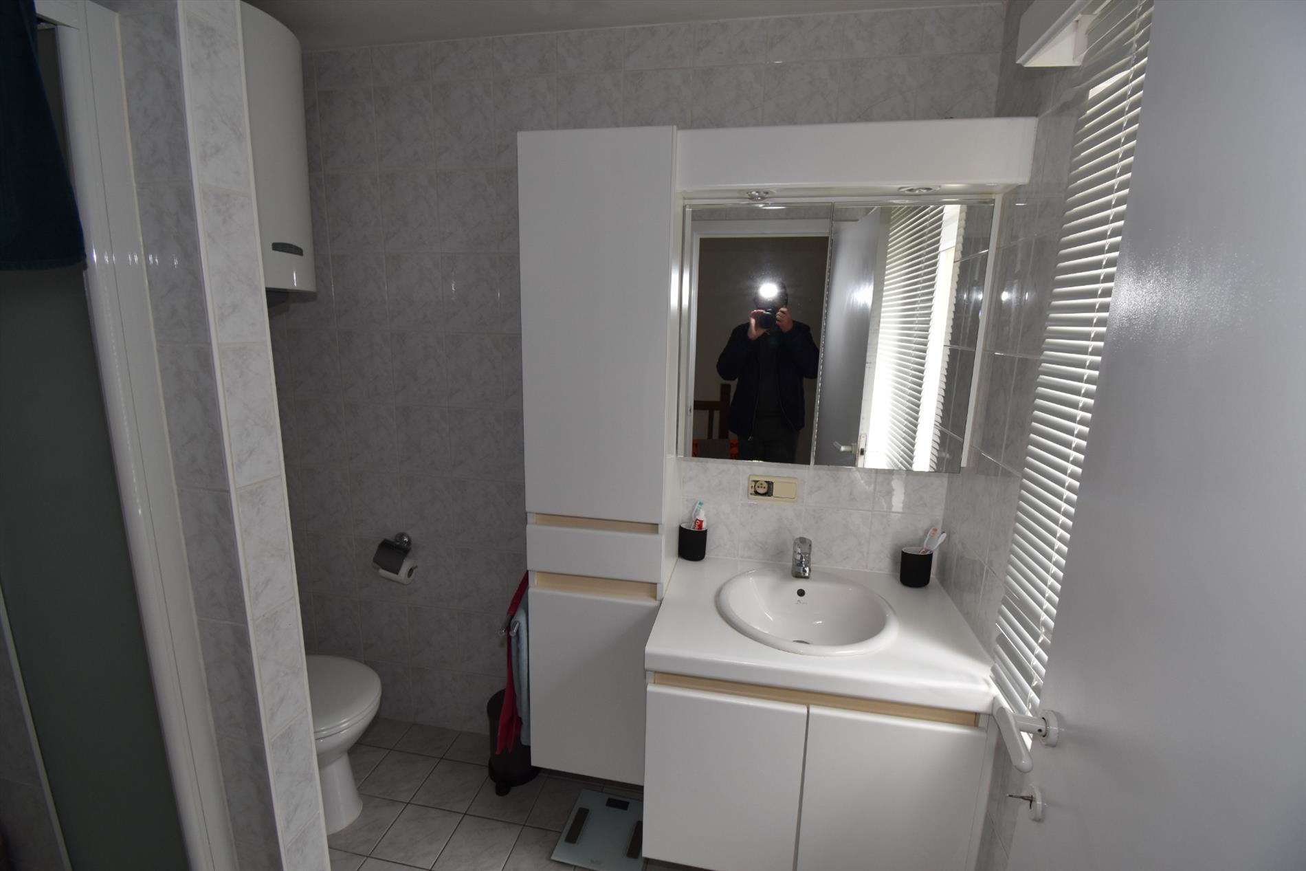 Indeling: gemeenschappelijke inkom, living, keuken, berging, apart toilet, keuken, koer/terras. Boven zijn er 2 slaapkamers en een badkamer met badkamermeubel met ingebouwde lavabo, douche en toilet.