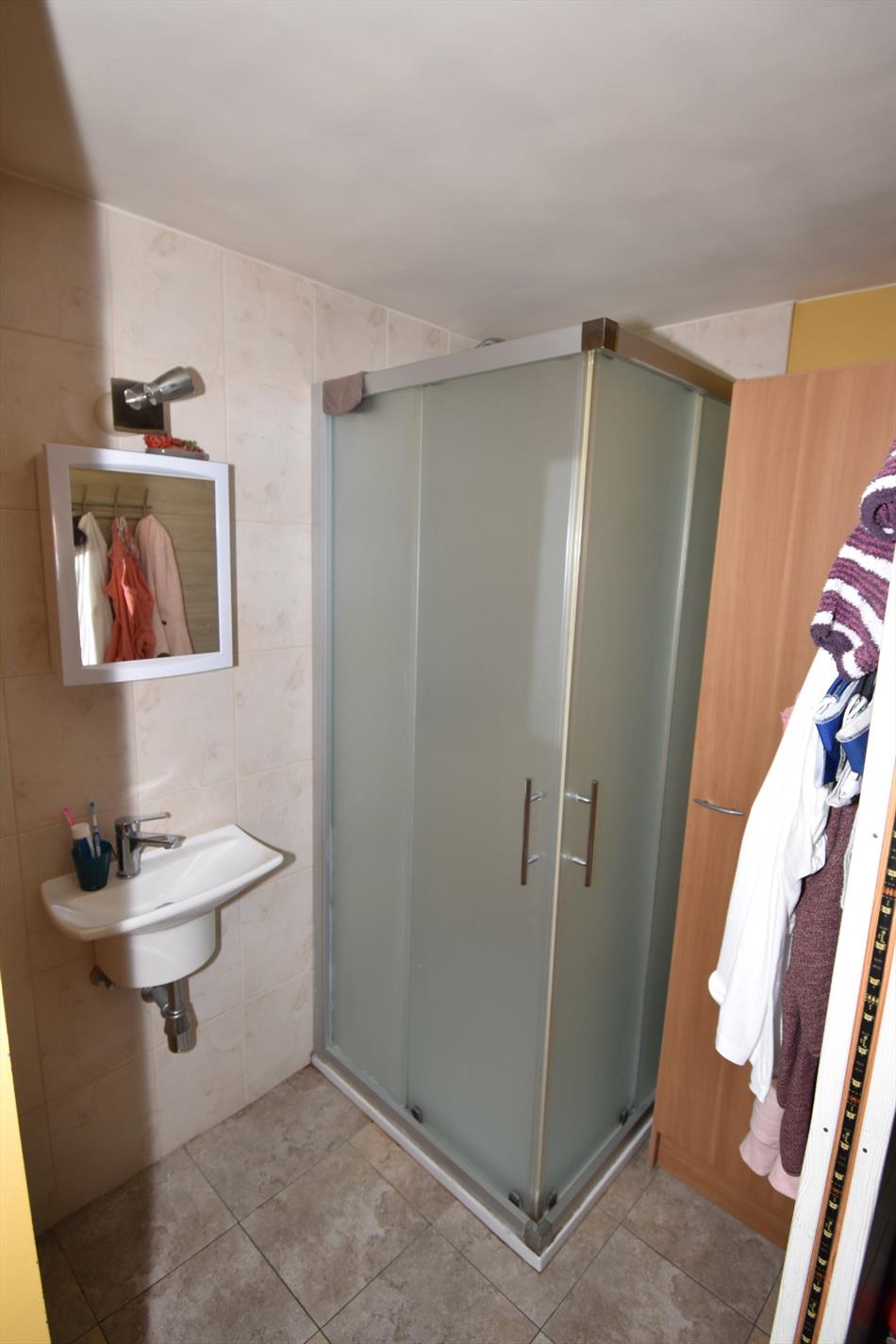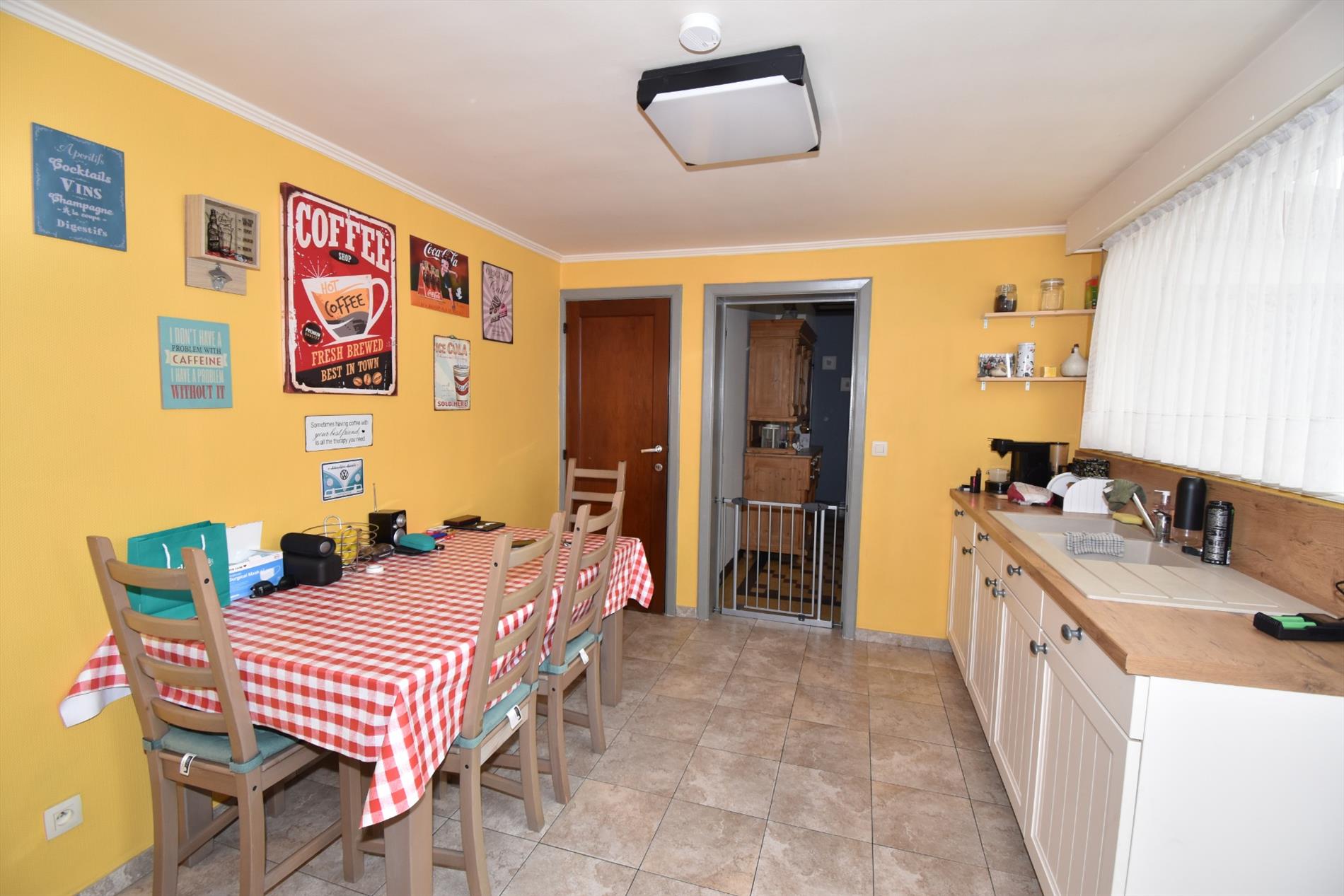 Indeling: inkom, living,&salon, keuken, bijkeuken, badkamer (met douche en lavabo), apart toilet, kelder