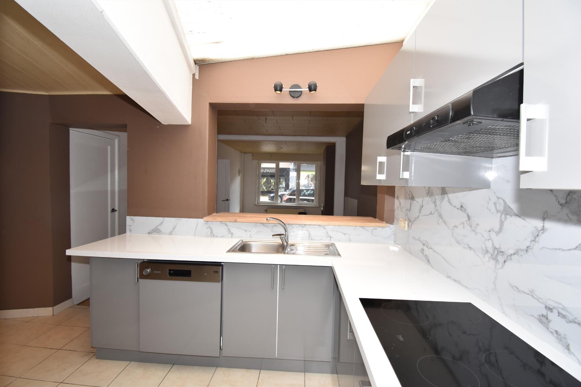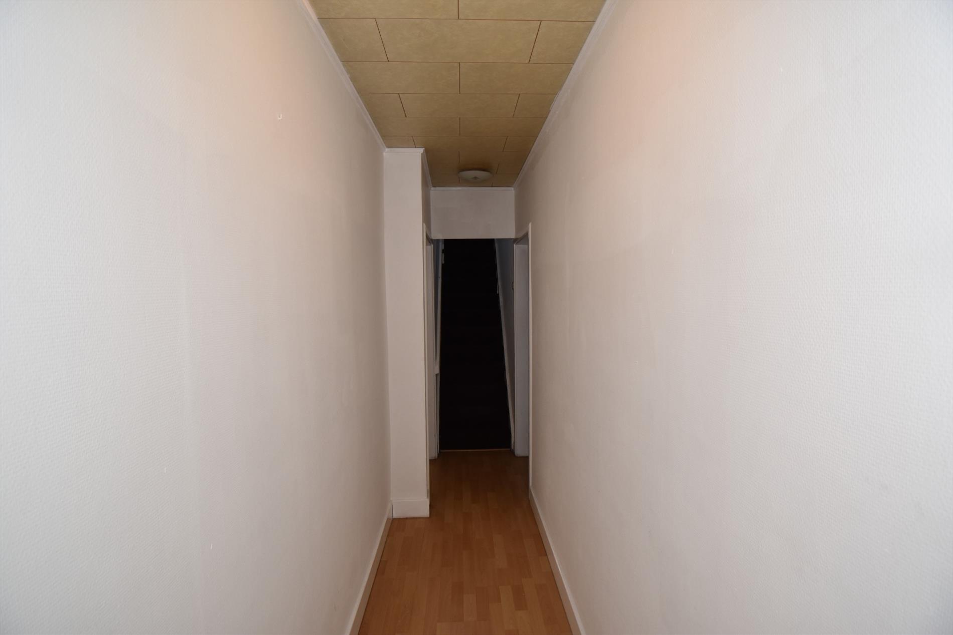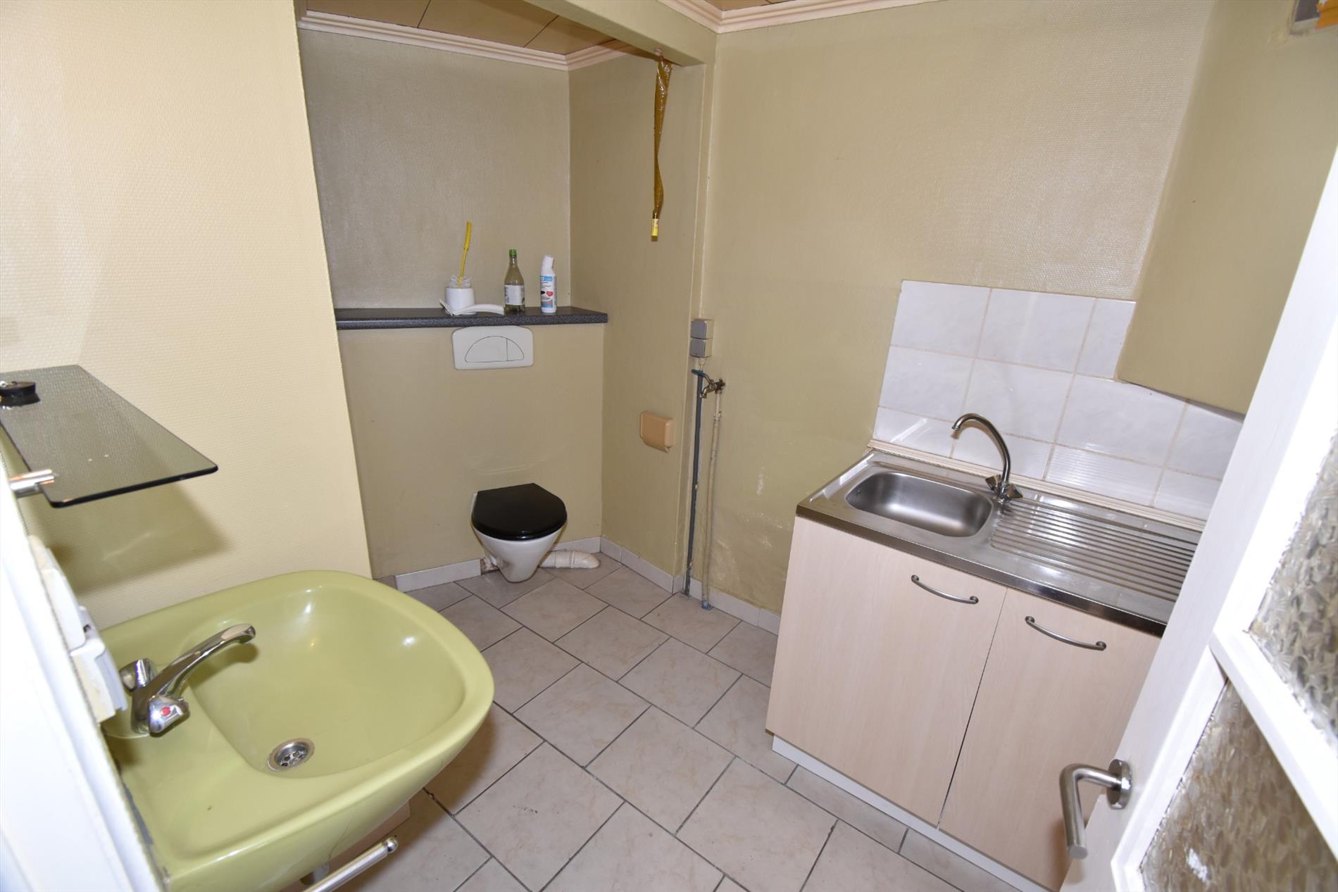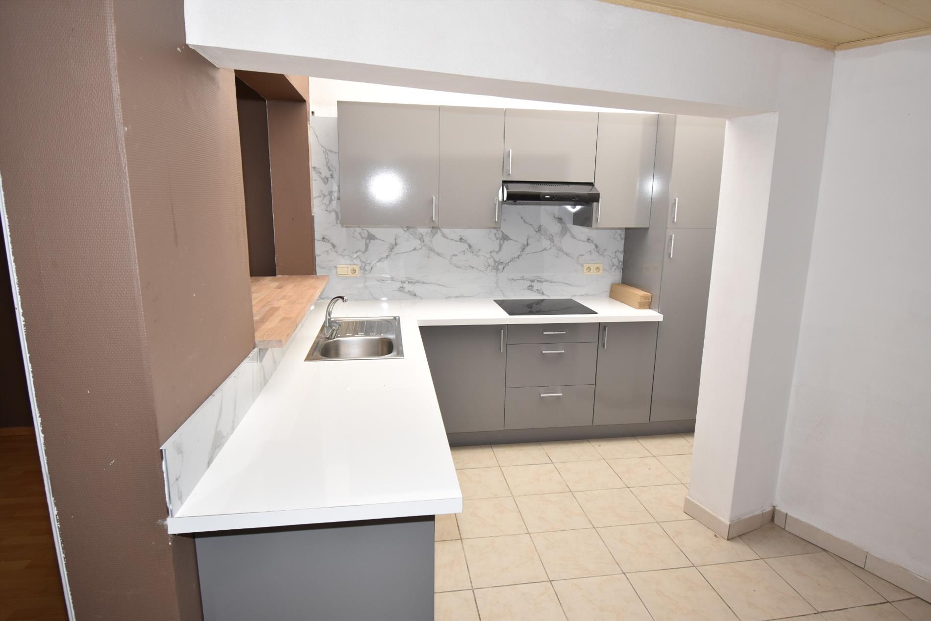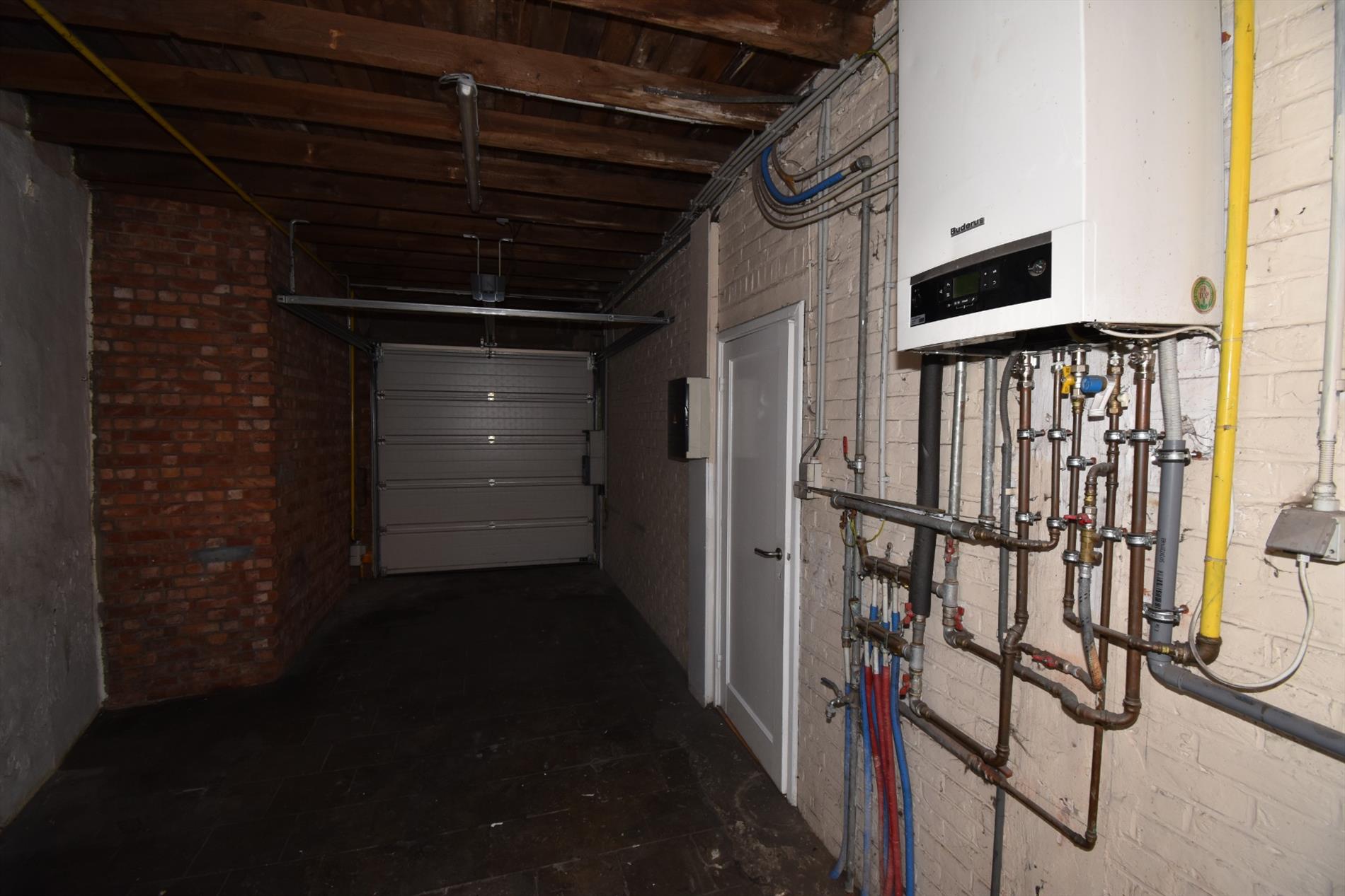 Inkom, grote woonkamer met half open keuken, wasplaats met toilet, kelder en garage met sectionale poort;