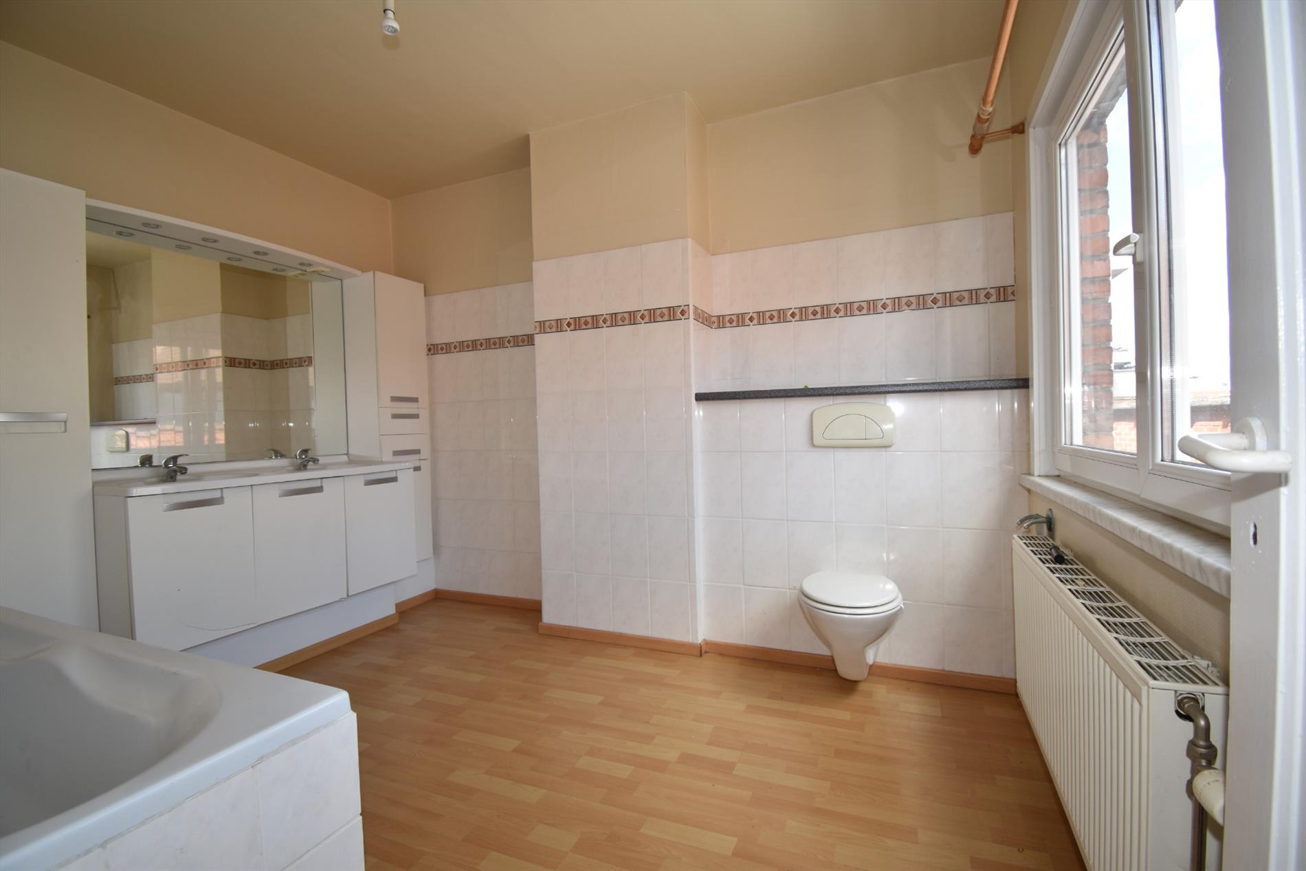 Op het 1ste verdiep is er een ruime slaapkamer en badkamer met ligbad , lavabomeubel met dubbele lavabo, toilet.