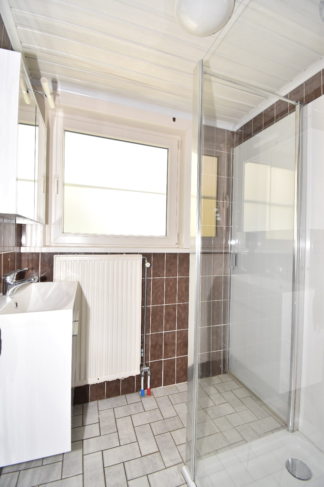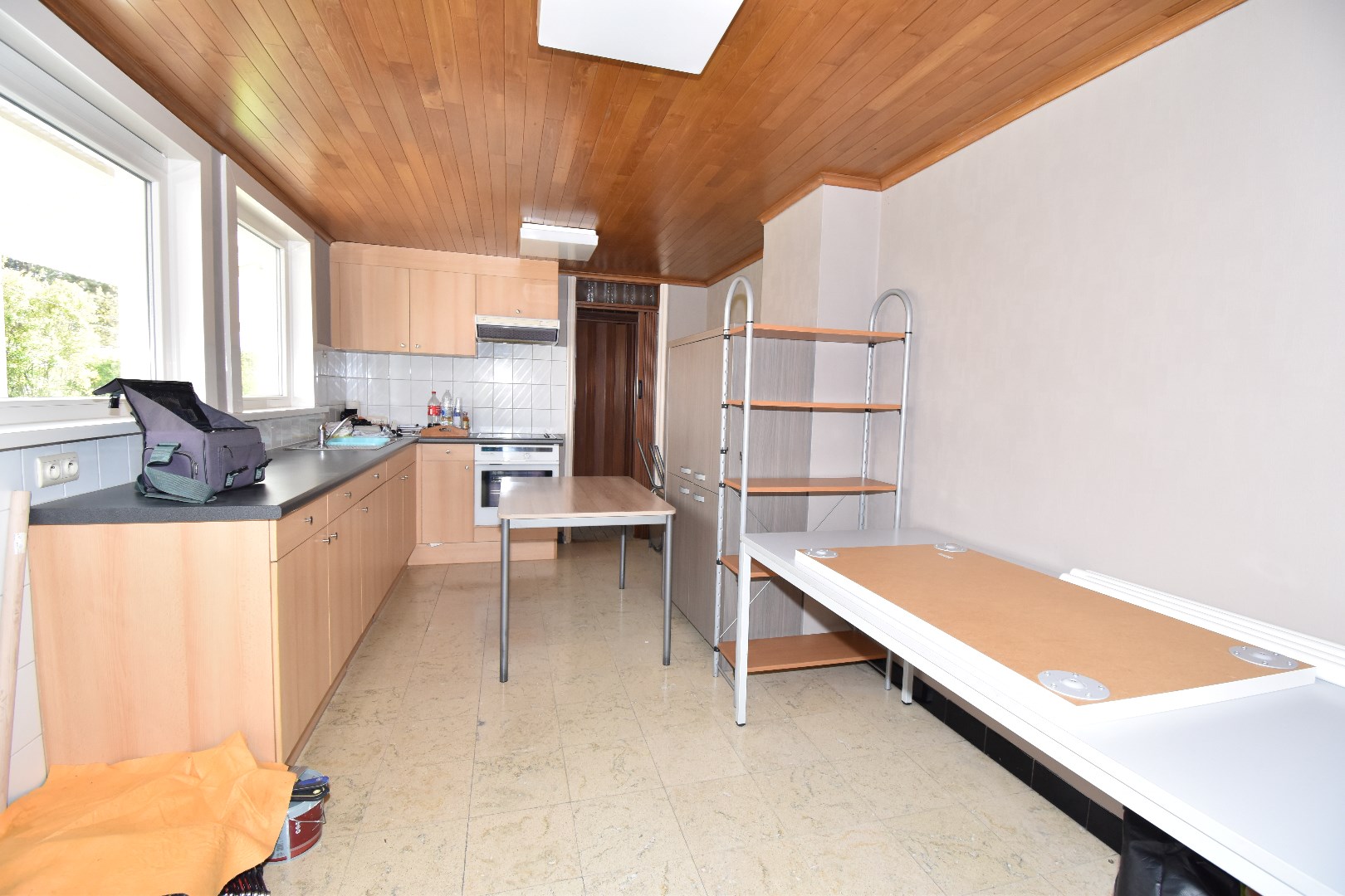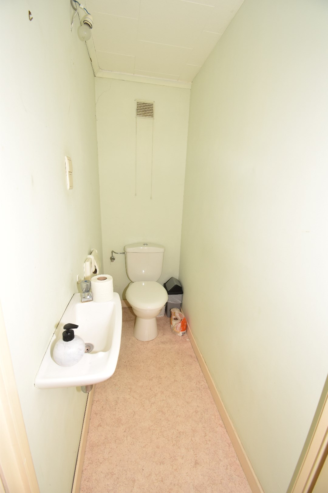 Indeling: inkom, living,&salon, keuken, badkamer (met douche en lavabo), toilet