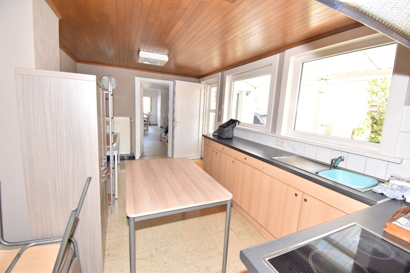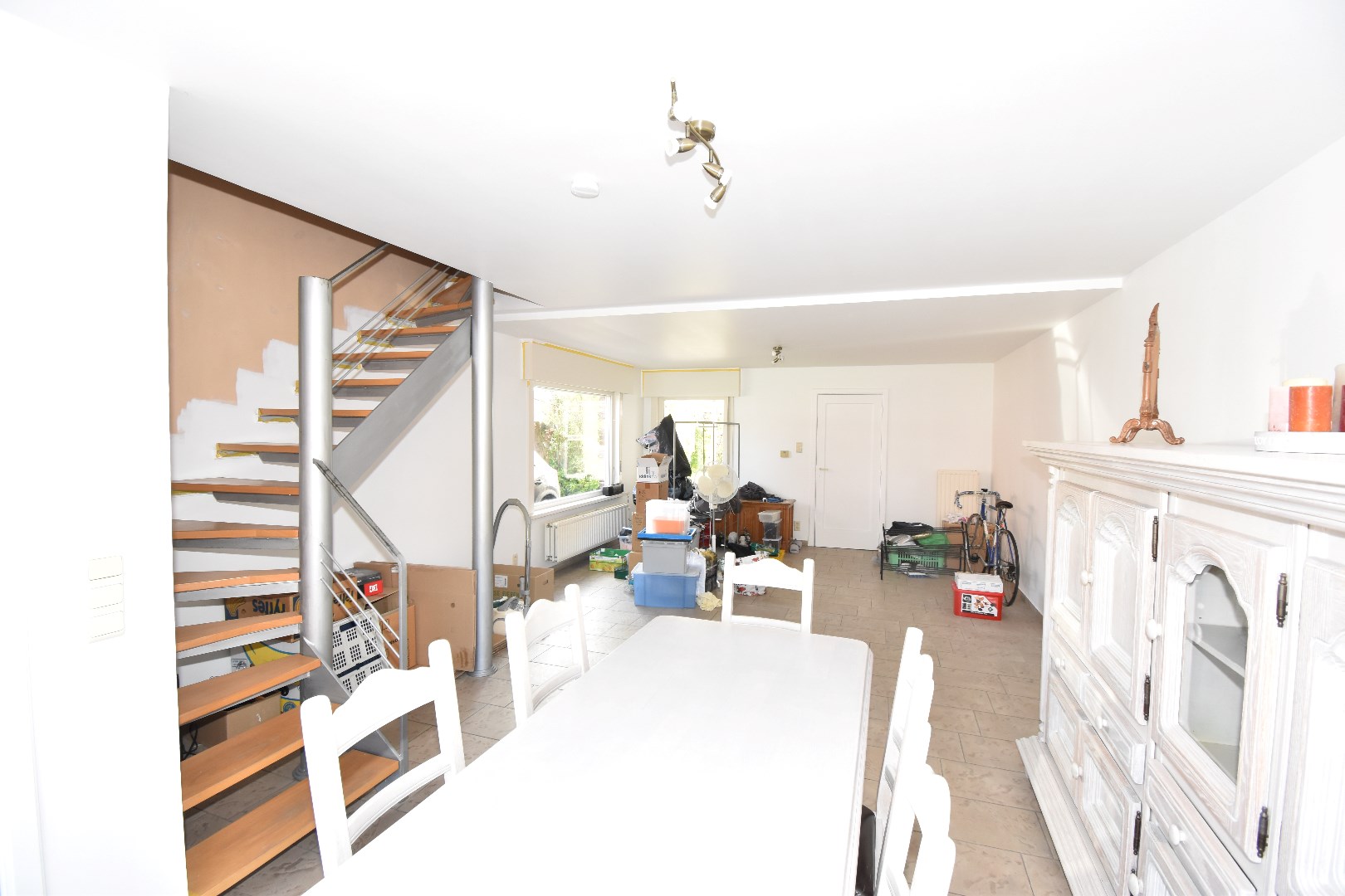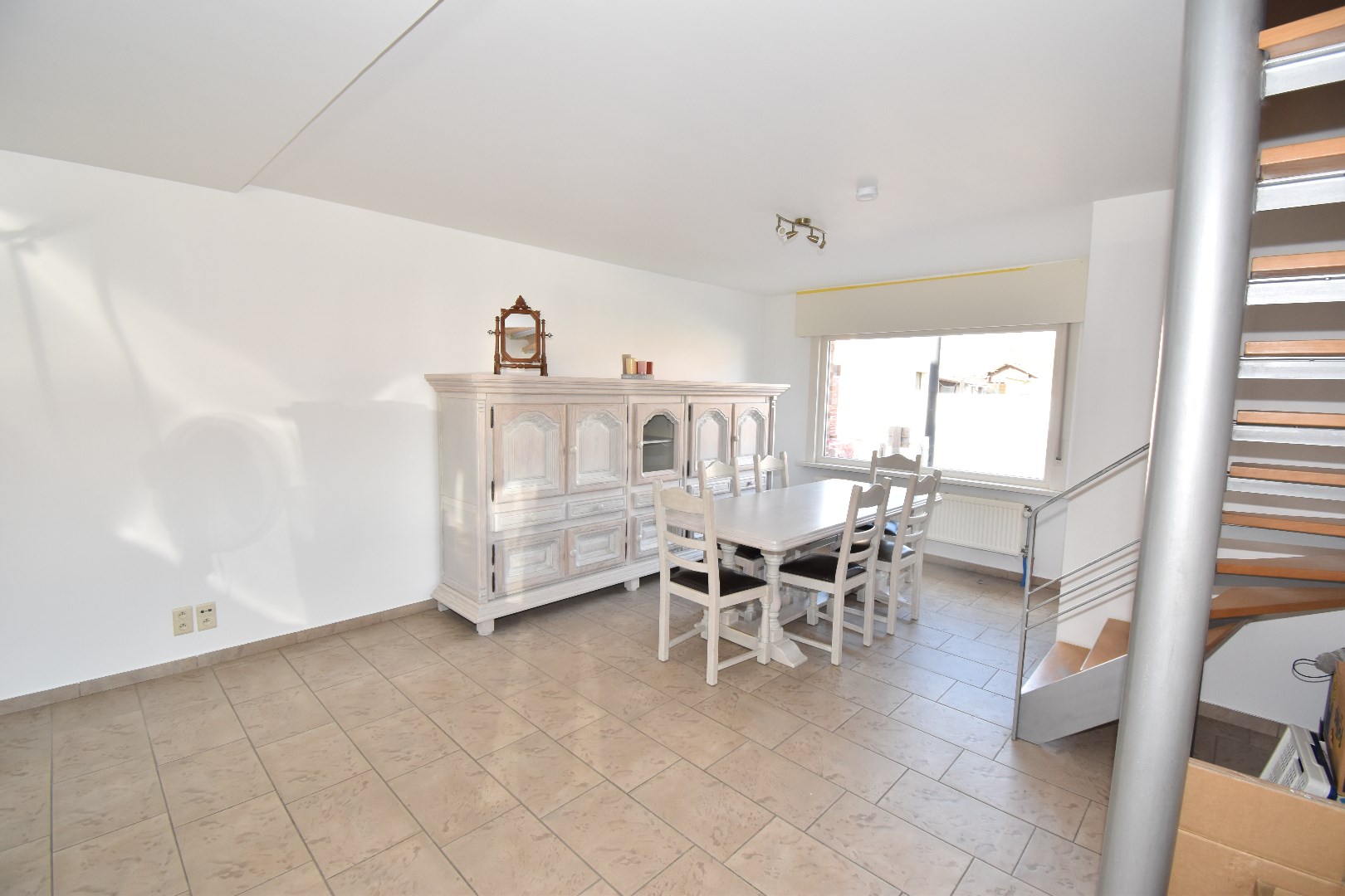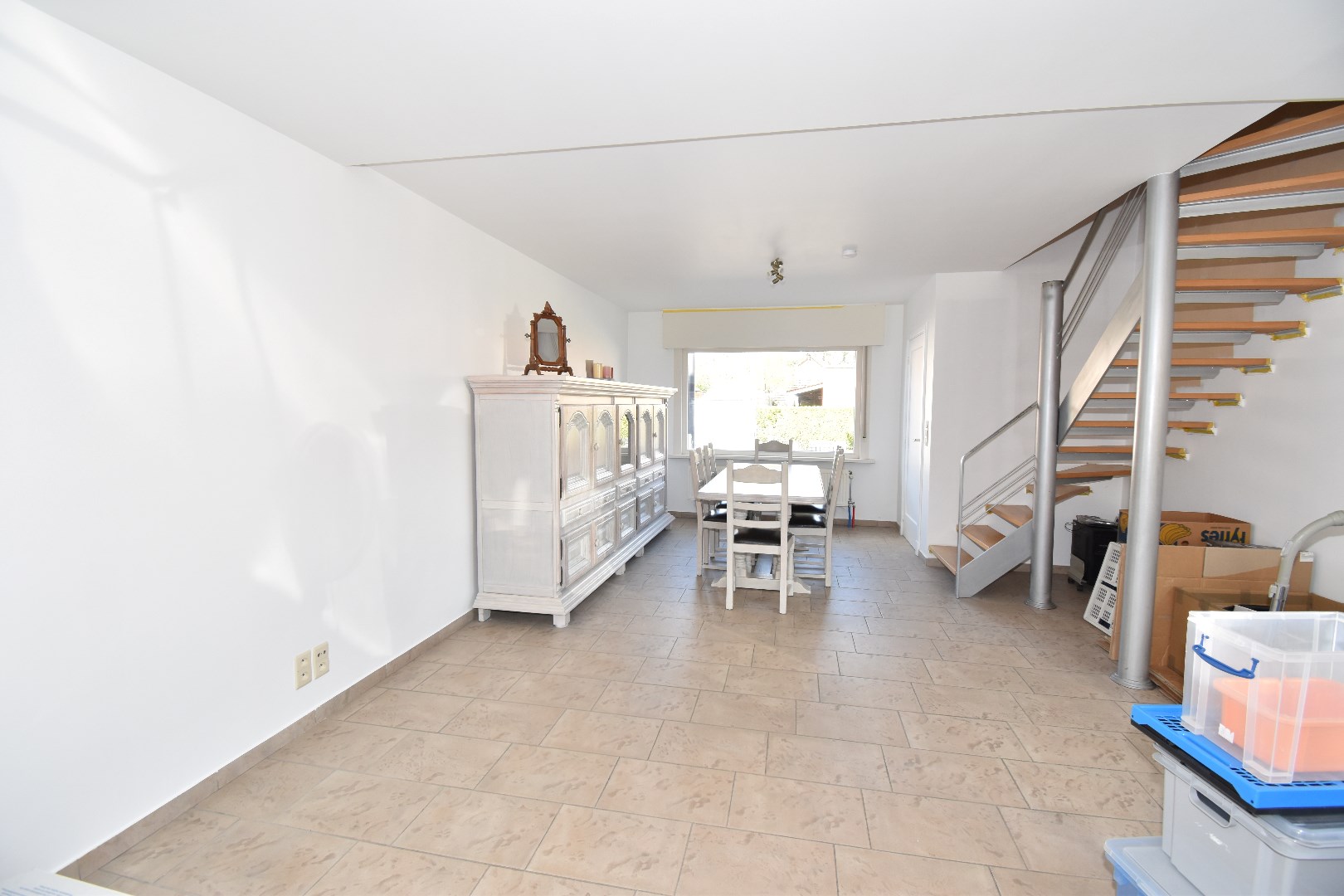 Indeling: inkom, living,&salon, keuken, badkamer (met douche en lavabo), toilet