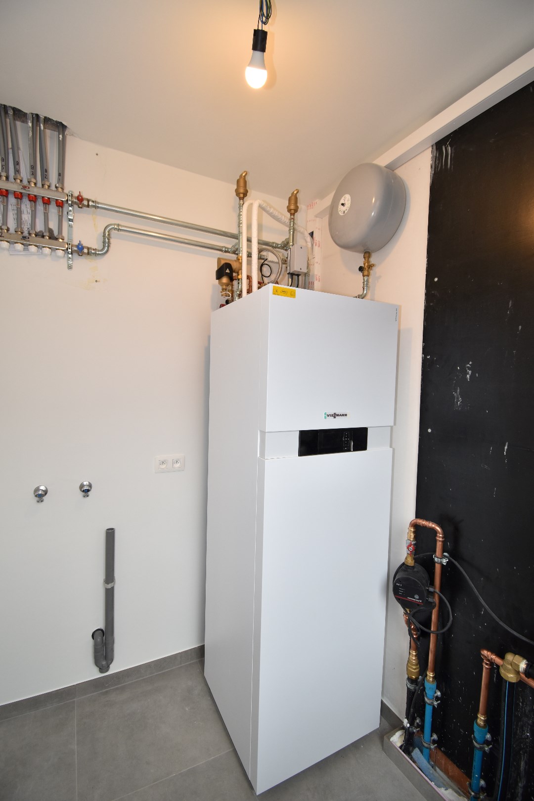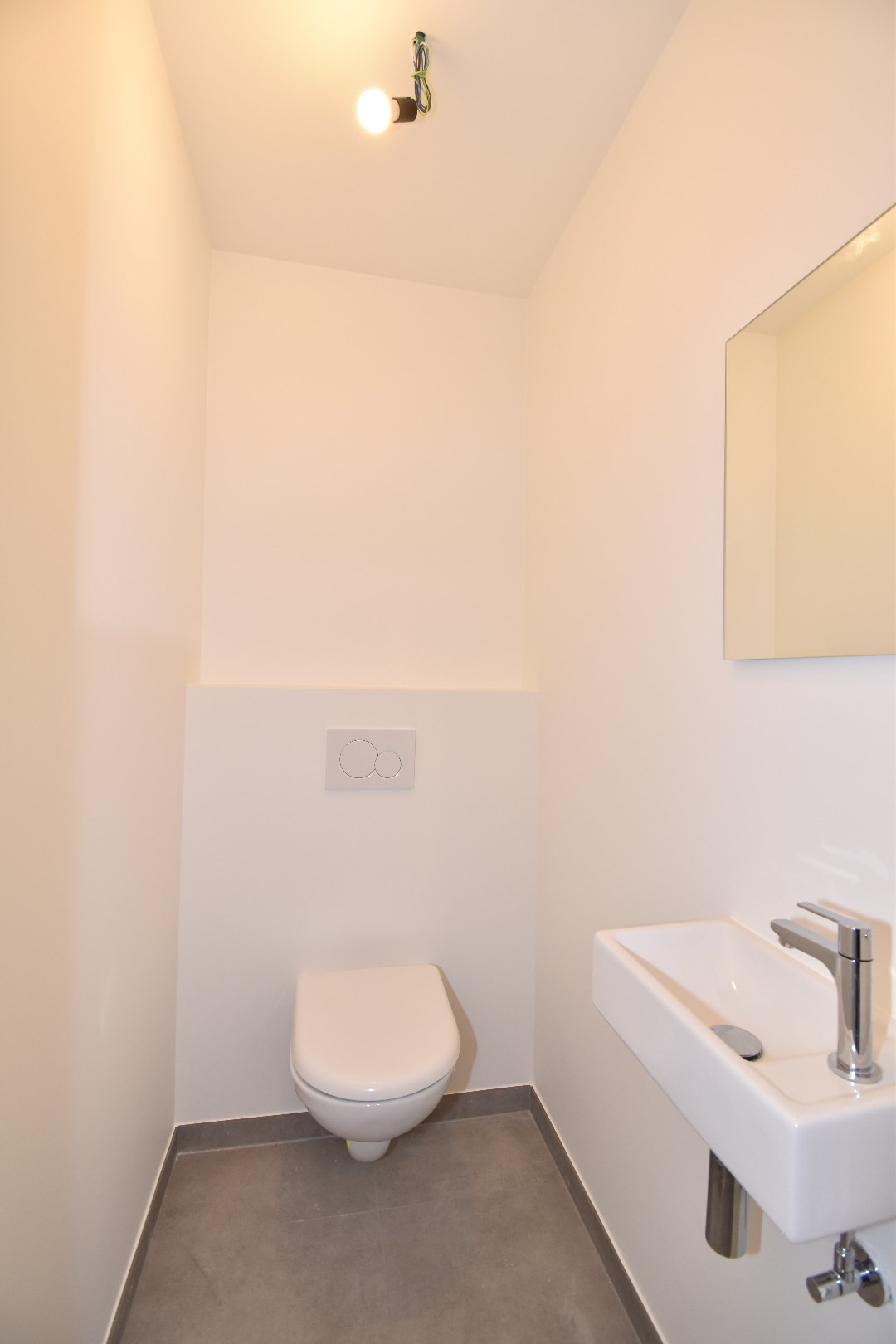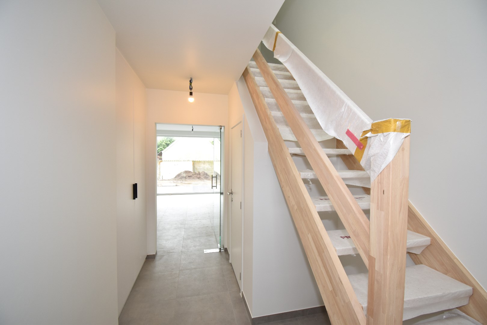 Indeling beneden: Inkom/traphal met vestiaire, gasten toilet, living/salon met halfopen maar volledig ingerichte keuken, berging/wasruimte/stookplaats.
