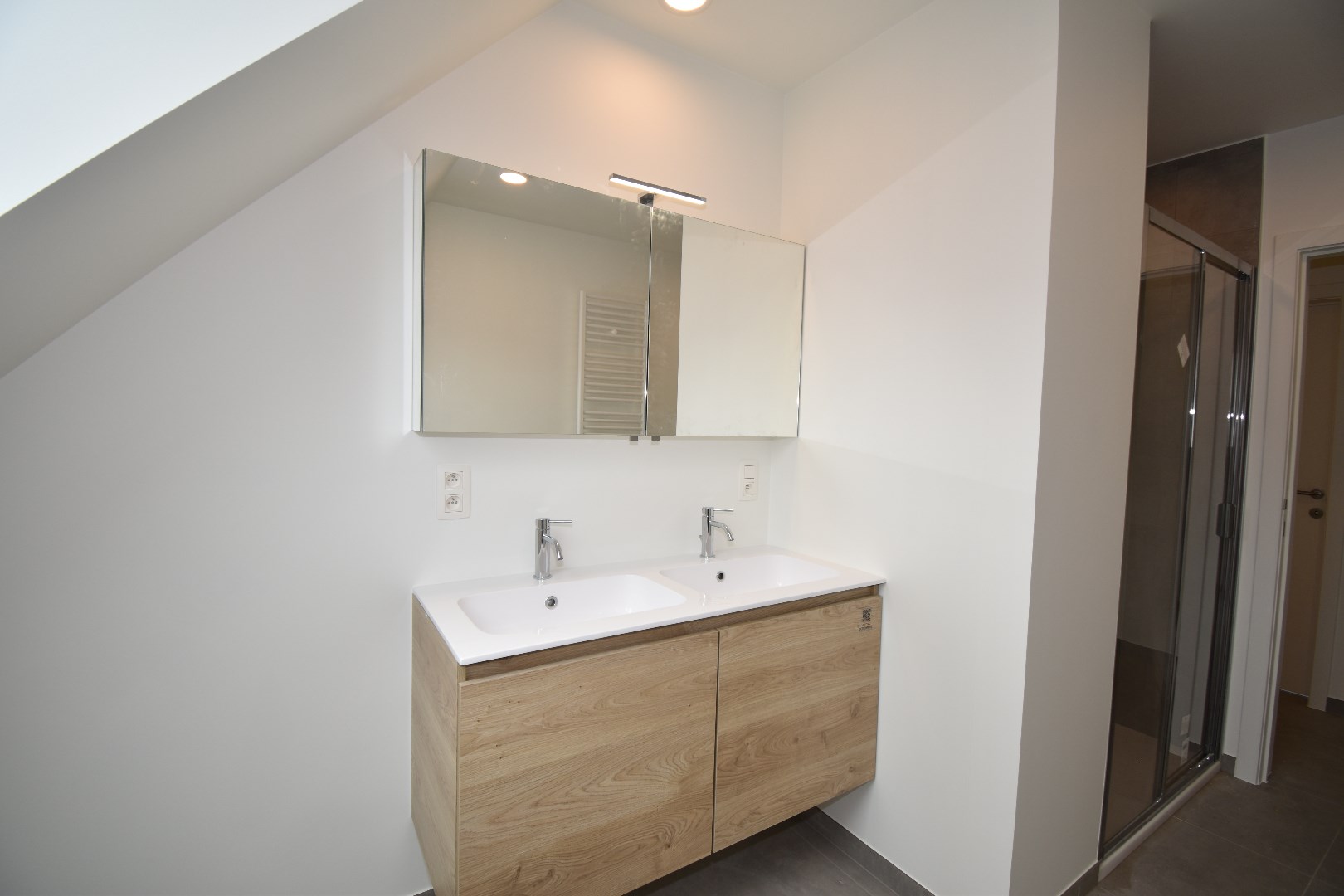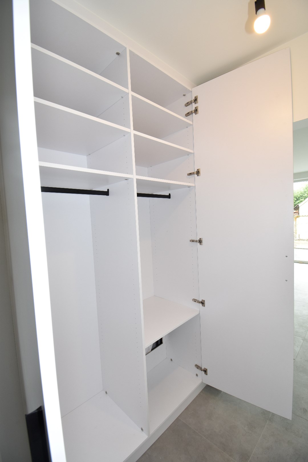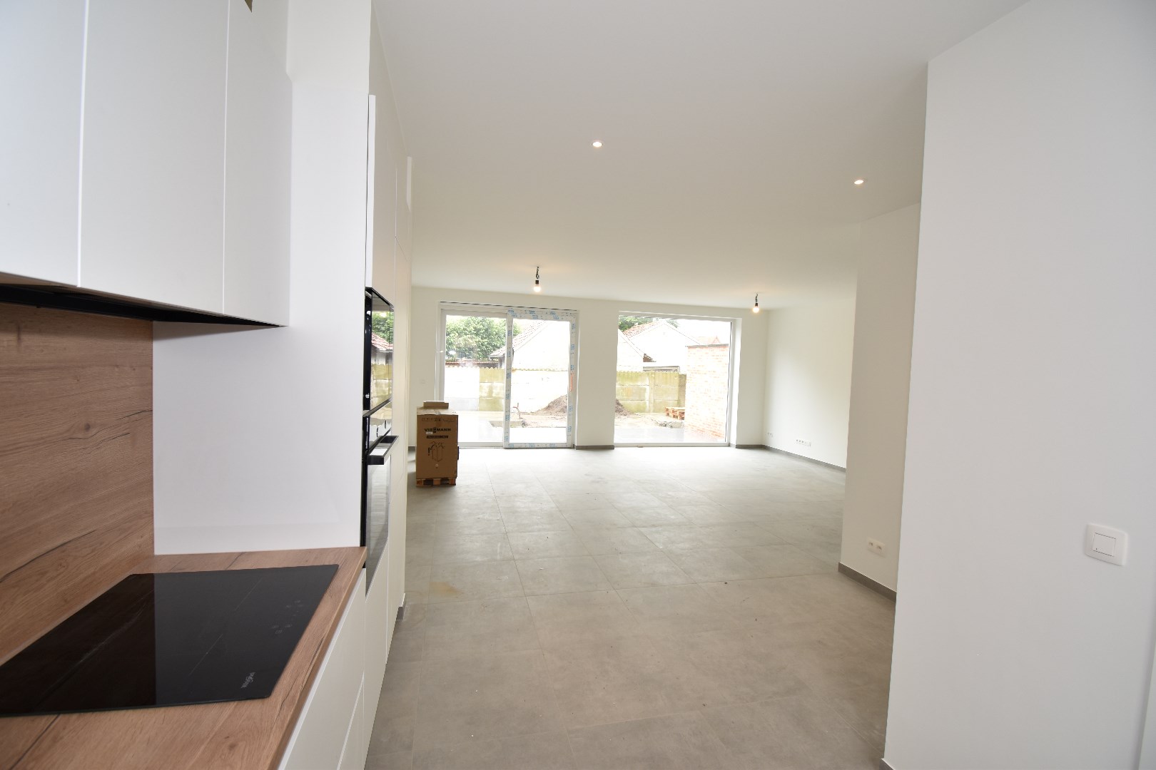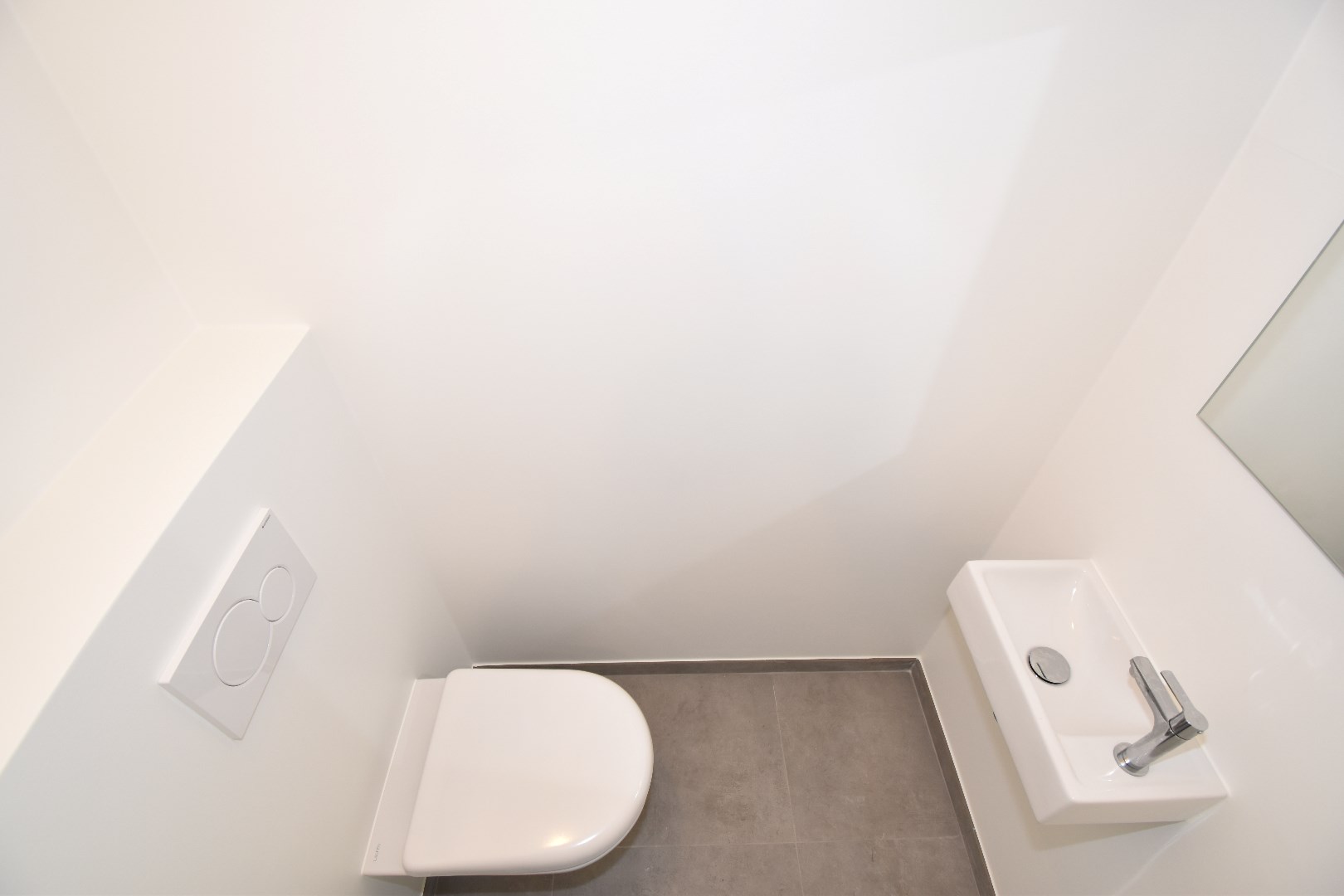 Indeling beneden: Inkom/traphal met vestiaire, gasten toilet, living/salon met halfopen maar volledig ingerichte keuken, berging/wasruimte/stookplaats.
