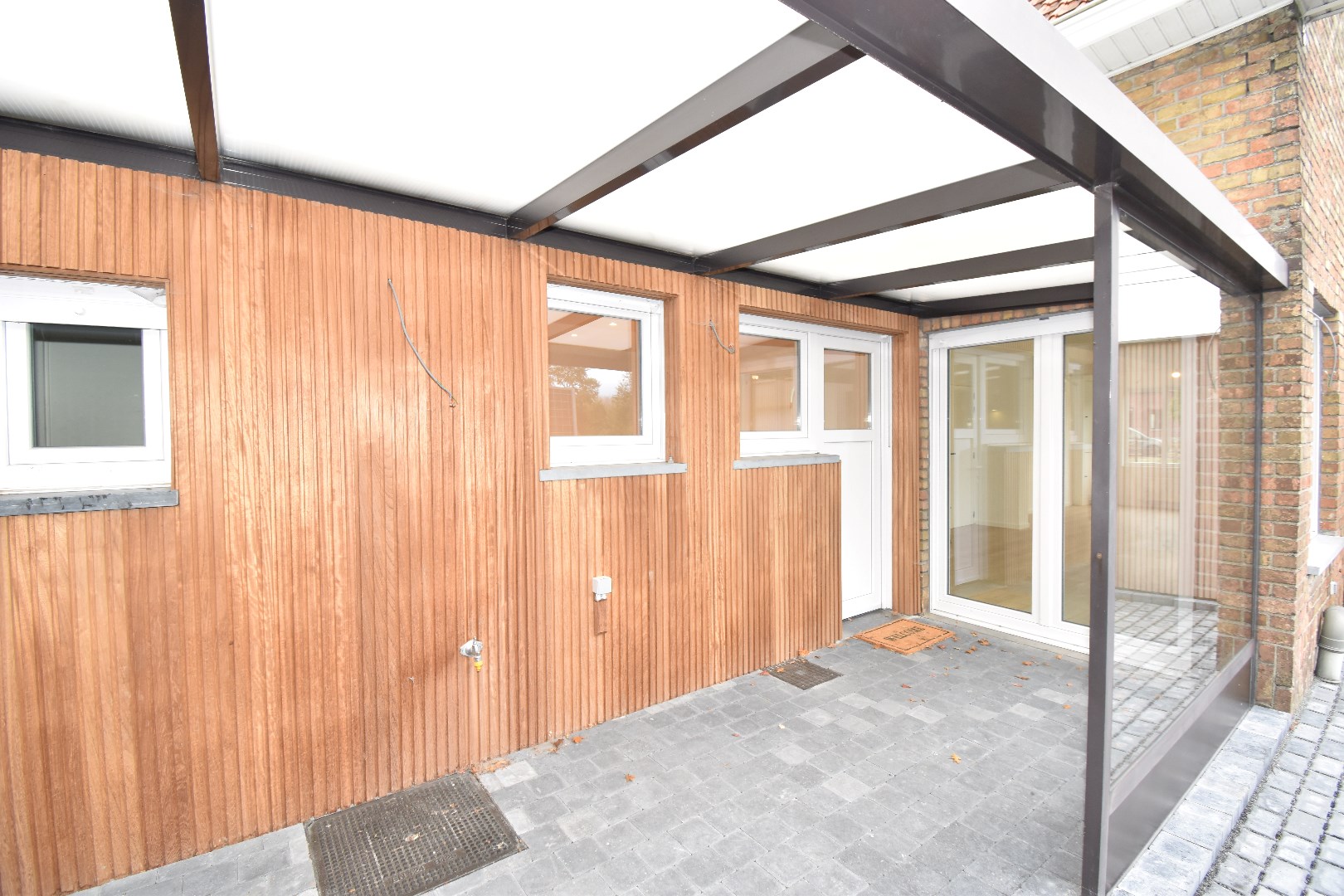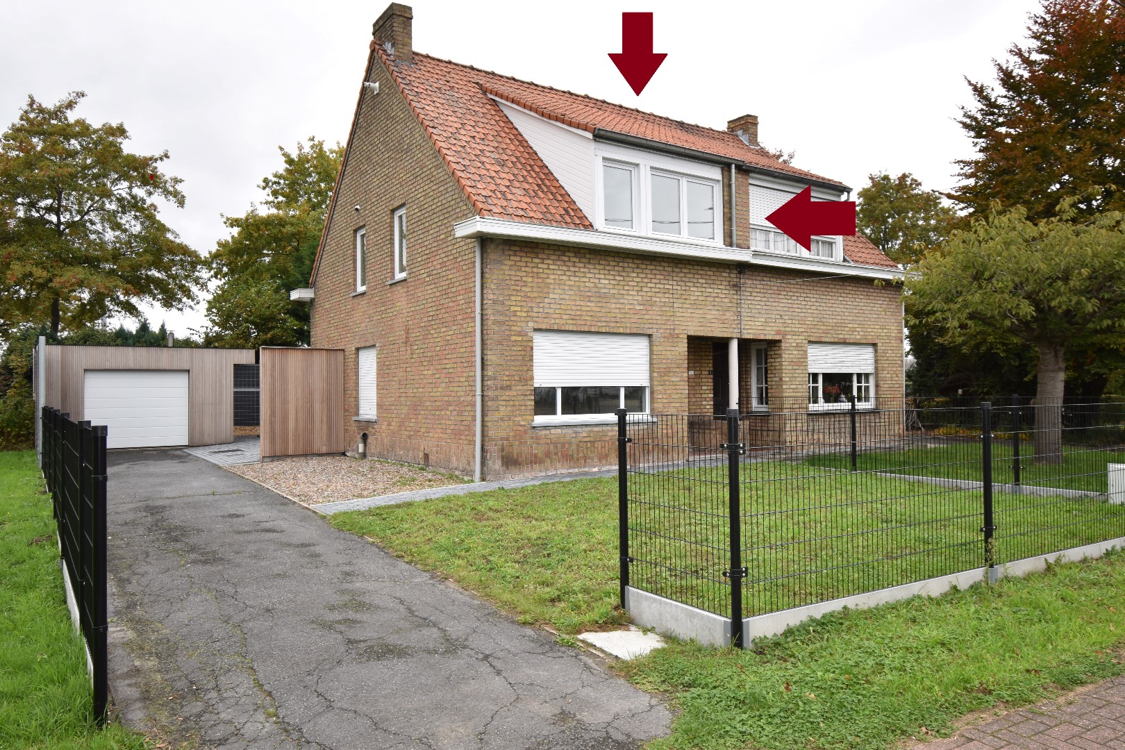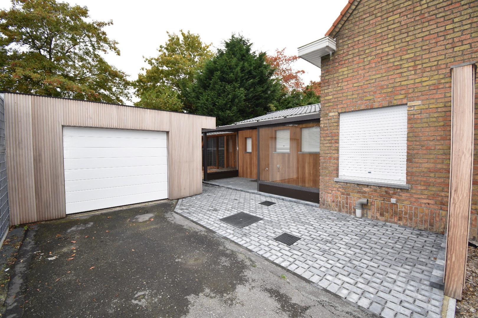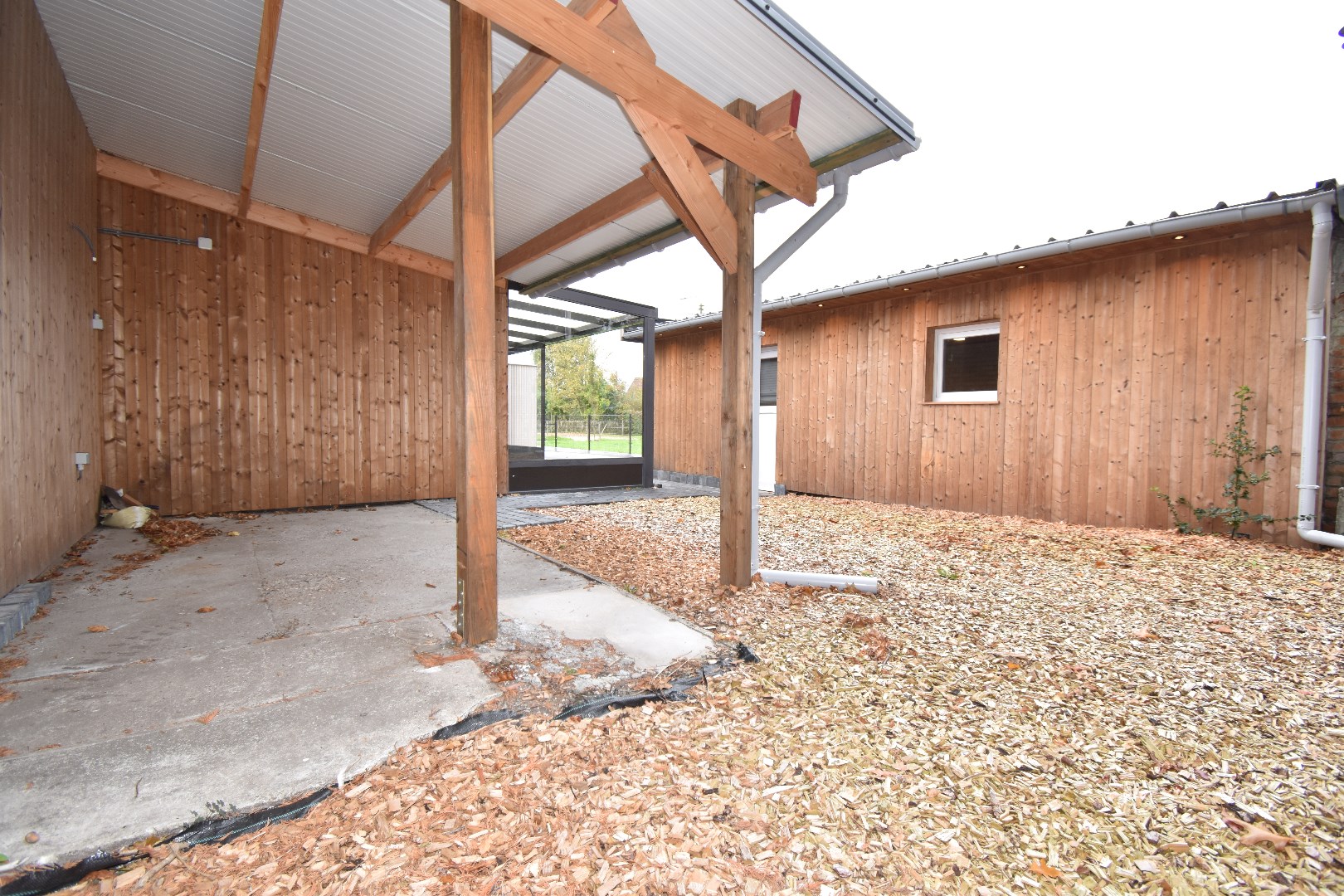 Aansluitend op de keuken is er de halfopen veranda en achteraan een groot overdekt terras waar het door de geluidsschermen zalig vertoeven is. Op de oprit is plaats voor verschillende wagens en op het dak van de heel ruime garage liggen zonnepanelen die uw energieverbruik betaalbaar houden.