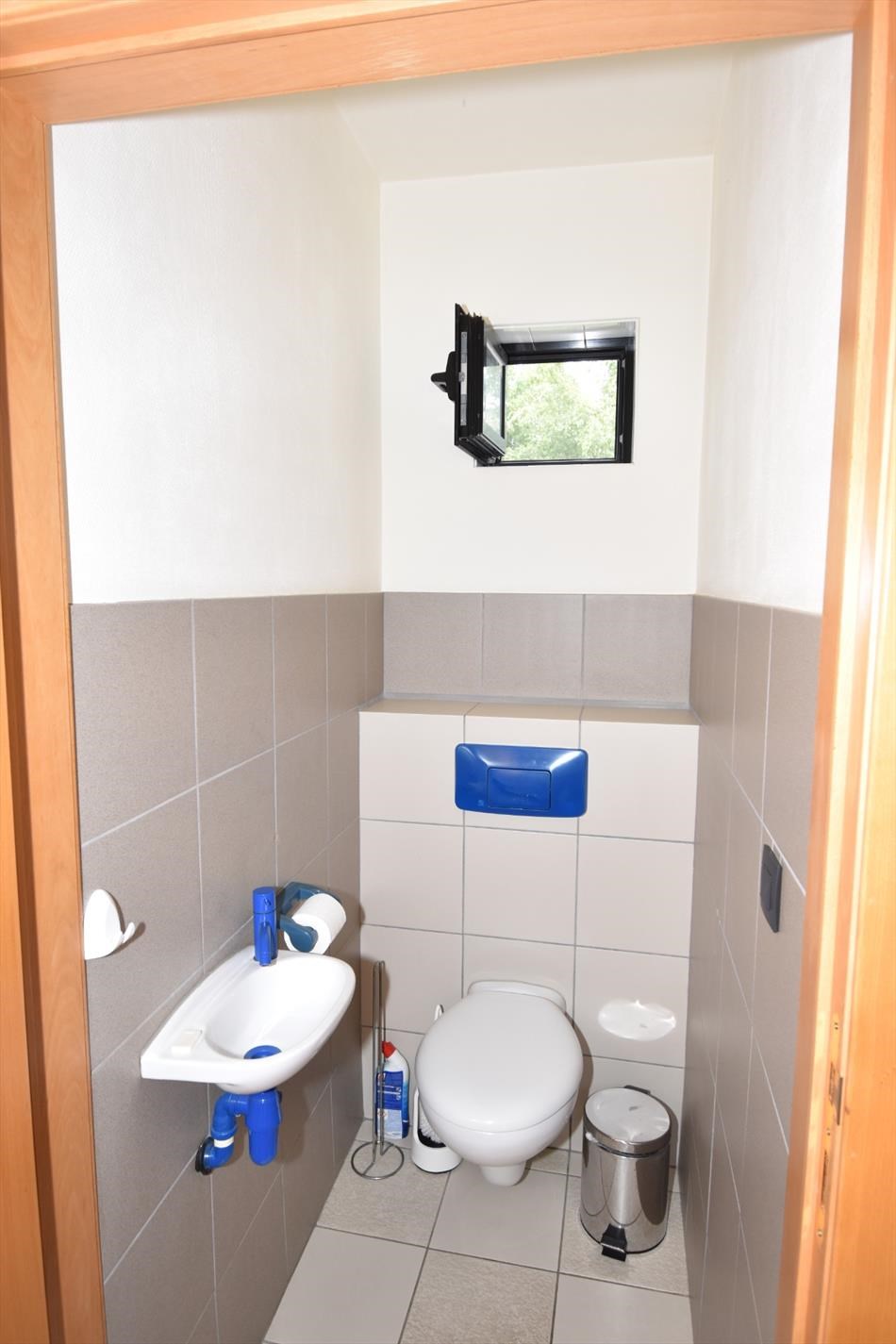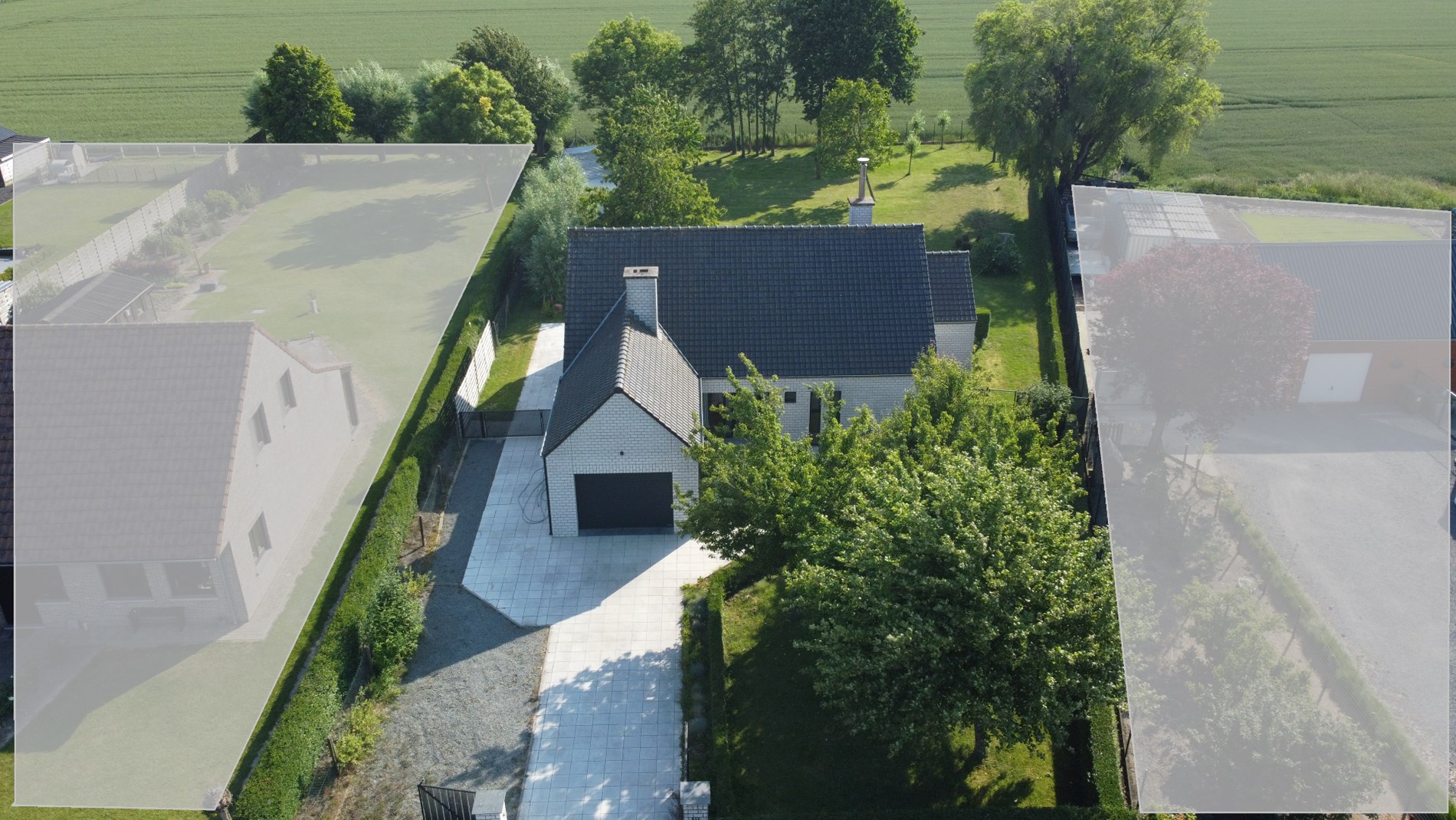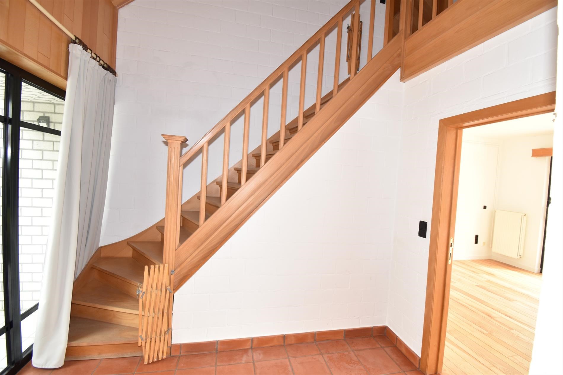 Indeling; op het gelijkvloers heeft men de inkom met gastentoilet, living en salon met aanpalend terras, ingerichte keuken, bureau/slaapkamer, badkamer met ligbad, douche, dubbele lavabo en toilet, berging en garage. Boven is er de nachthal met toegang tot de 3 slaapkamers en zolderruimte.