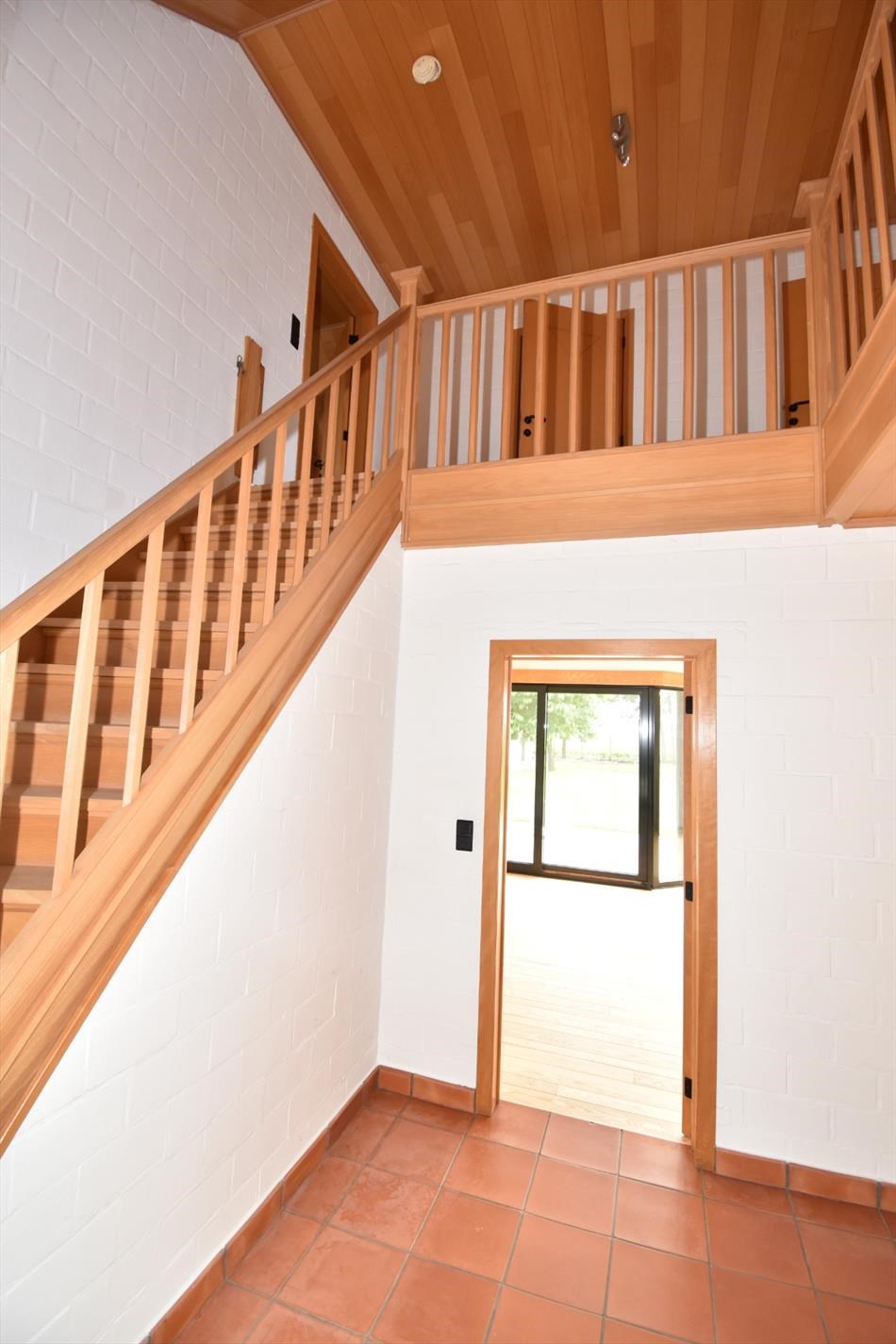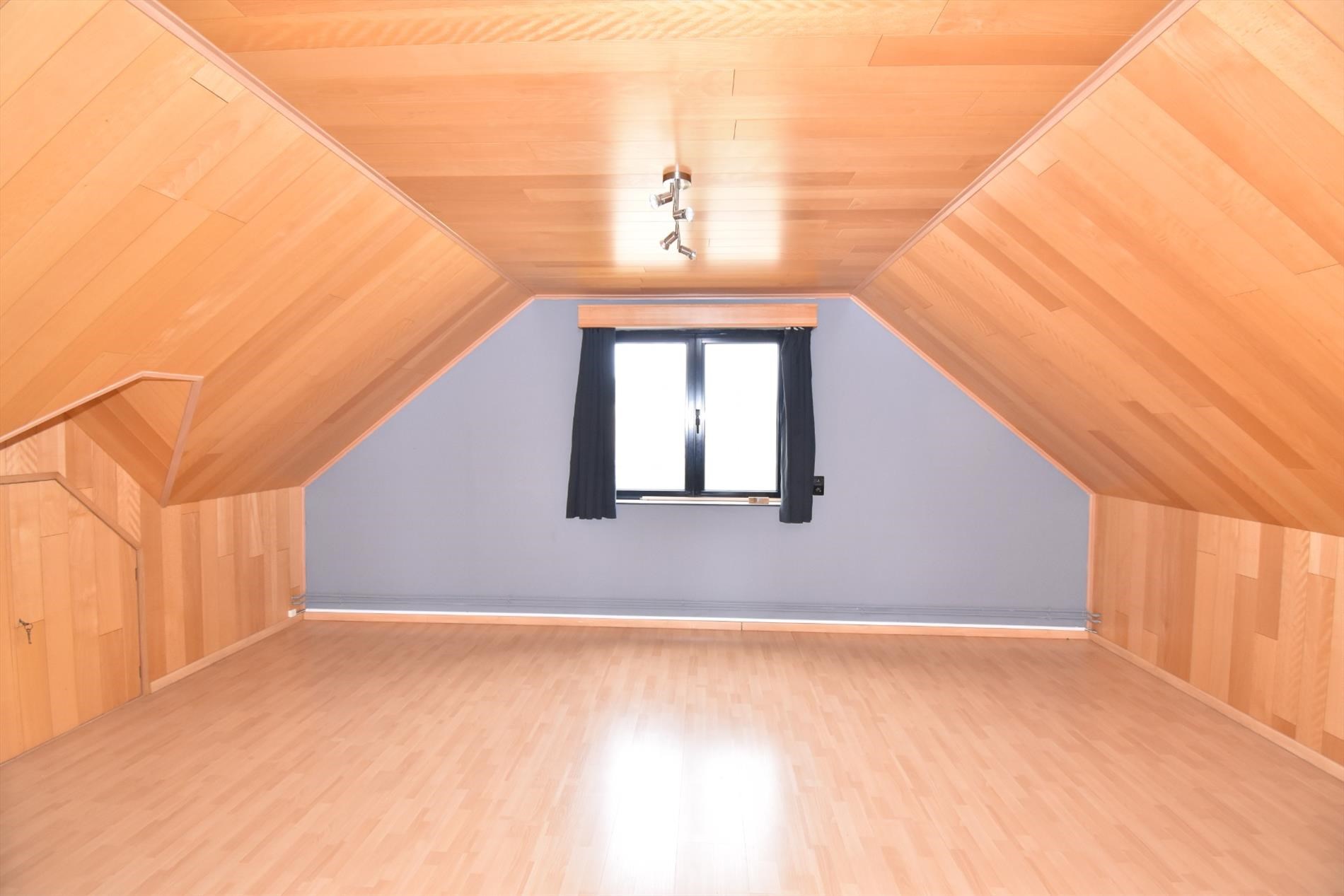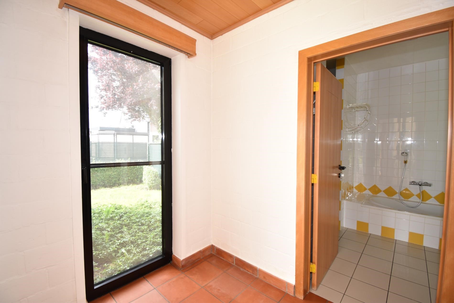 Indeling; op het gelijkvloers heeft men de inkom met gastentoilet, living en salon met aanpalend terras, ingerichte keuken, bureau/slaapkamer, badkamer met ligbad, douche, dubbele lavabo en toilet, berging en garage. Boven is er de nachthal met toegang tot de 3 slaapkamers en zolderruimte.