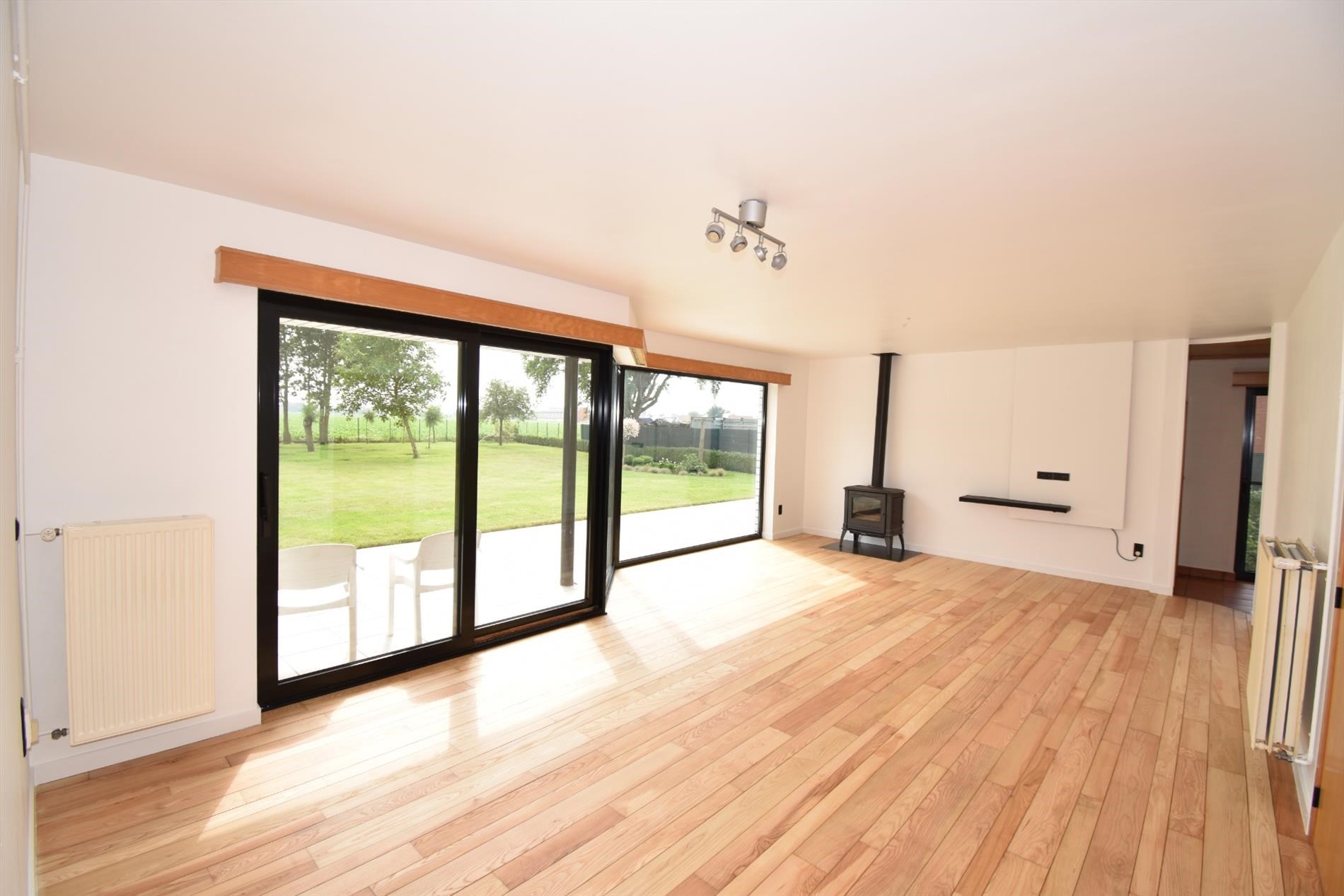 In de living werd gebruik gemaakt van massief parket en is er een houtkachel voor wie wil bijverwarmen.