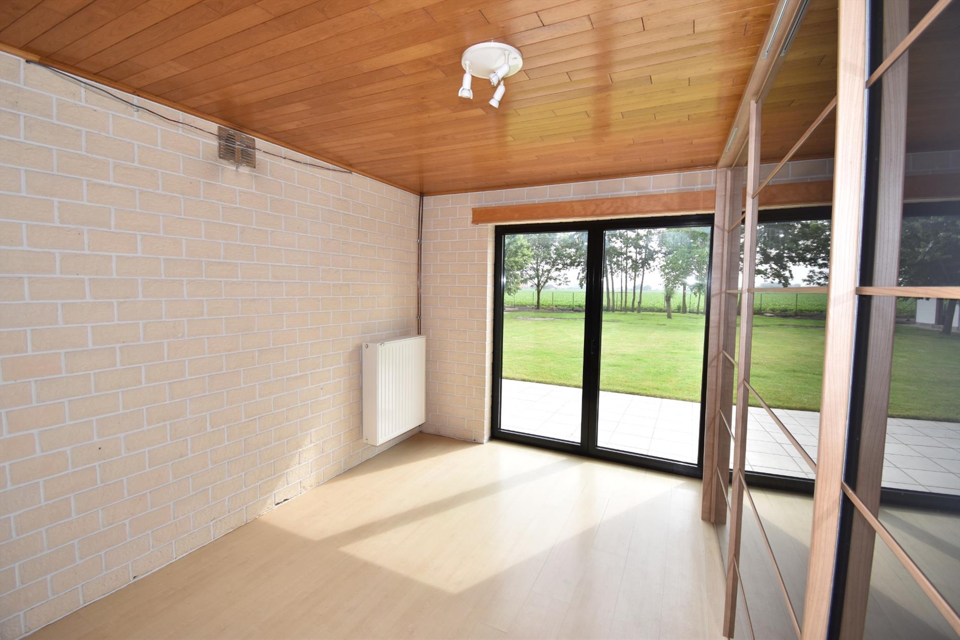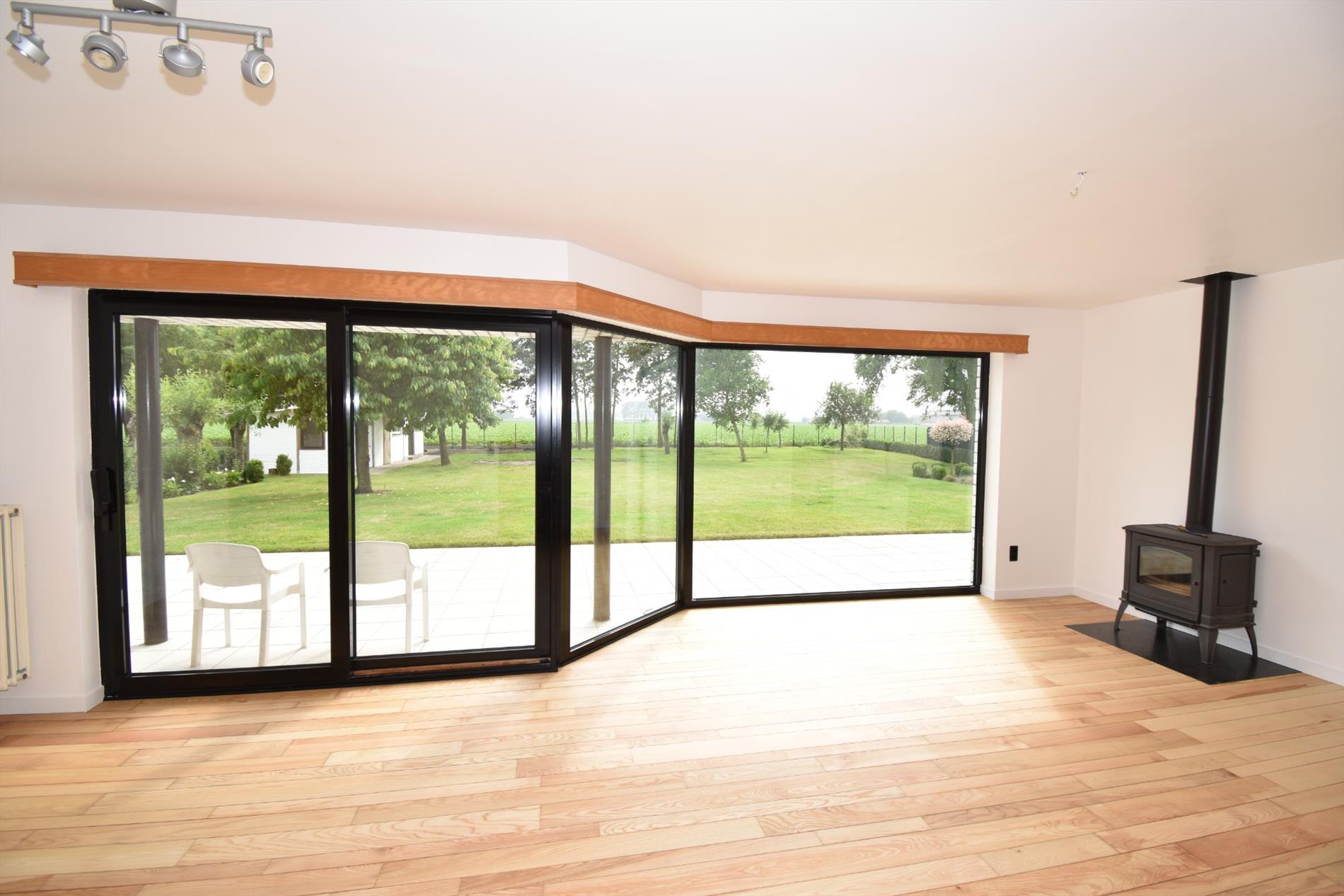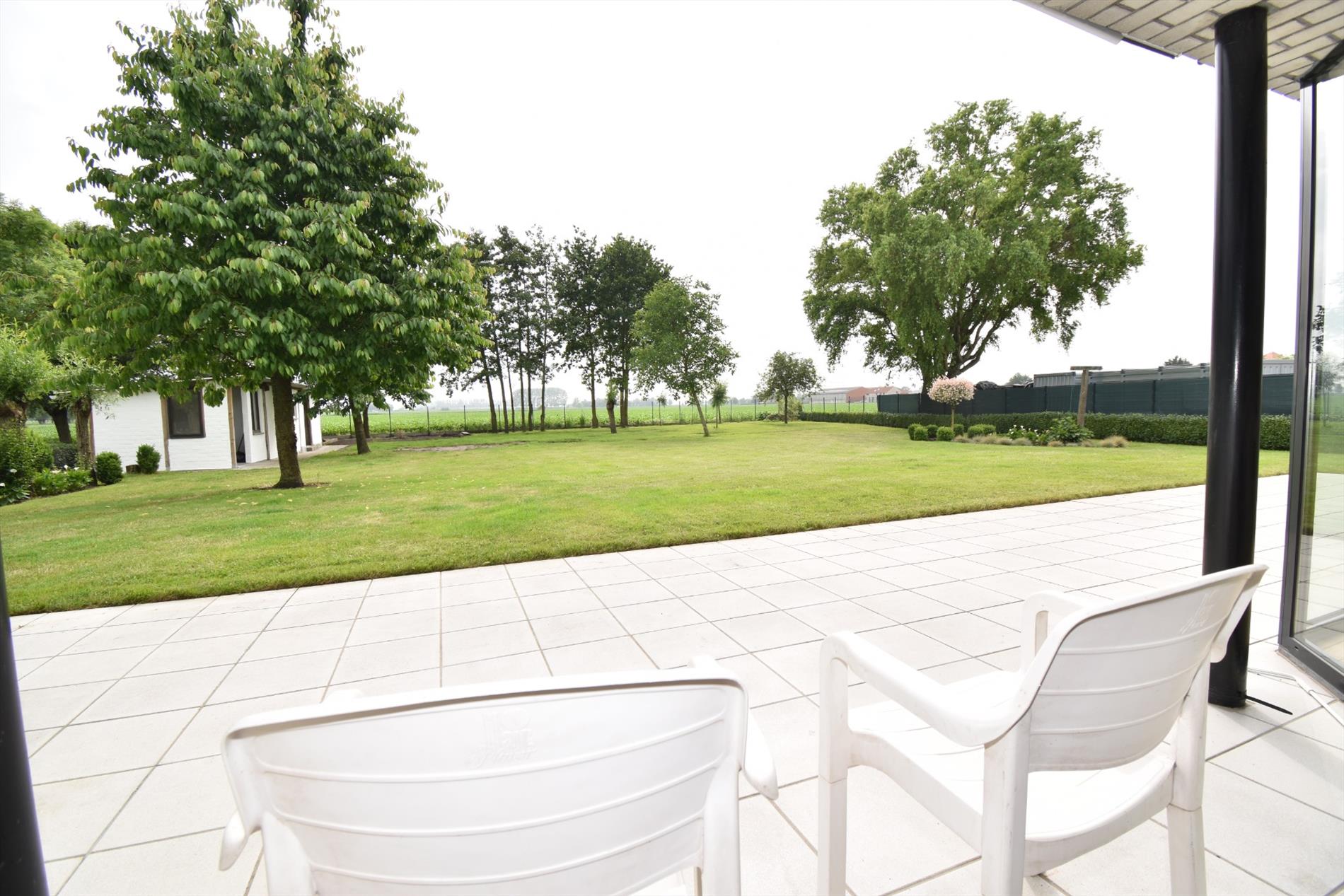 Vanuit de grote tuin en vanop het terras kan je genieten van de bijna eindeloze vergezichten over de velden.