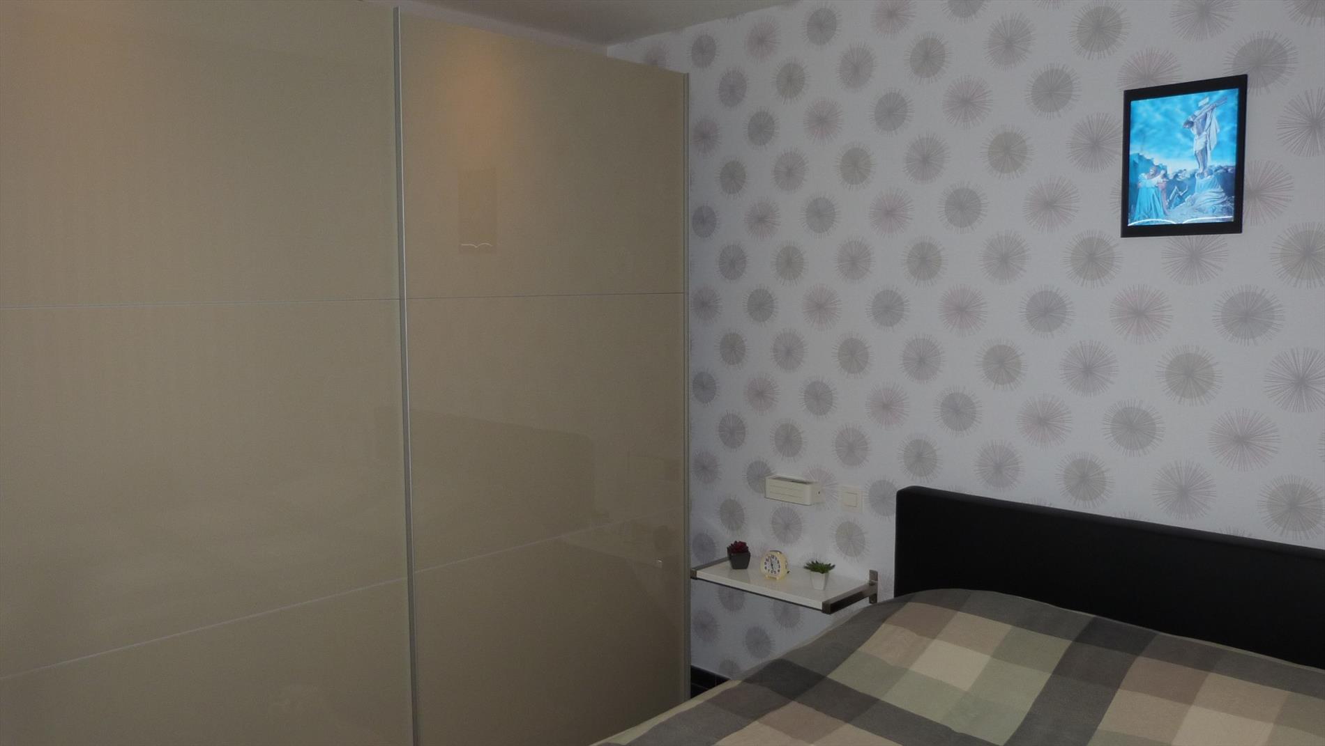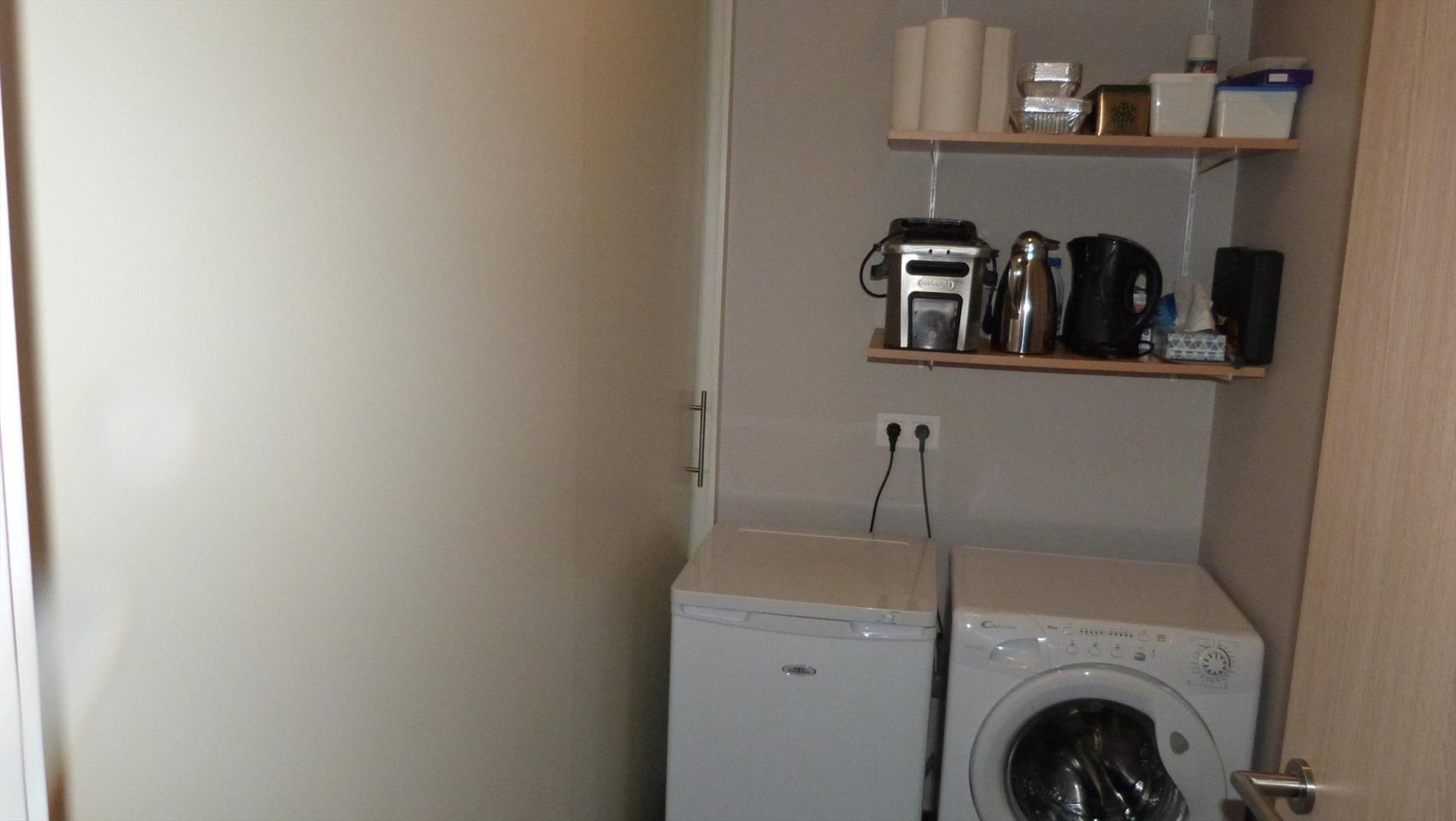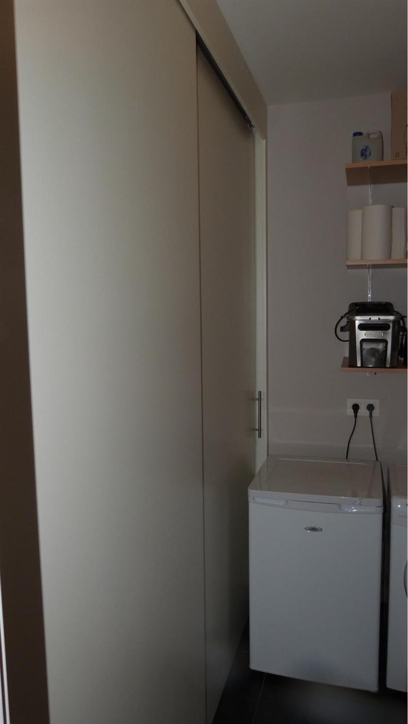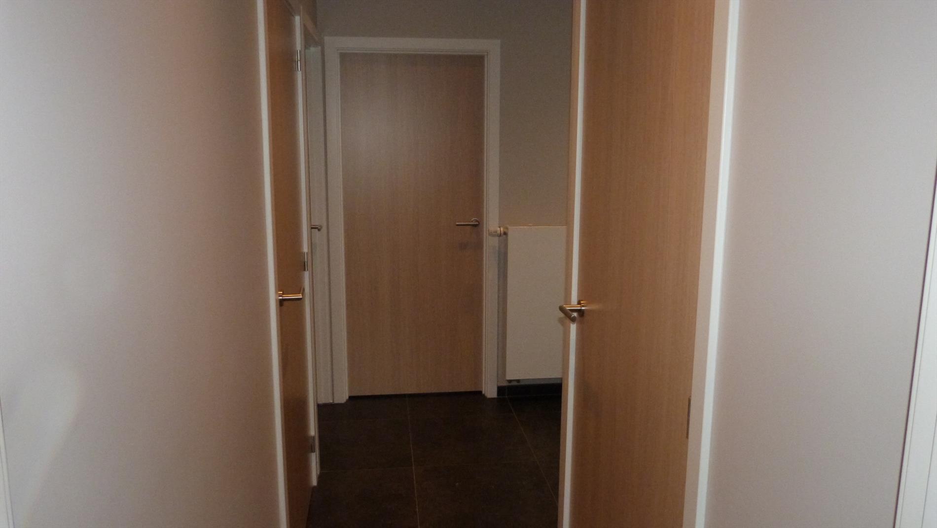 indeling: inkom, apart toilet, living met open keuken, berging/cv ruimte, 2 slaapkamers, badkamer met inloopdouche en badkamermeubel met ingewerkte lavabo. In de living is er een schuifraam die toegang heeft tot het terras.