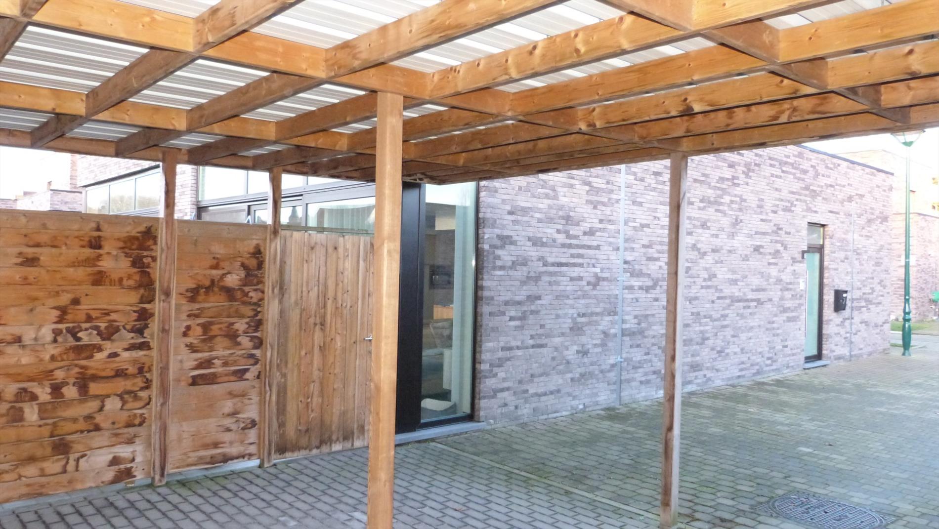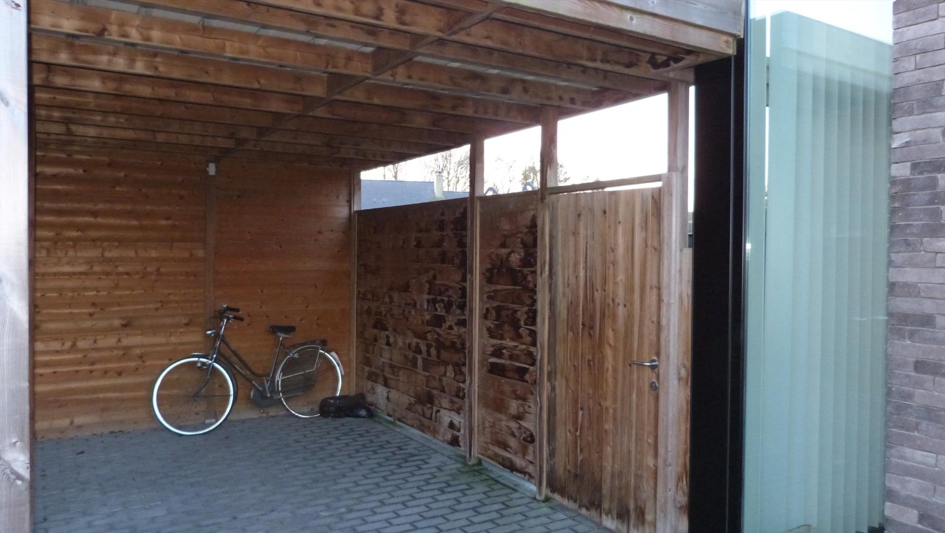 Het is een half-open woning, type bungalow met aanpalende carport en buitenberging.