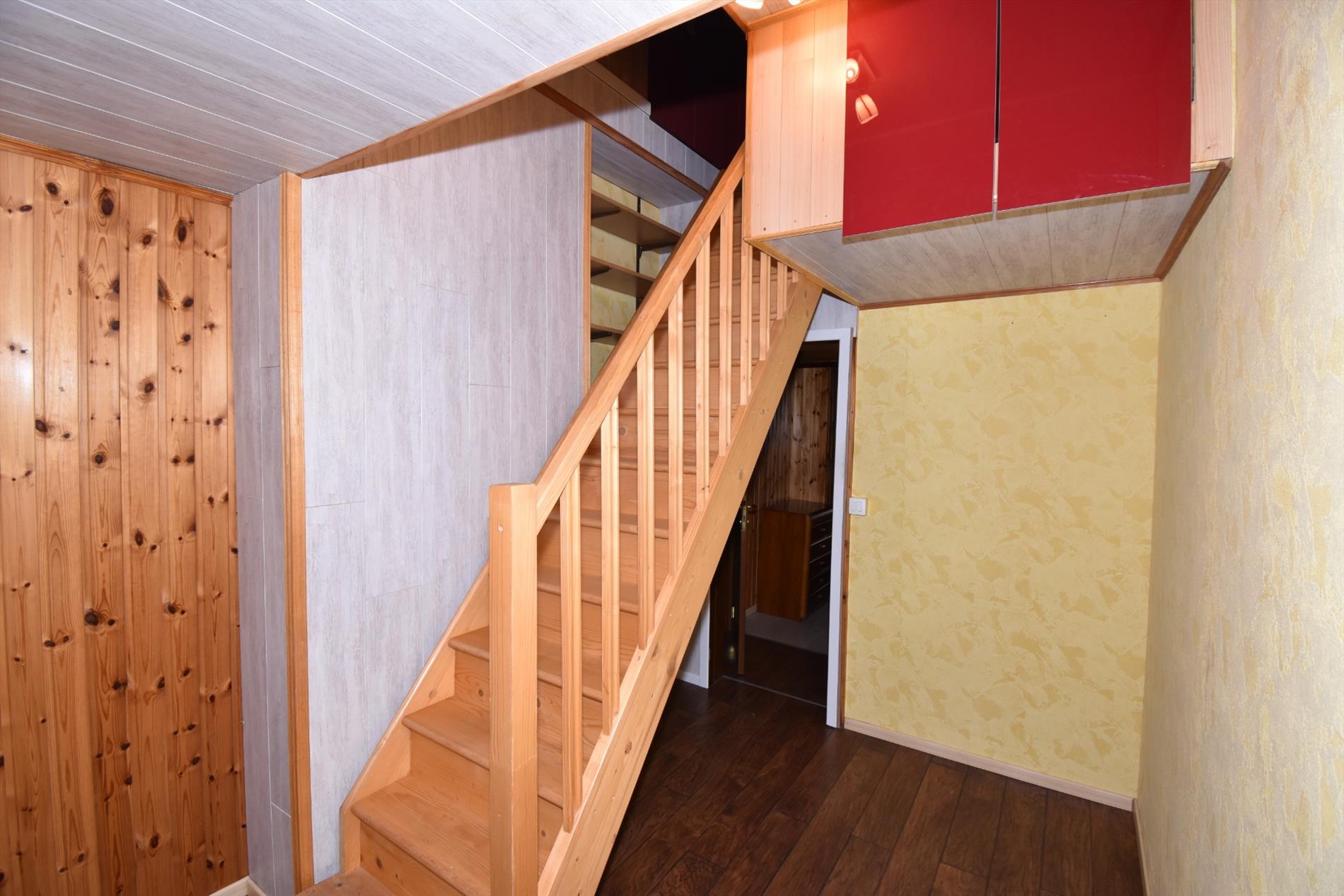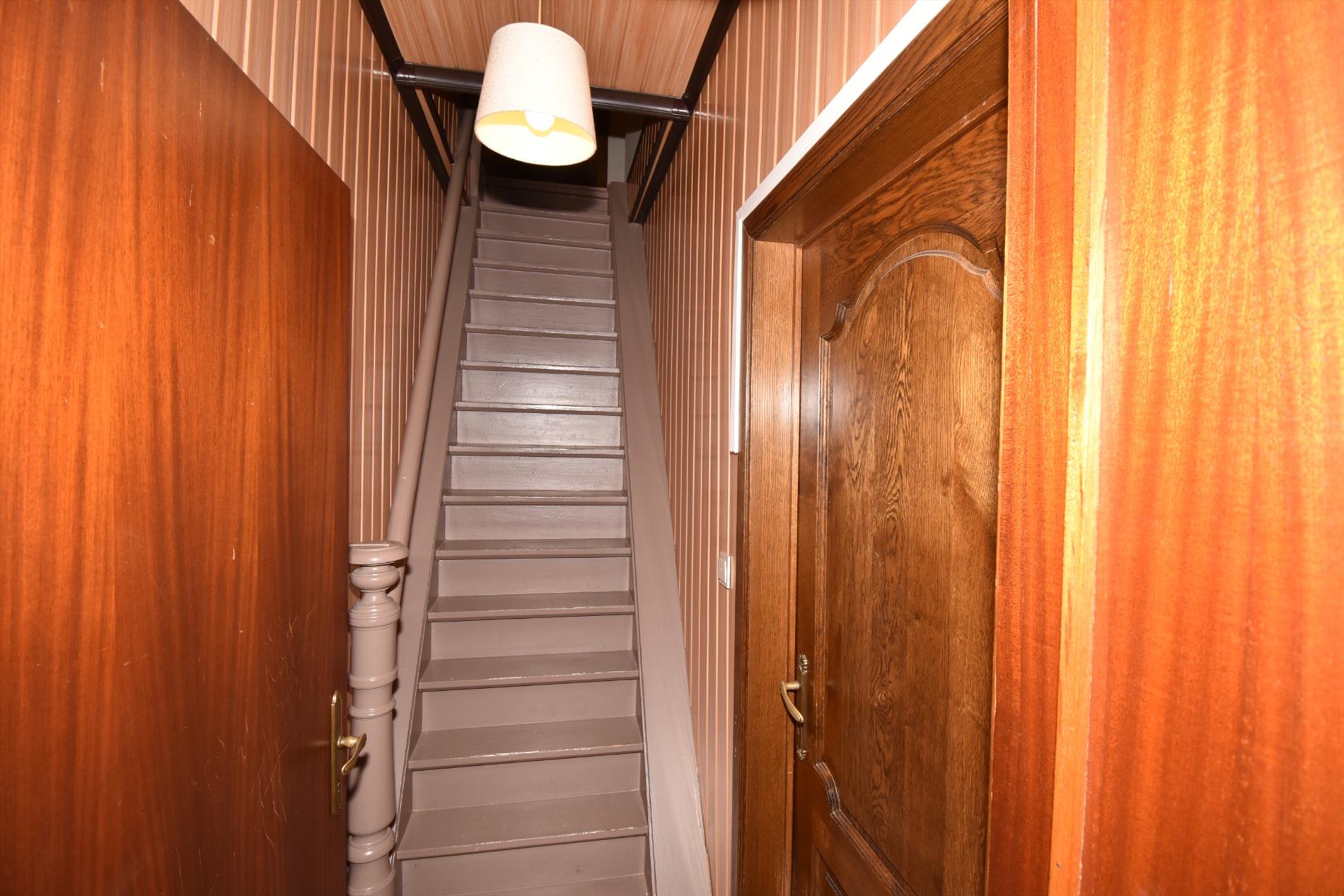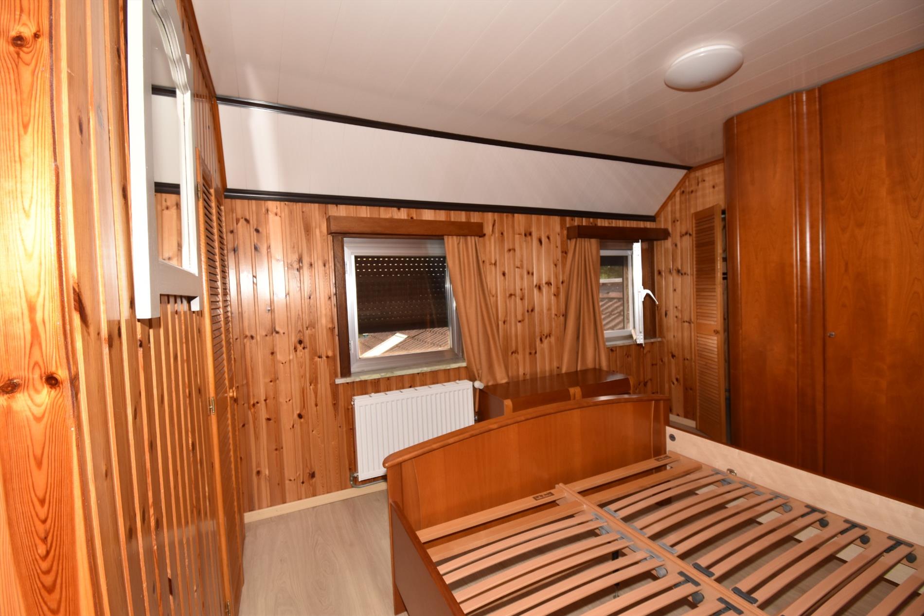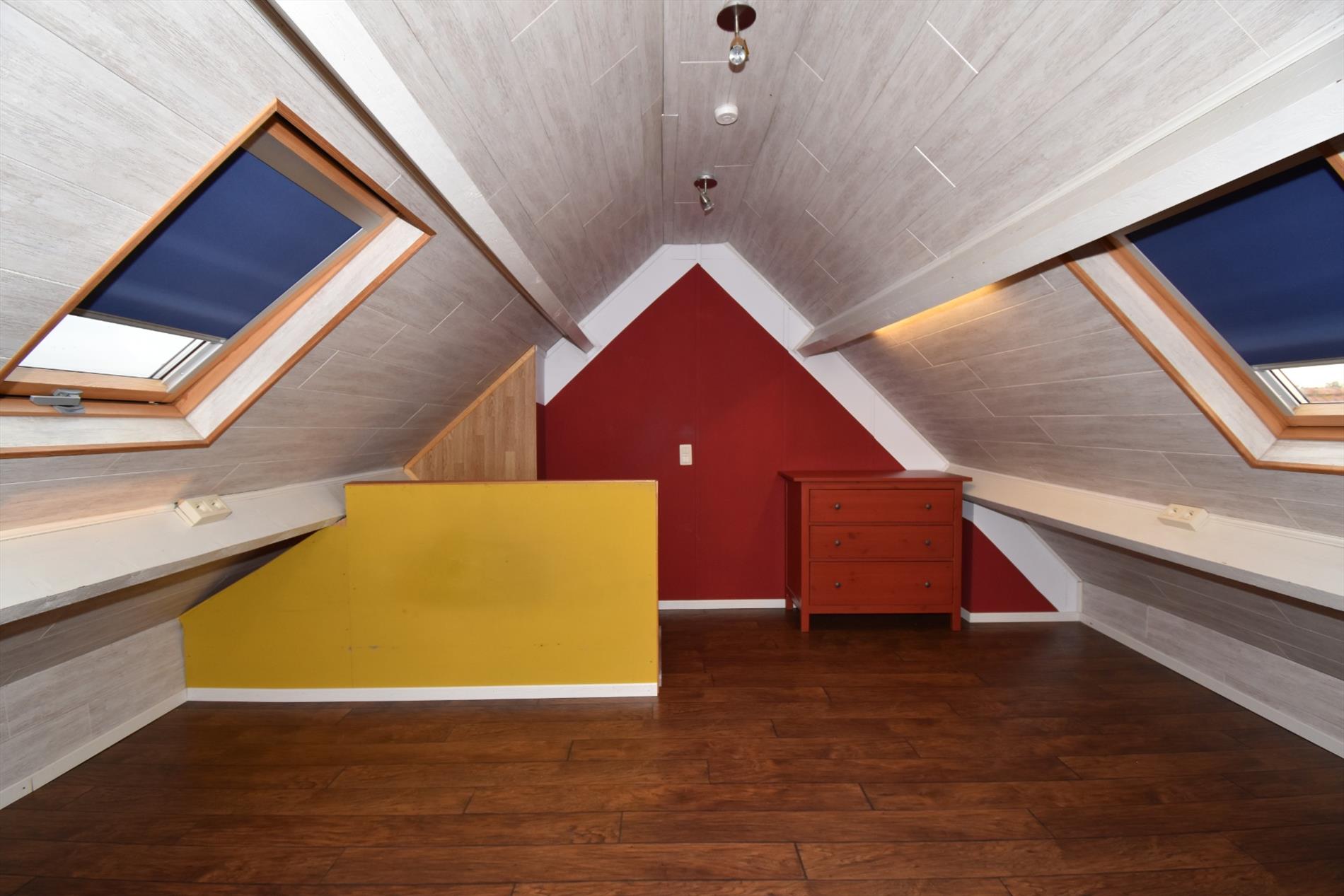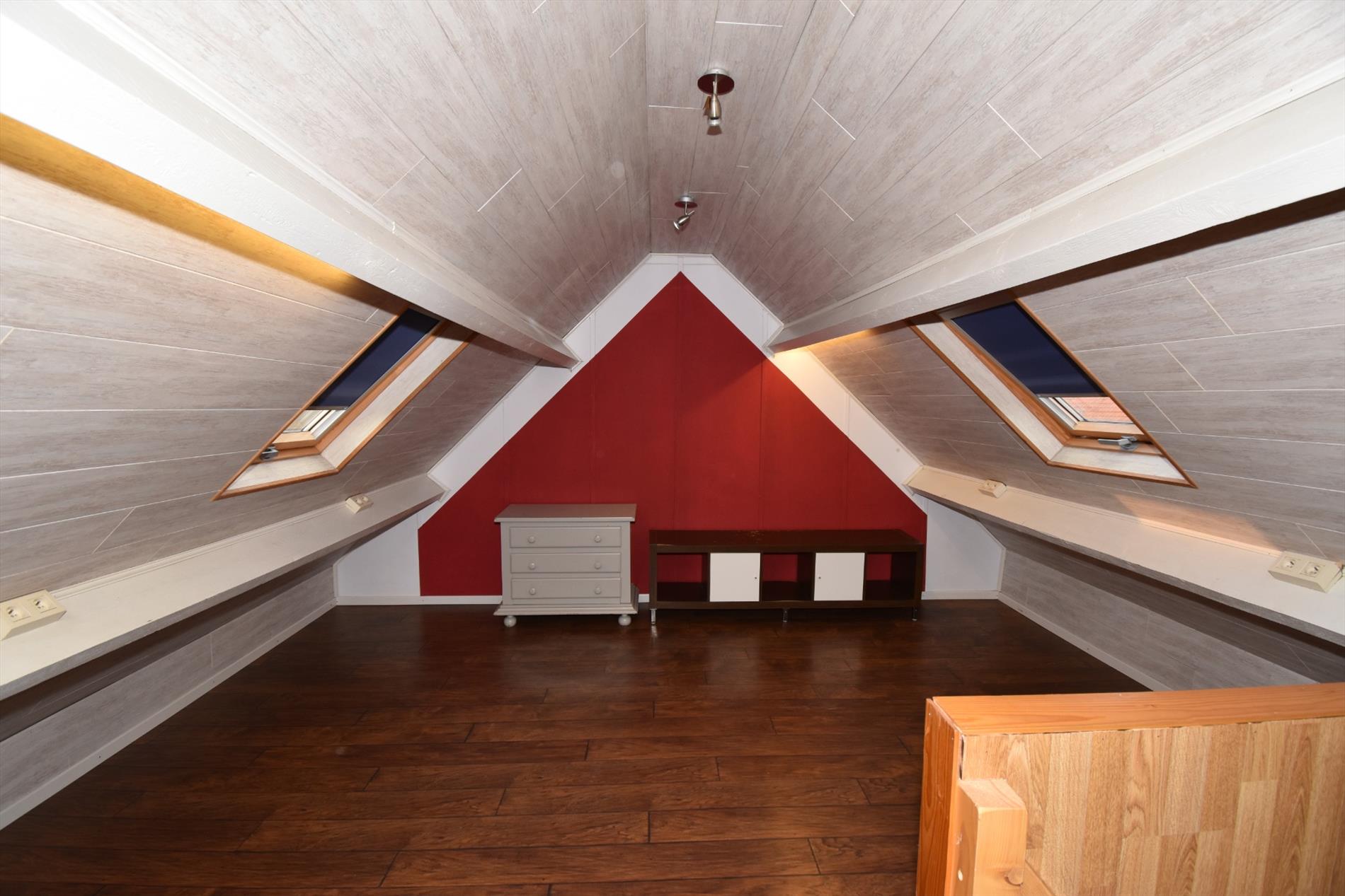 Op de eerste verdieping zijn er 2 volwaardige slaapkamers en een dressing die met een vaste trap toegang geeft tot de zolderverdieping die ook een volwaardige slaapkamer is. De dressing op zich is ruim genoeg om ook als slaapkamer of logeerkamer gebruikt te worden.