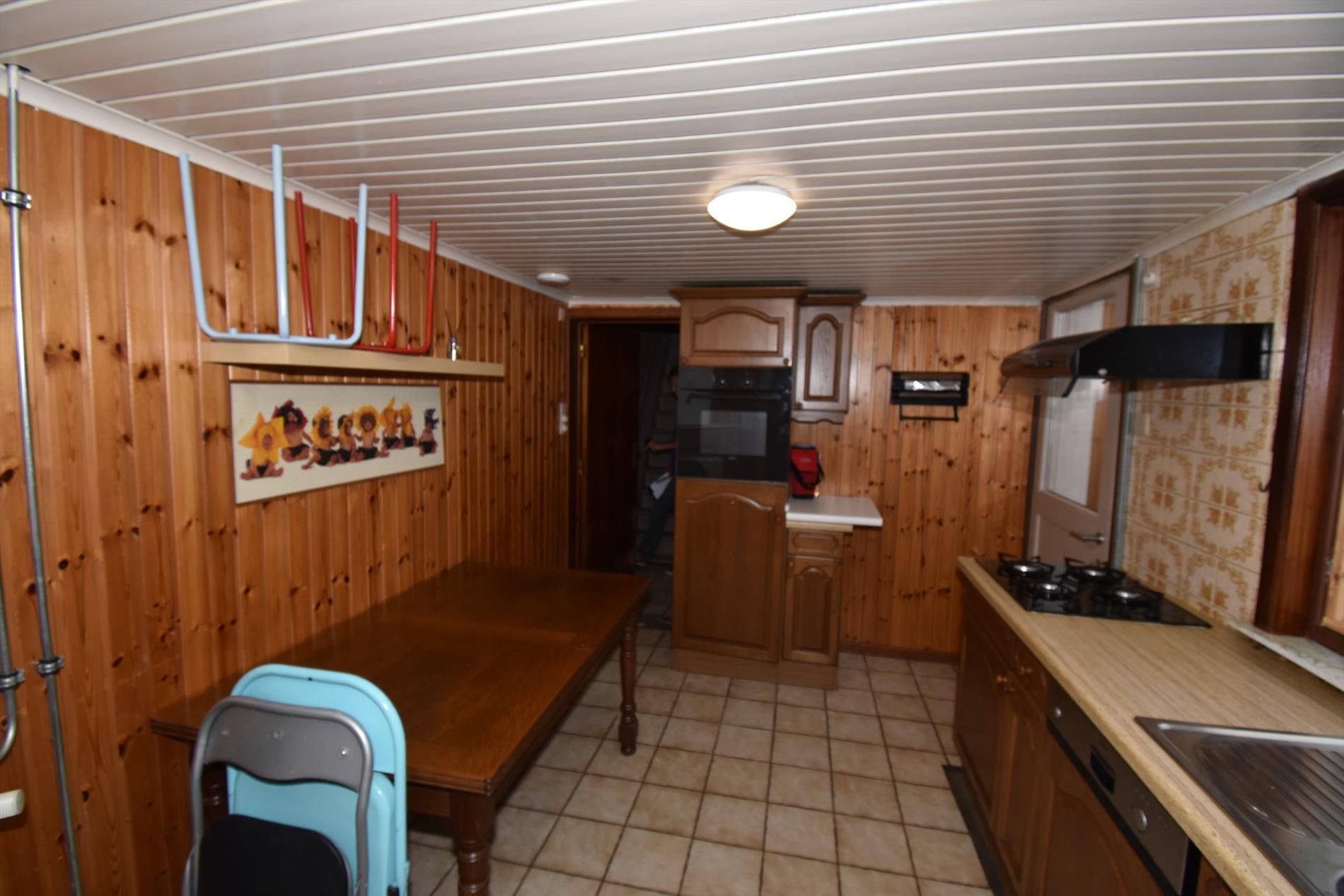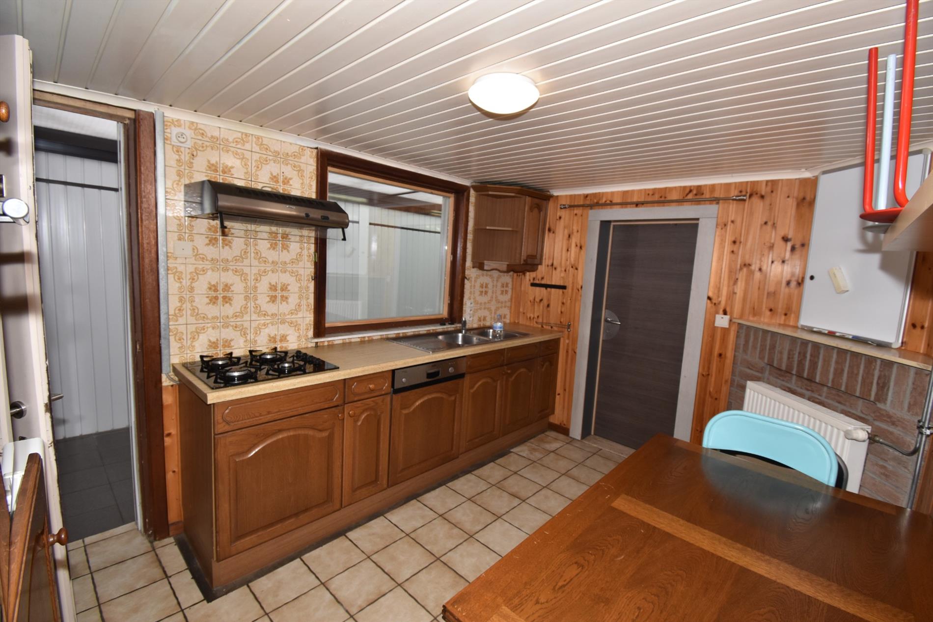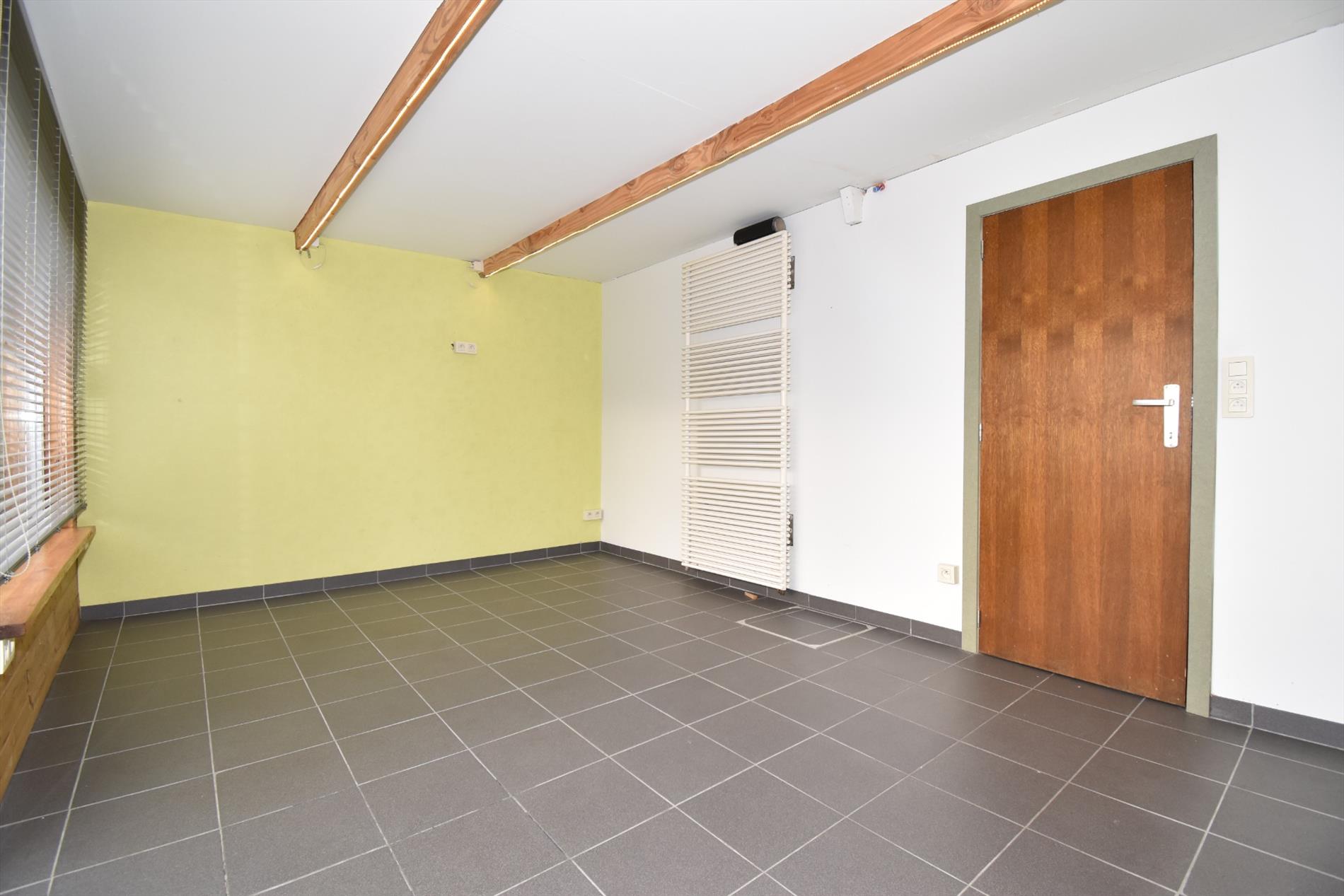 Door de verbouwingen die er in de loop van de jaren geweest zijn, kan U niet alleen rekenen op de aanwezigheid van alle noodzakelijk comfort zoals op de gelijkvloerse verdieping een ingerichte keuken, een badkamer en afzonderlijk toilet maar ook een ruime living/salon en een veranda achteraan over de hele breedte van de woning met uitzicht en toegang naar de tuin. Door de overdekte lichtstraat die de living met de veranda verbindt, werd extra ruimte gecreëerd voor kasten en het stallen van fietsen .e.d.