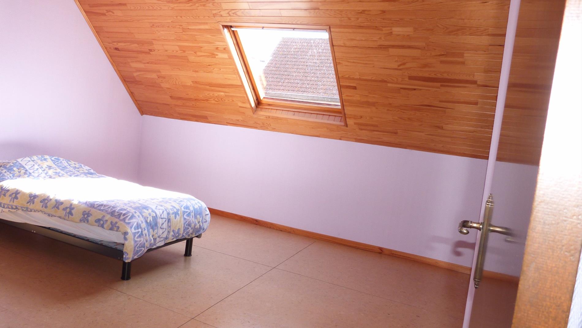Indeling: inkom, living, keuken, berging onder trap, apart toilet, badkamer met douche, 2 slaapkamers, zolderberging.