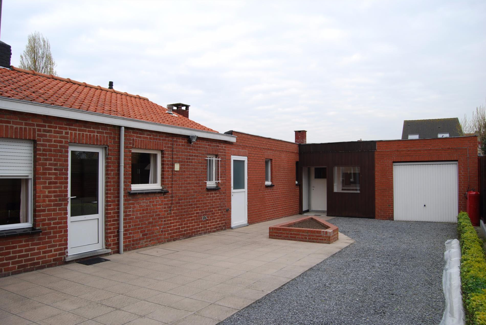 Indeling: inkom, living & salon, keuken, badkamer, 3 slaapkamers, berging, terras, voortuin, garage en ruime werkplaats.