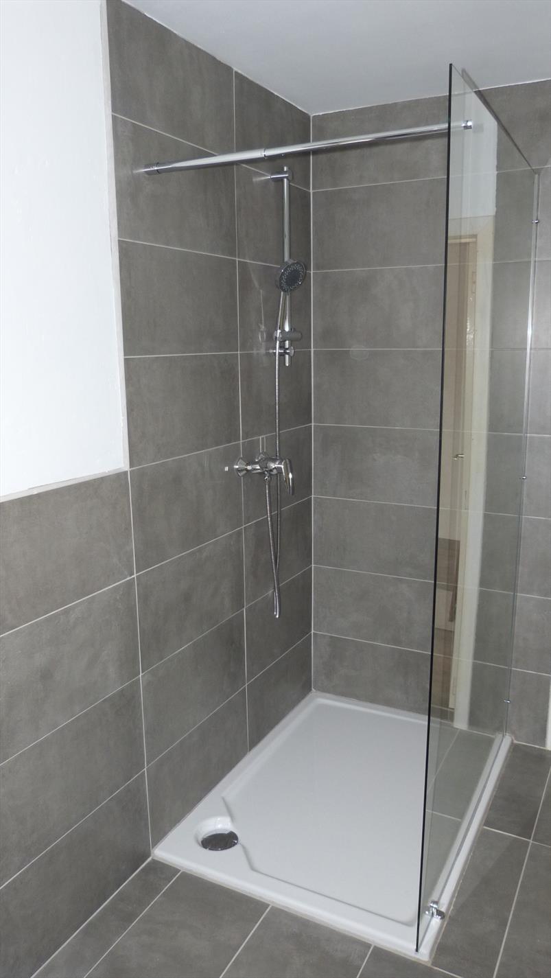 Eerste verdiep: overloop, badkamer met inloopdouche, badkamermeubel, toilet en 2 slaapkamers.